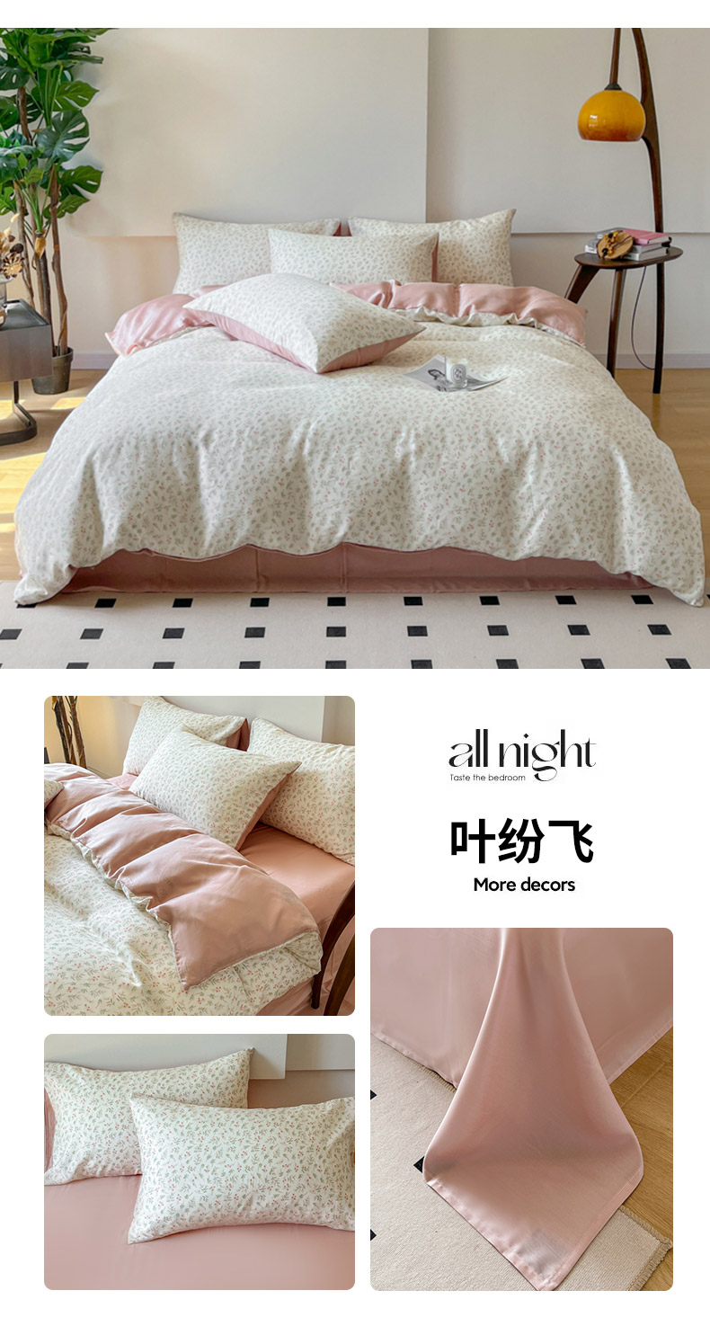 商品名称:千朵 2024新款莱赛尔天丝四件套 叶纷飞