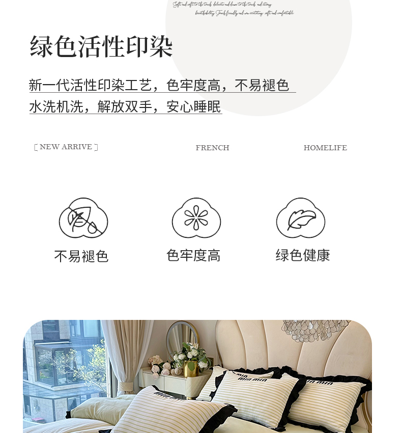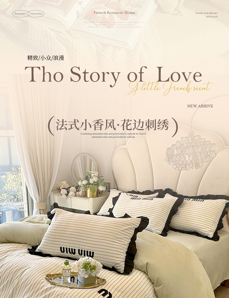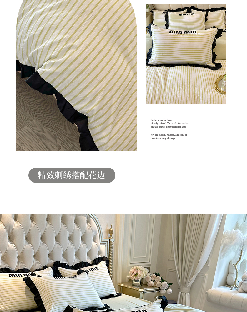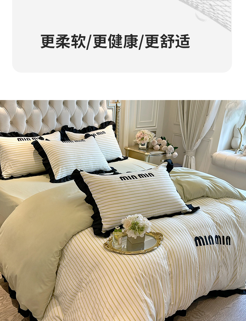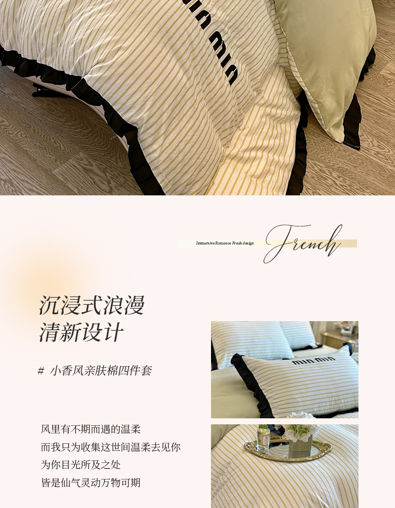 商品名称:苏源家居 2024新款法式小香风系列亲肤棉四件套 小香风-青草绿