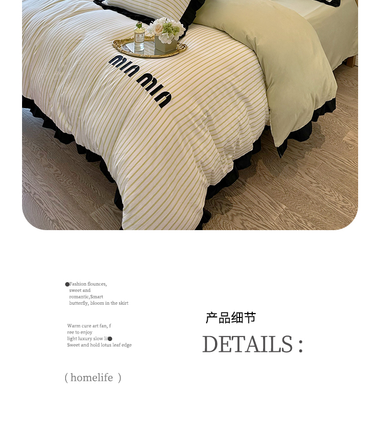 (总)苏源家居 2025新款韩式大花边ins风妮可公主风四件套,军绿色,白色,粉色,黑色,卡其色,蓝色