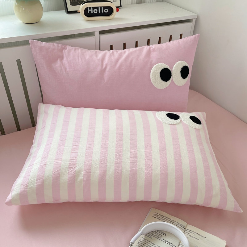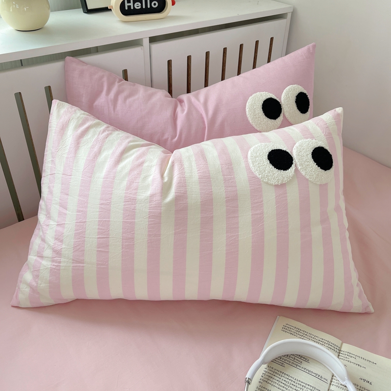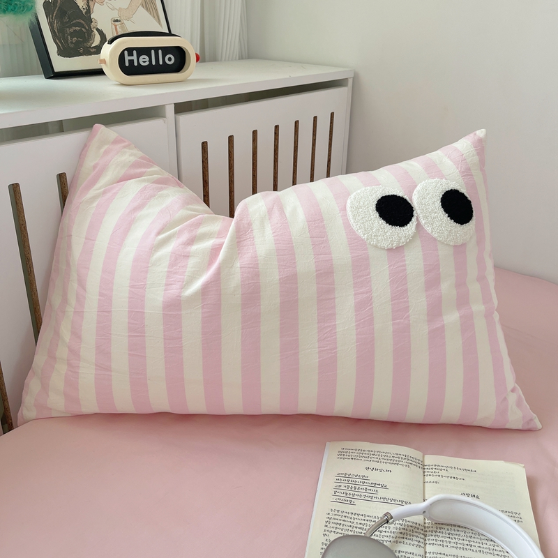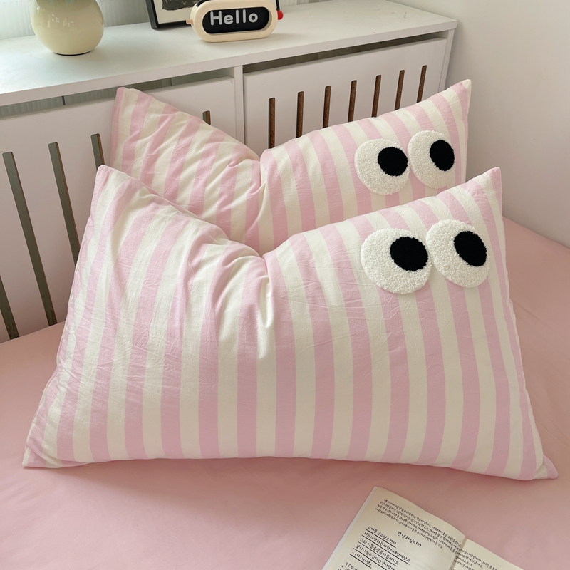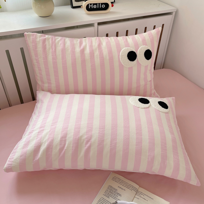 丽涵家纺 2024新款全棉色织水洗棉单品枕套-毛巾绣大眼系列 48*74cm枕套/只 ins混搭2-宽条粉