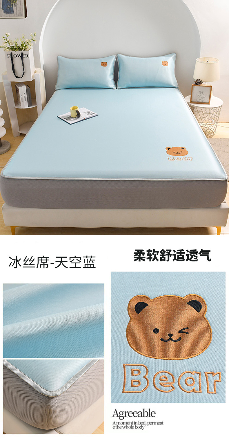 九亭家纺 2024新款A类抗菌冰丝刺绣款床笠凉席 冰丝席-天空蓝