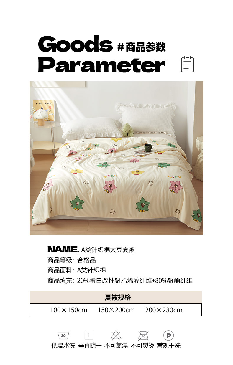 商品名称:怡家居 2024新款A类云柔针织棉夏被 七彩海星