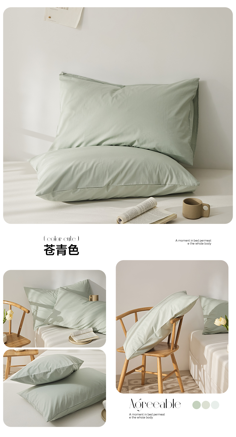 商品名称:新款40支全棉水洗棉纯色单品系列-单枕套 苍青色