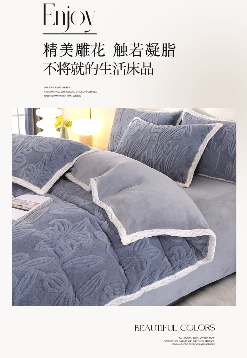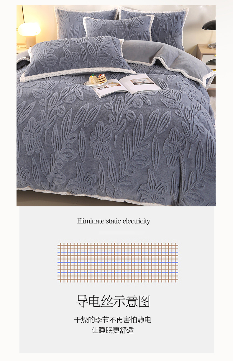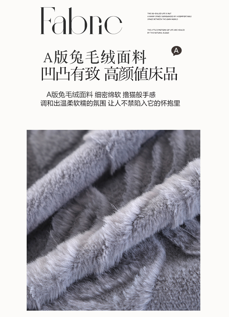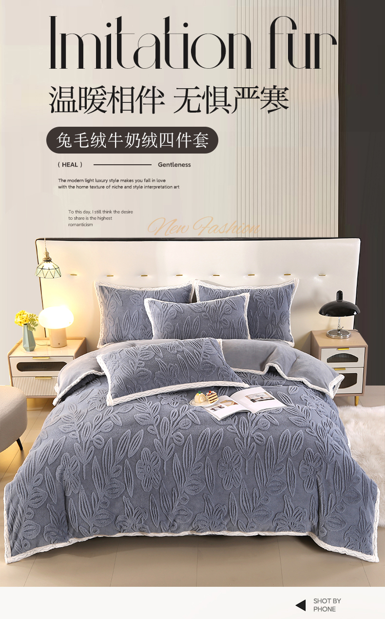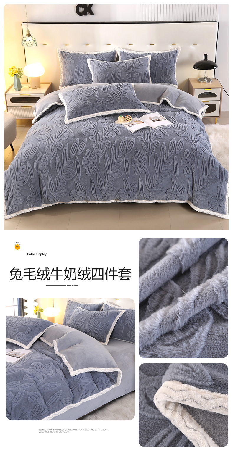 商品名称:芸锦豪2024新款花团雕花兔毛绒兔兔绒四件套 蓝灰
