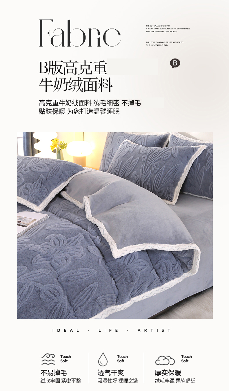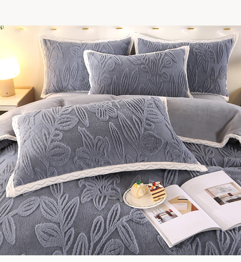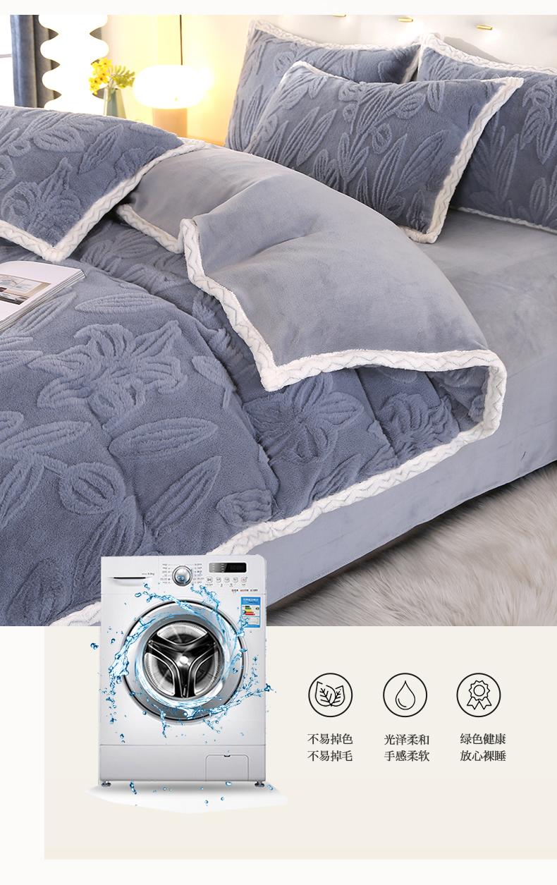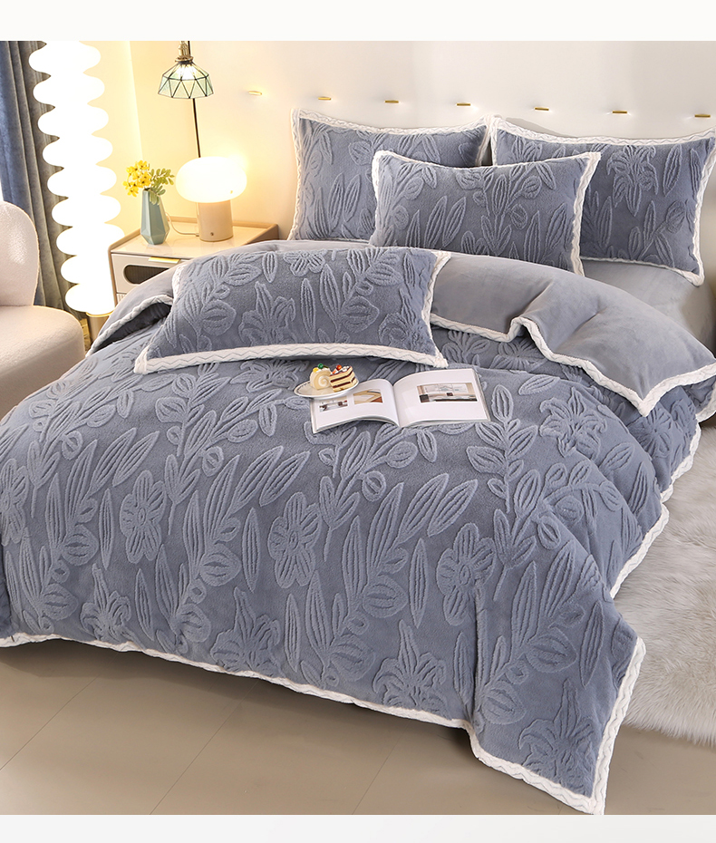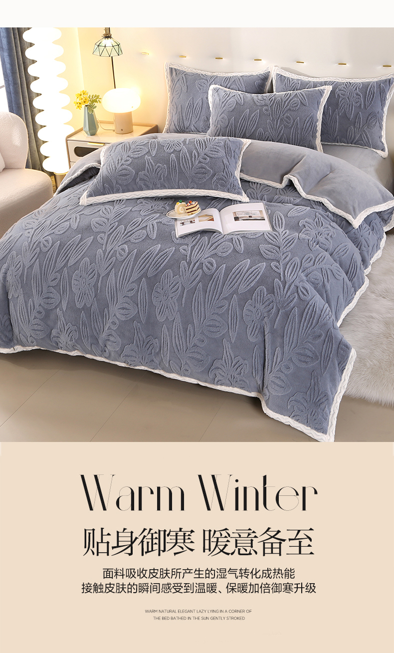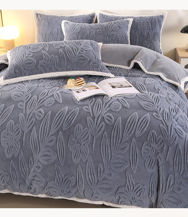 商品名称:芸锦豪2024新款花团雕花兔毛绒兔兔绒四件套 蓝灰