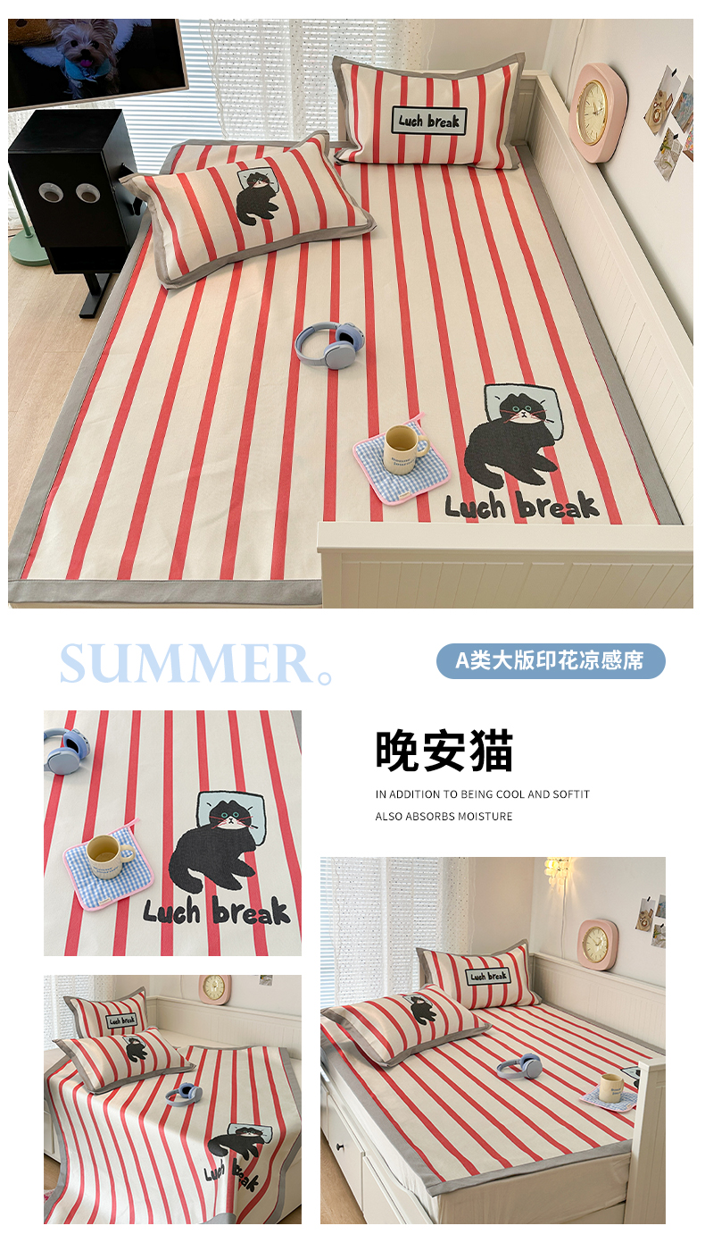 商品名称:昔可家纺 2024新款A类900D大版冰丝席 晚安猫