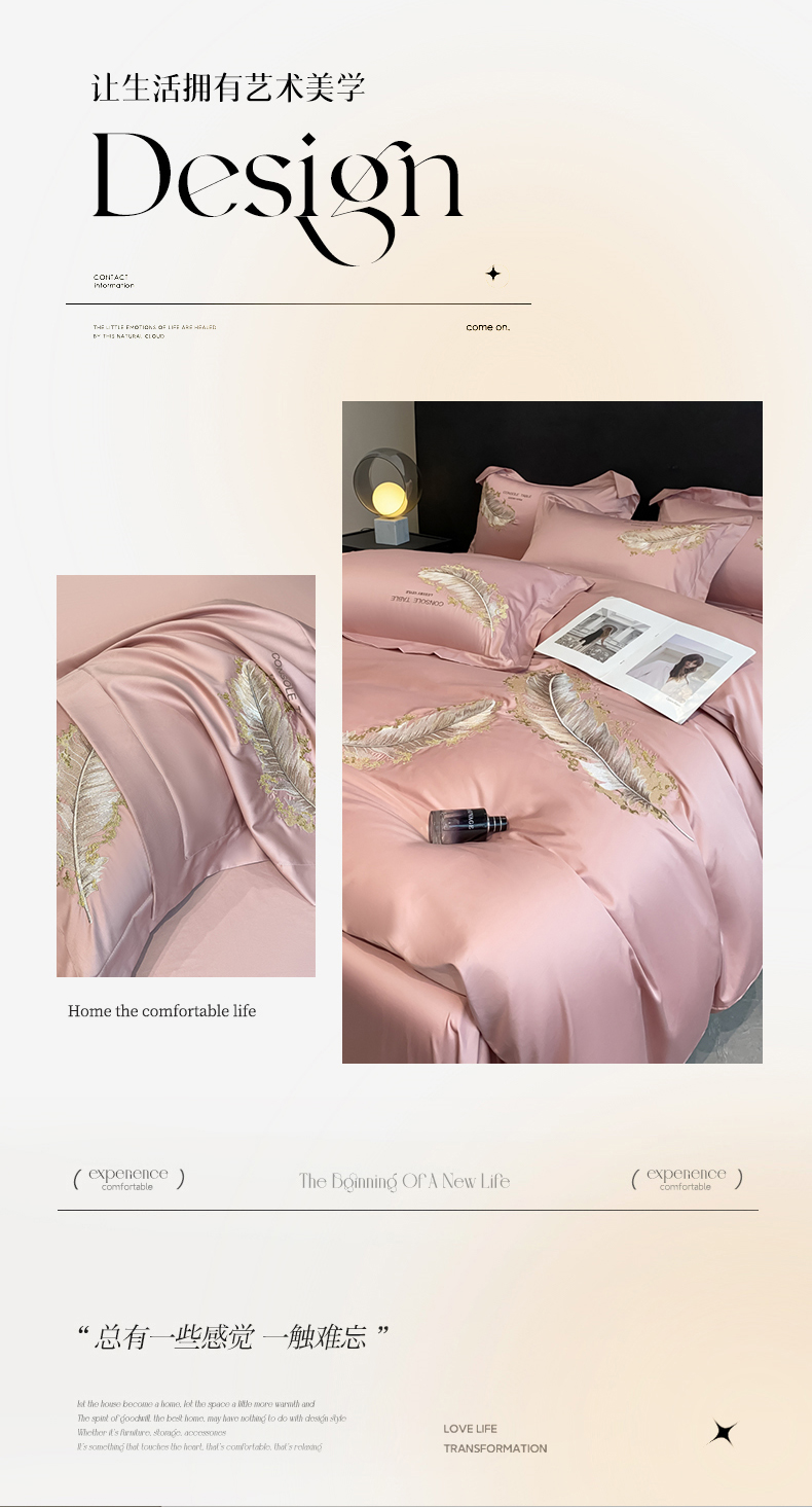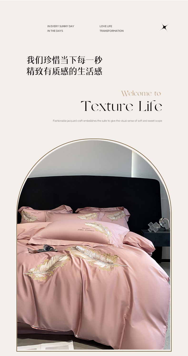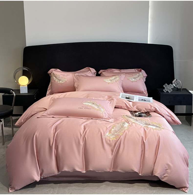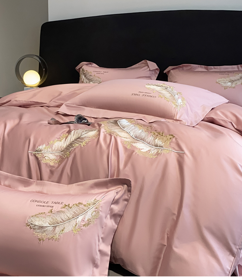 首尔家纺 2024新款全棉刺绣四件套 凤羽-粉豆沙