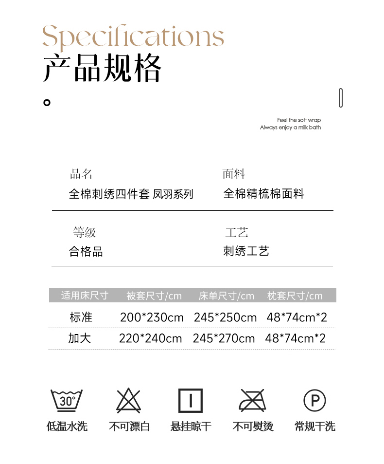 商品名称:首尔家纺 2024新款全棉刺绣四件套 凤羽-粉豆沙