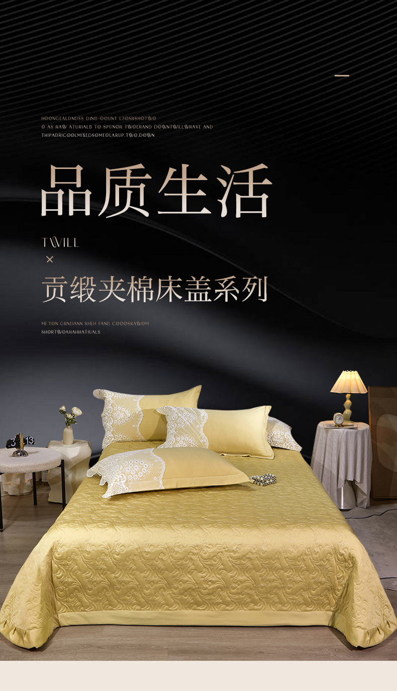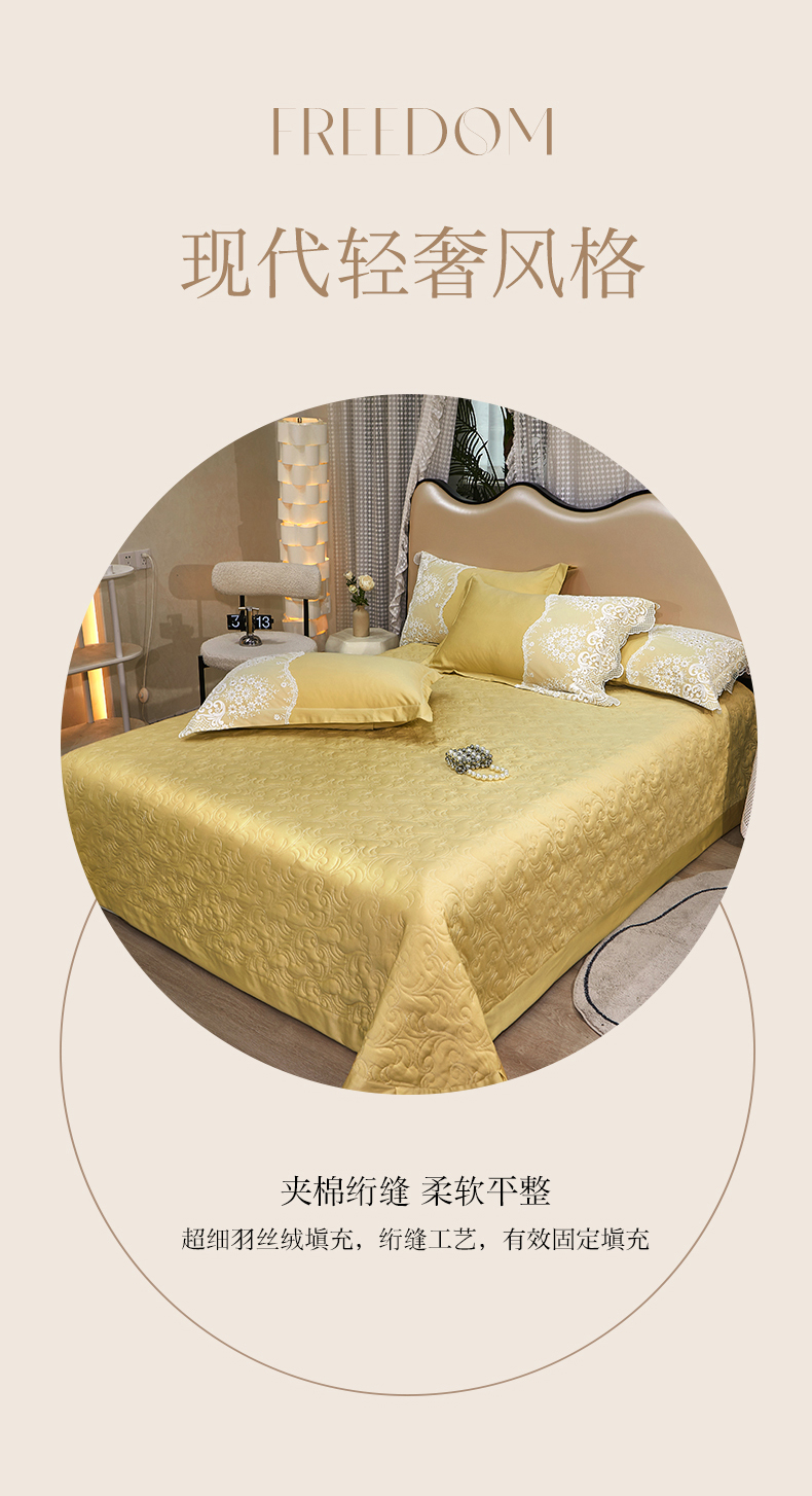 当前位置: 91家纺网 > 商品网购 > 床品套件 > 三件套 > 罗艺轩 2024新款贡缎夹棉床盖--三件套(控价110元起) 简爱-安迪金