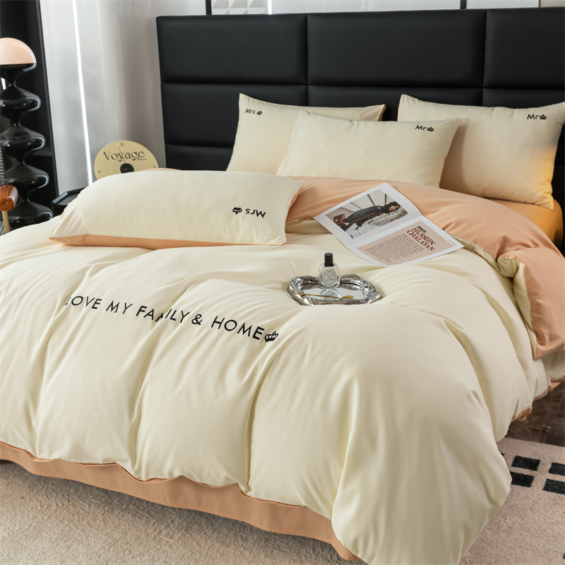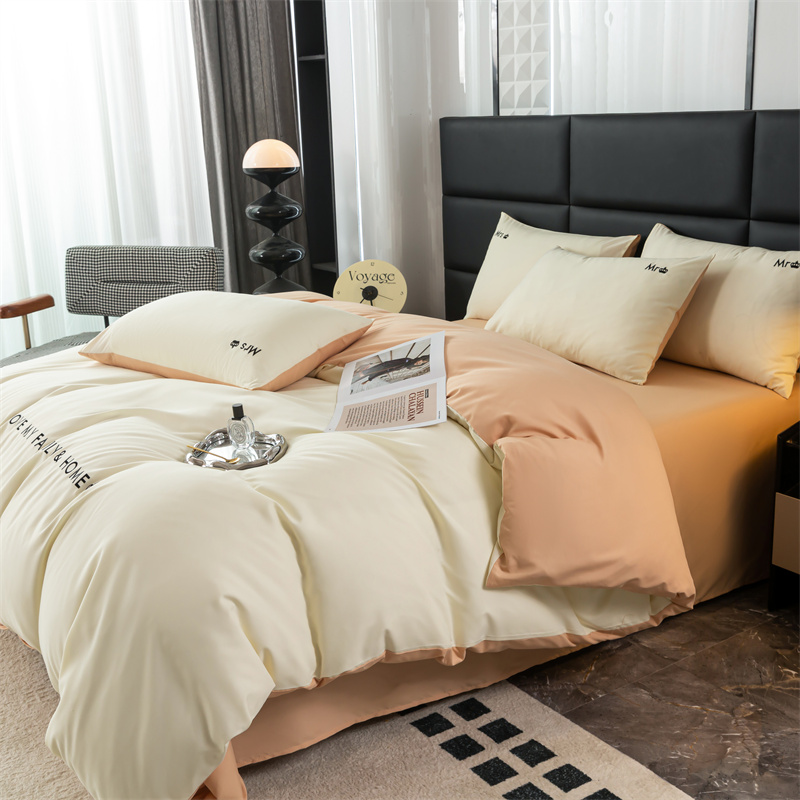 (总)梦莱家纺 2025新款亲肤磨毛纯色拼色轻奢系列四件套,橄榄绿,果绿,卡其,米黄,深红,深灰,深蓝,天蓝,粉+深灰,卡其+米黄,青蓝+天蓝,深蓝+深灰