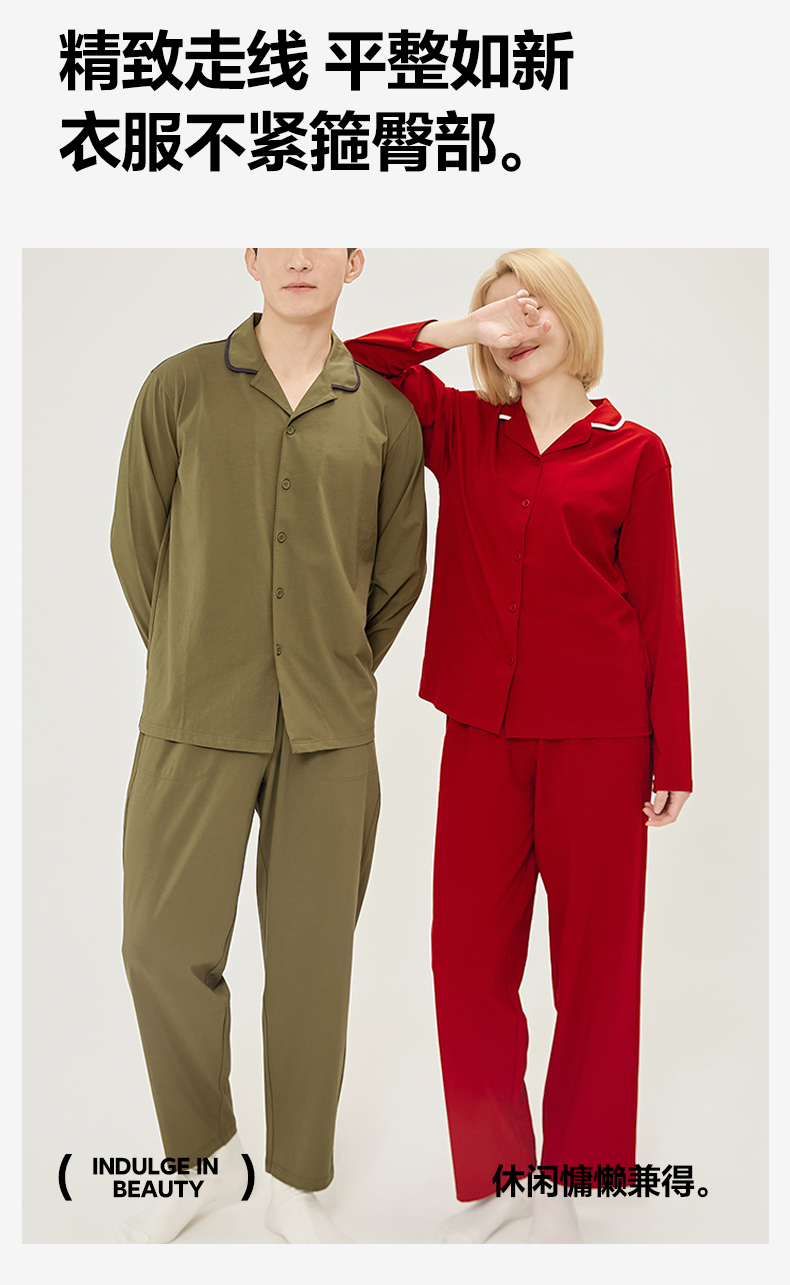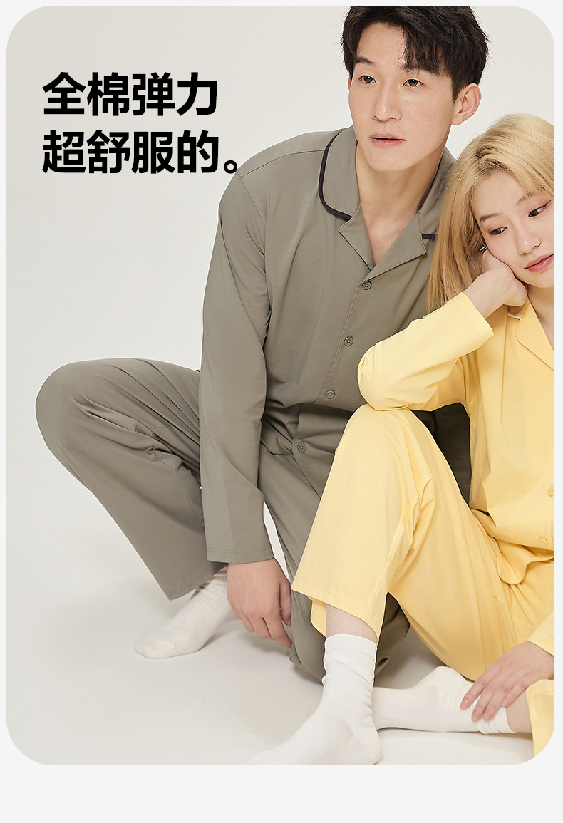 EH 2024新款全棉男女情侣款家居服-男女款翻领 男款蓝莓色