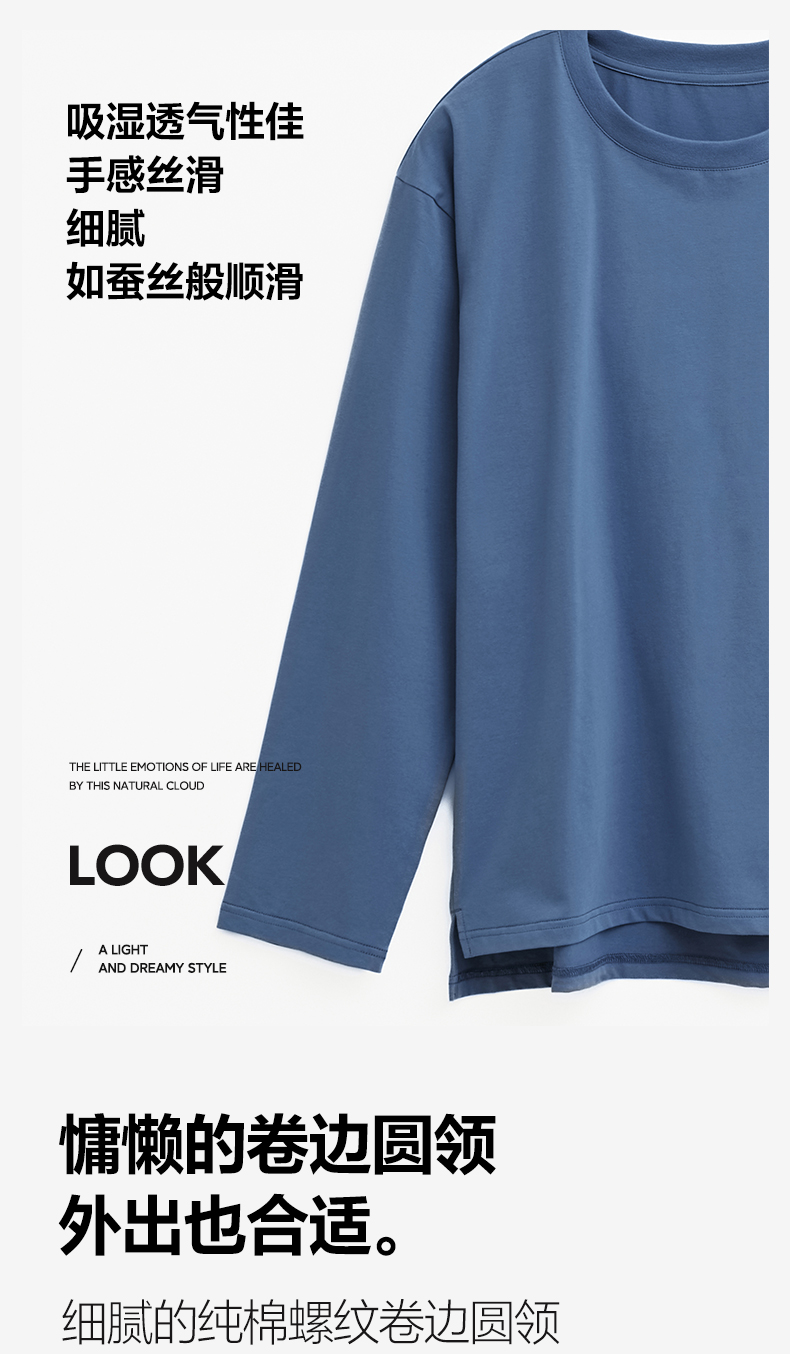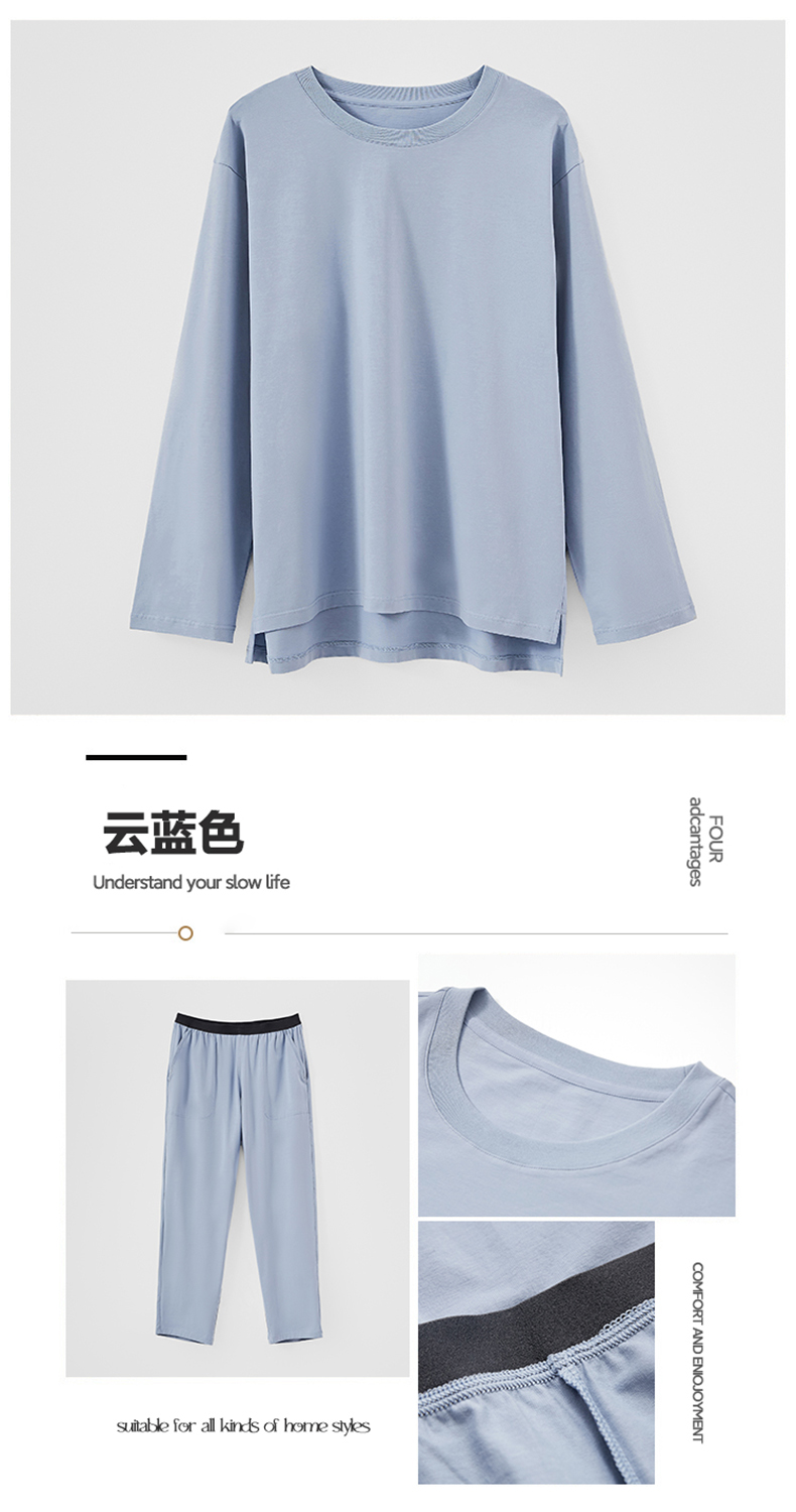 商品名称:EH 2024新款全棉男女情侣款家居服-男款圆领 云蓝色