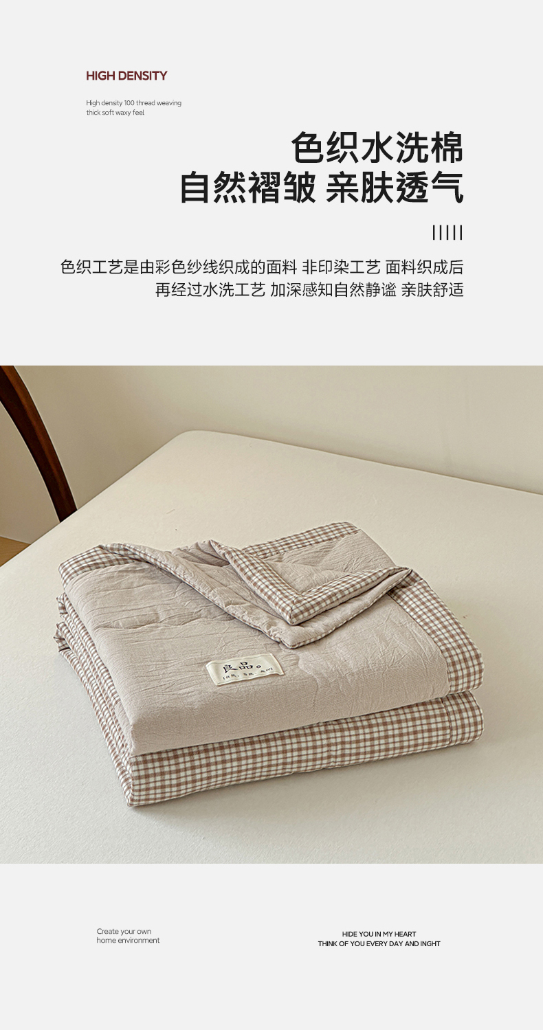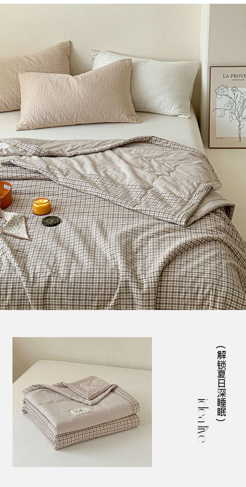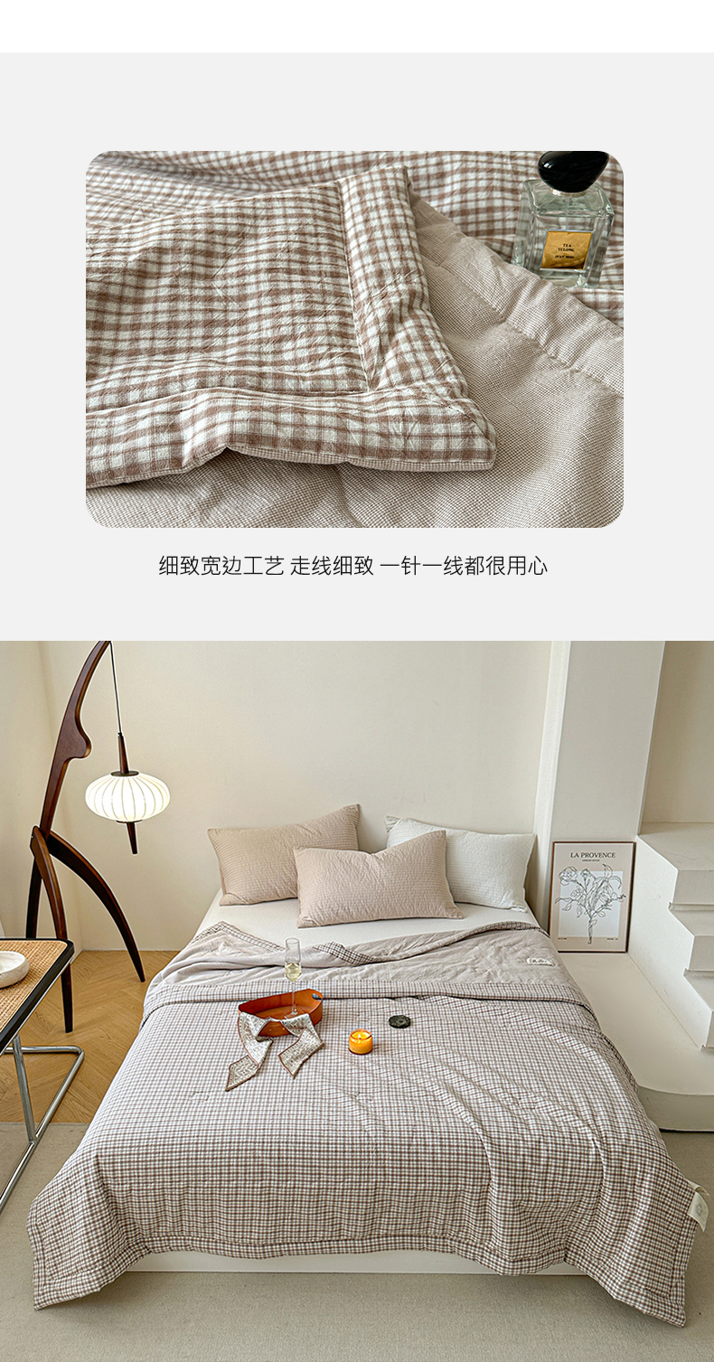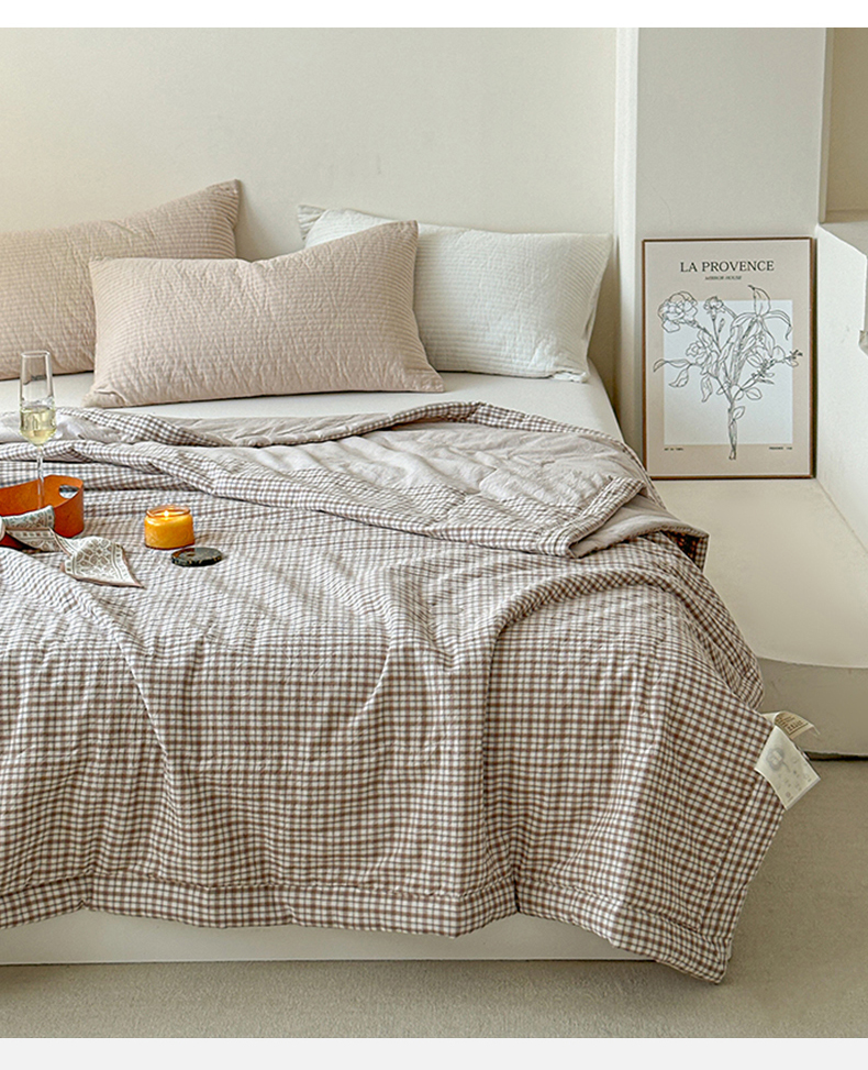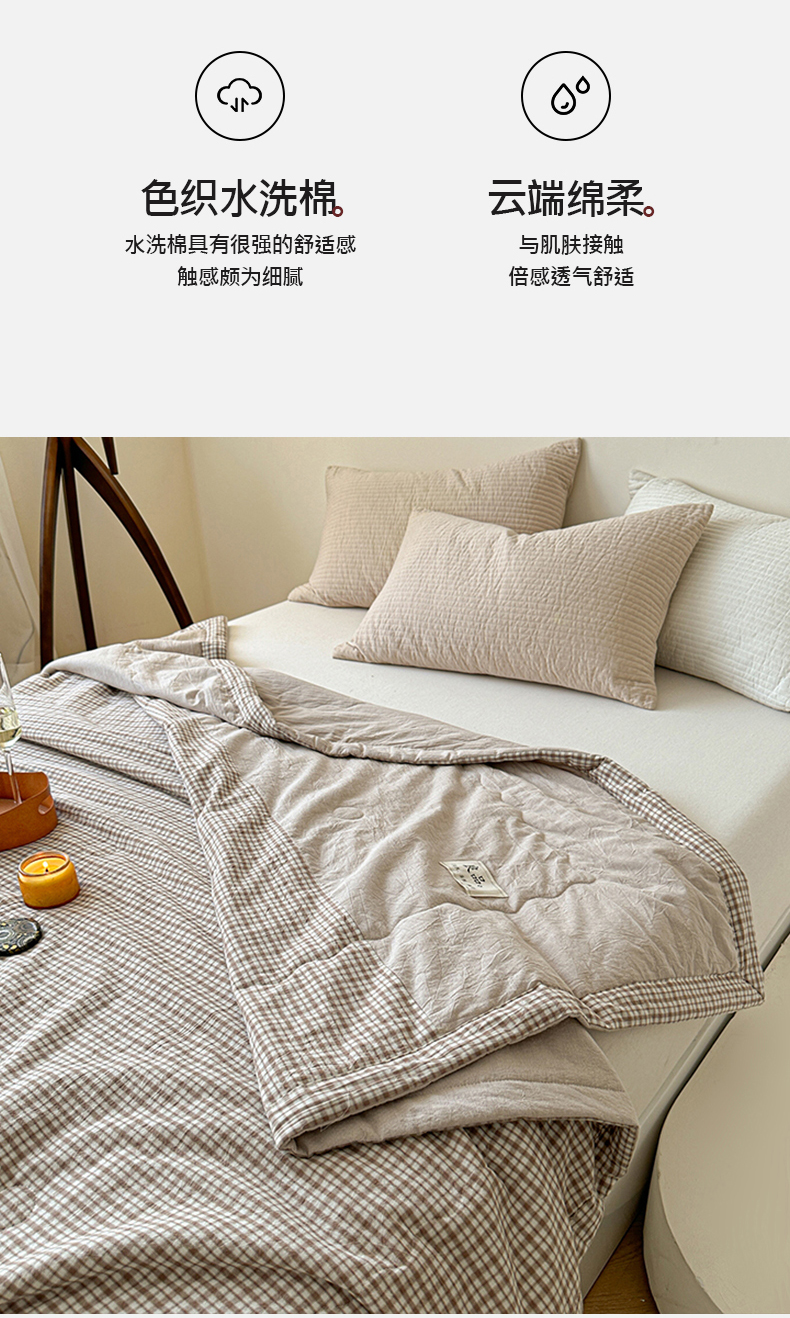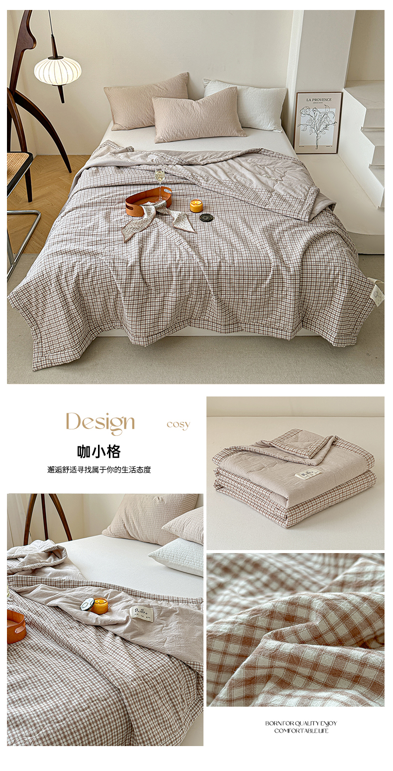 源舜家纺 2025新款全棉水洗棉夏被 咖小格