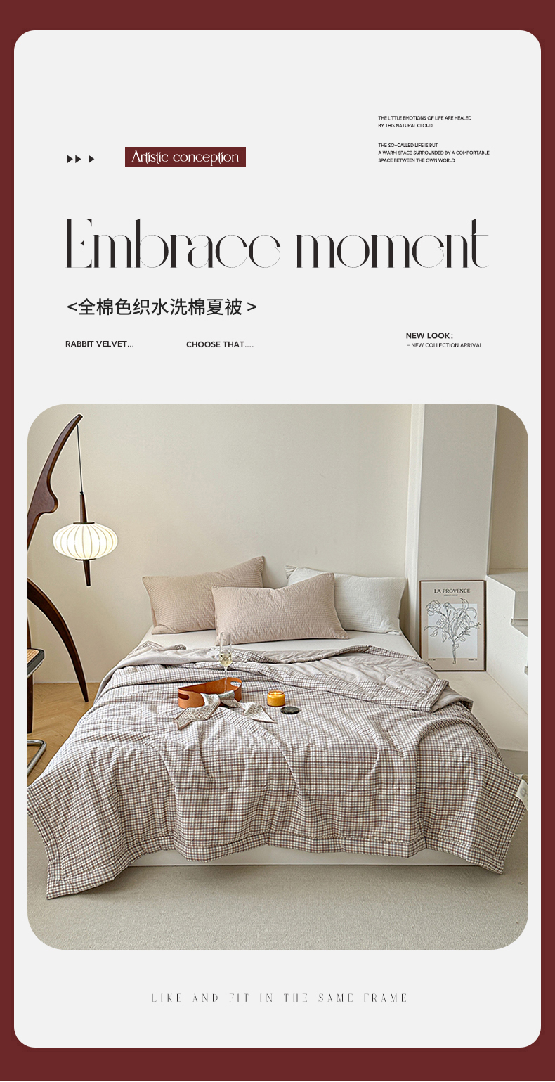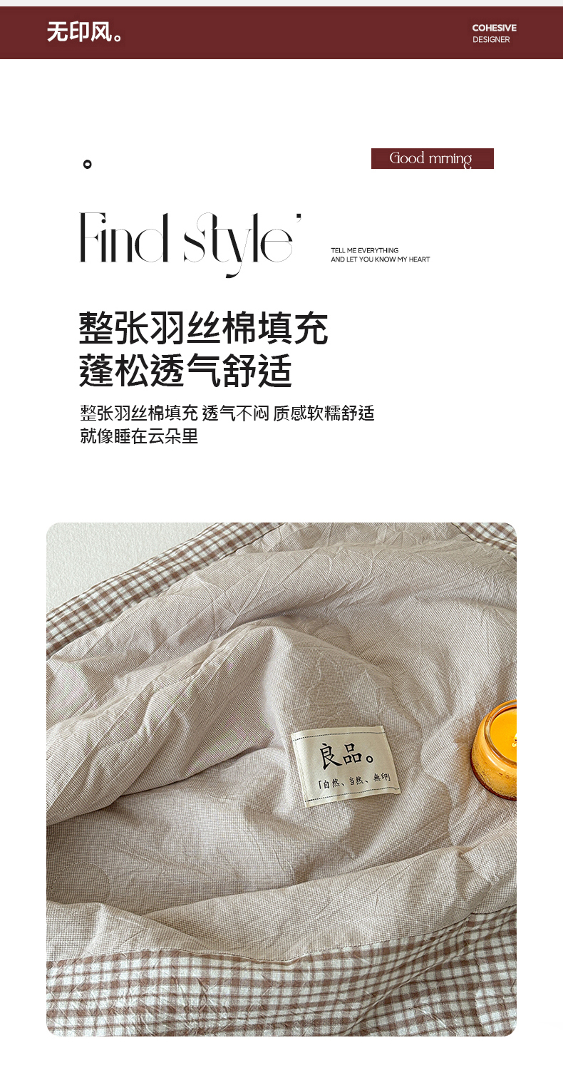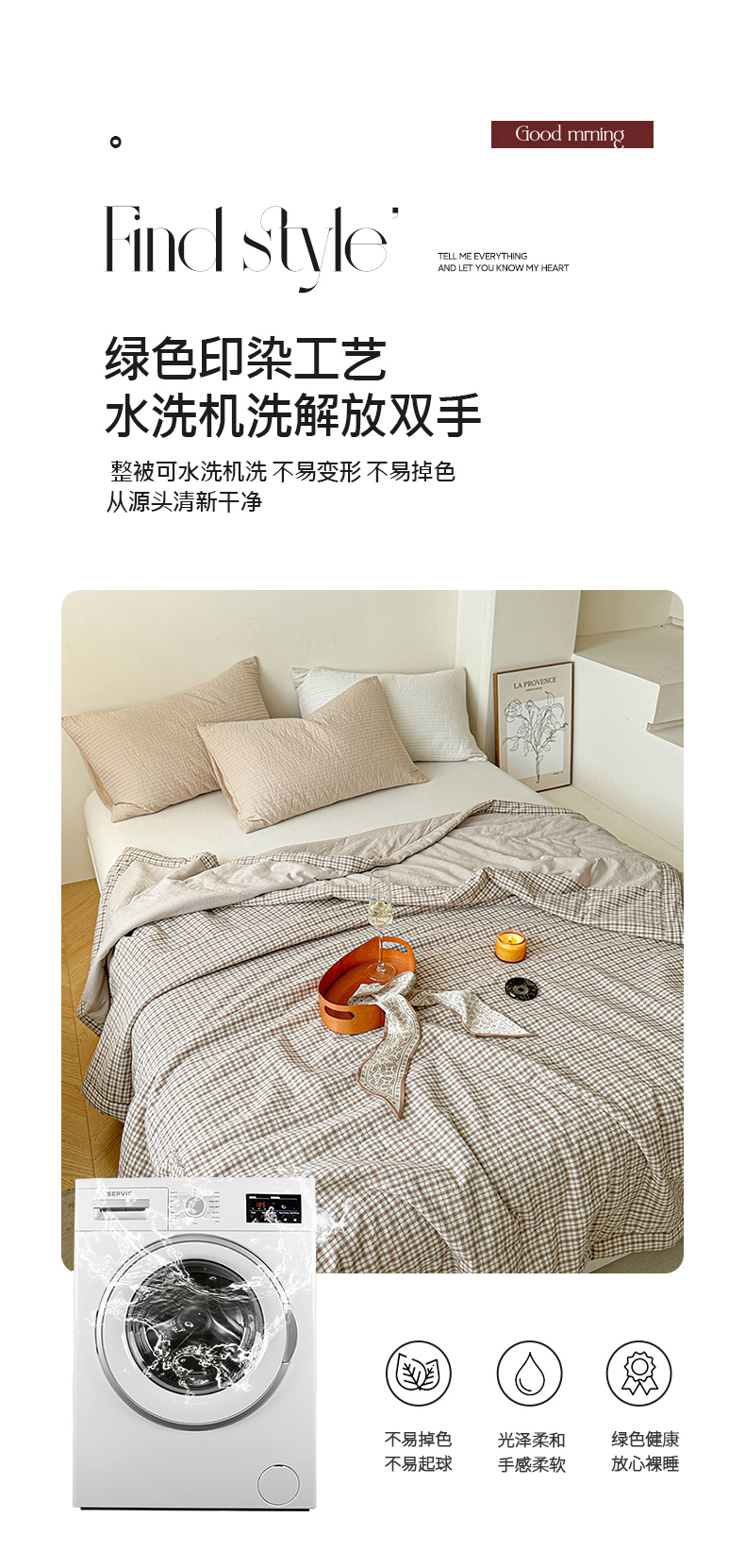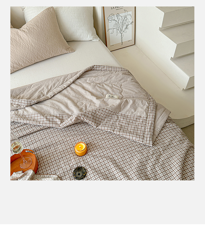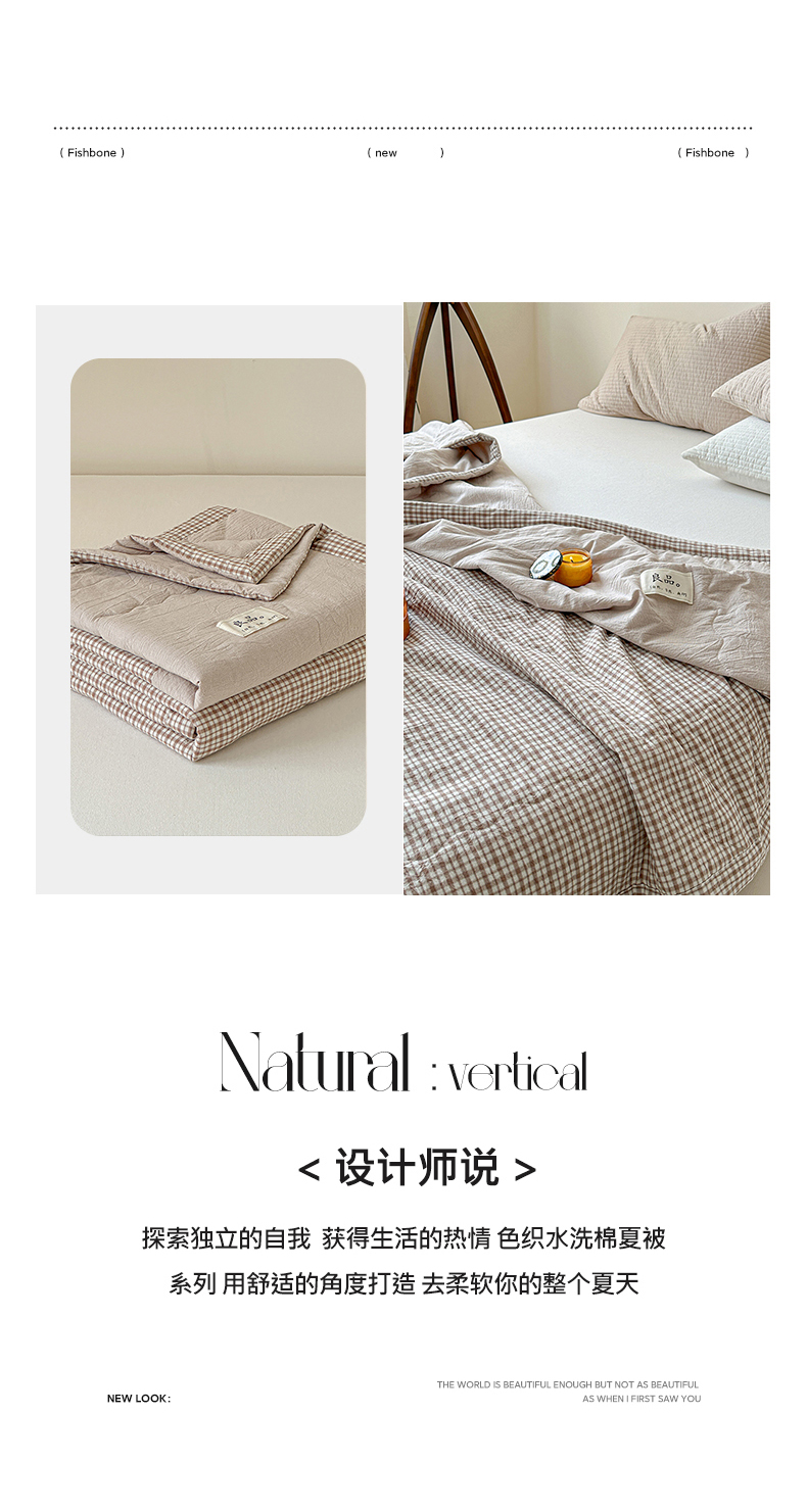 源舜家纺 2025新款全棉水洗棉夏被 咖小格