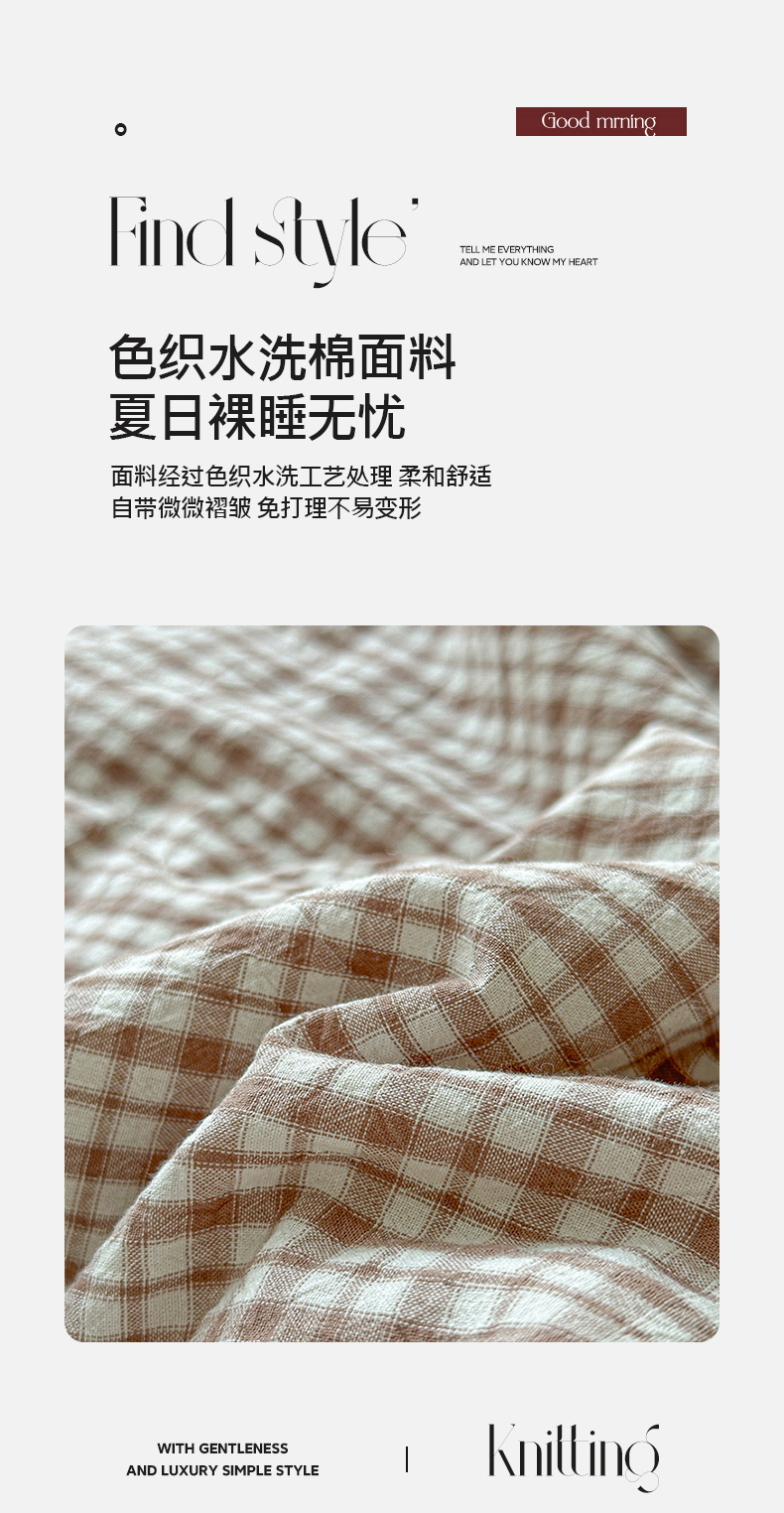 商品名称:源舜家纺 2025新款全棉水洗棉夏被 咖小格