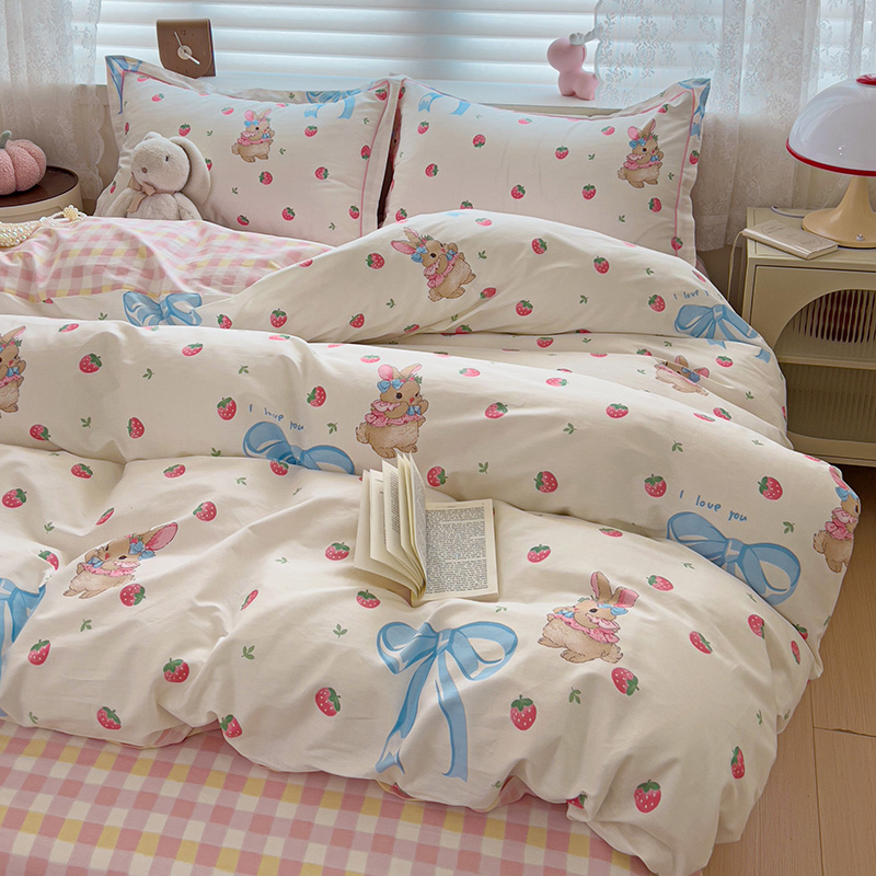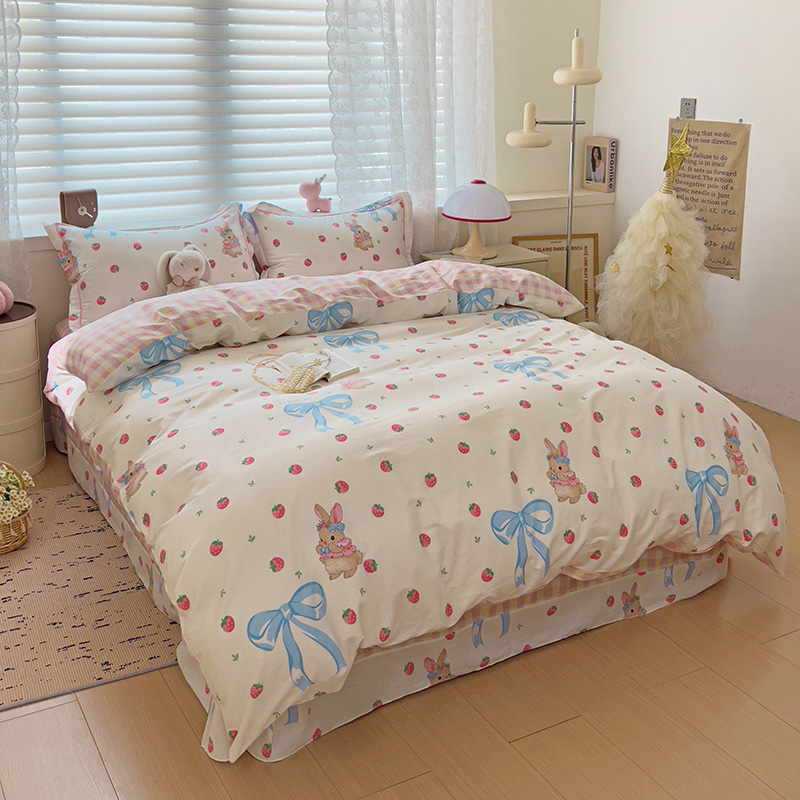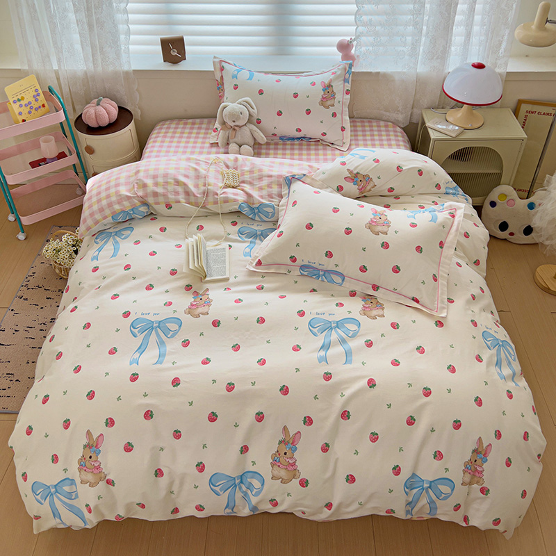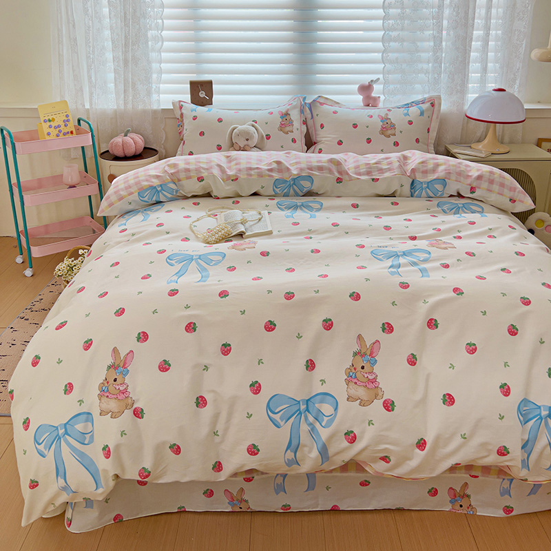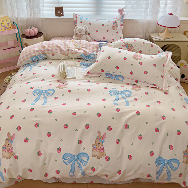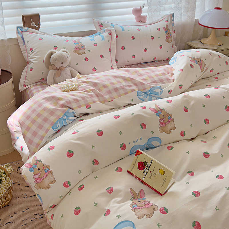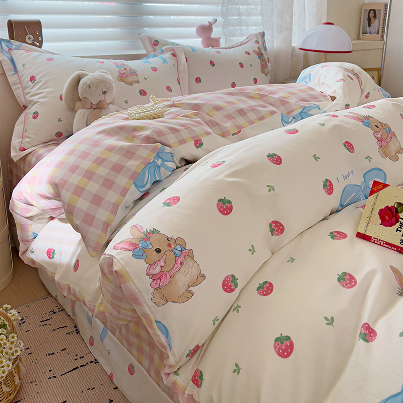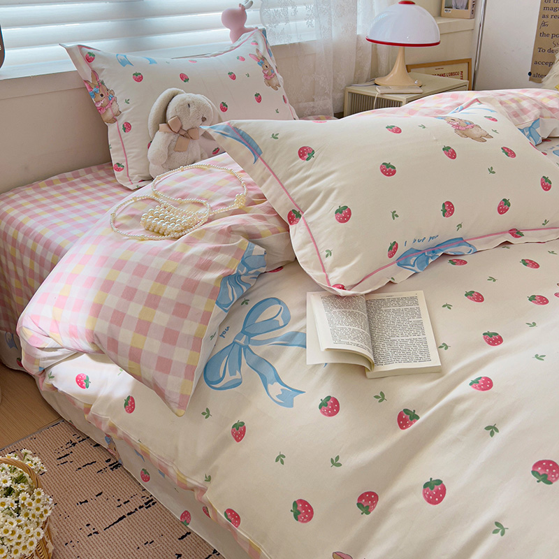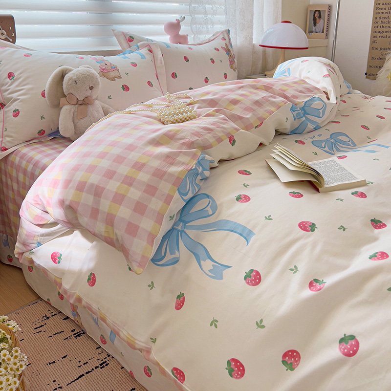 2024新款13372纯棉大版印+绣小清新款四件套 草莓之恋,草莓之恋