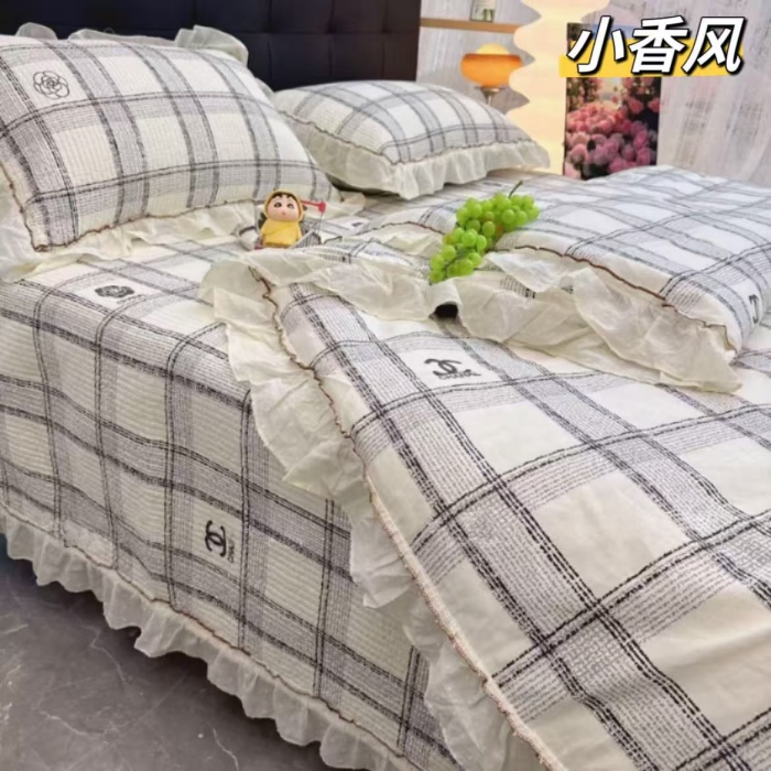(总)纯棉床盖三件套260×240法式全棉床裙花边 纯棉夹棉床盖+枕套×2