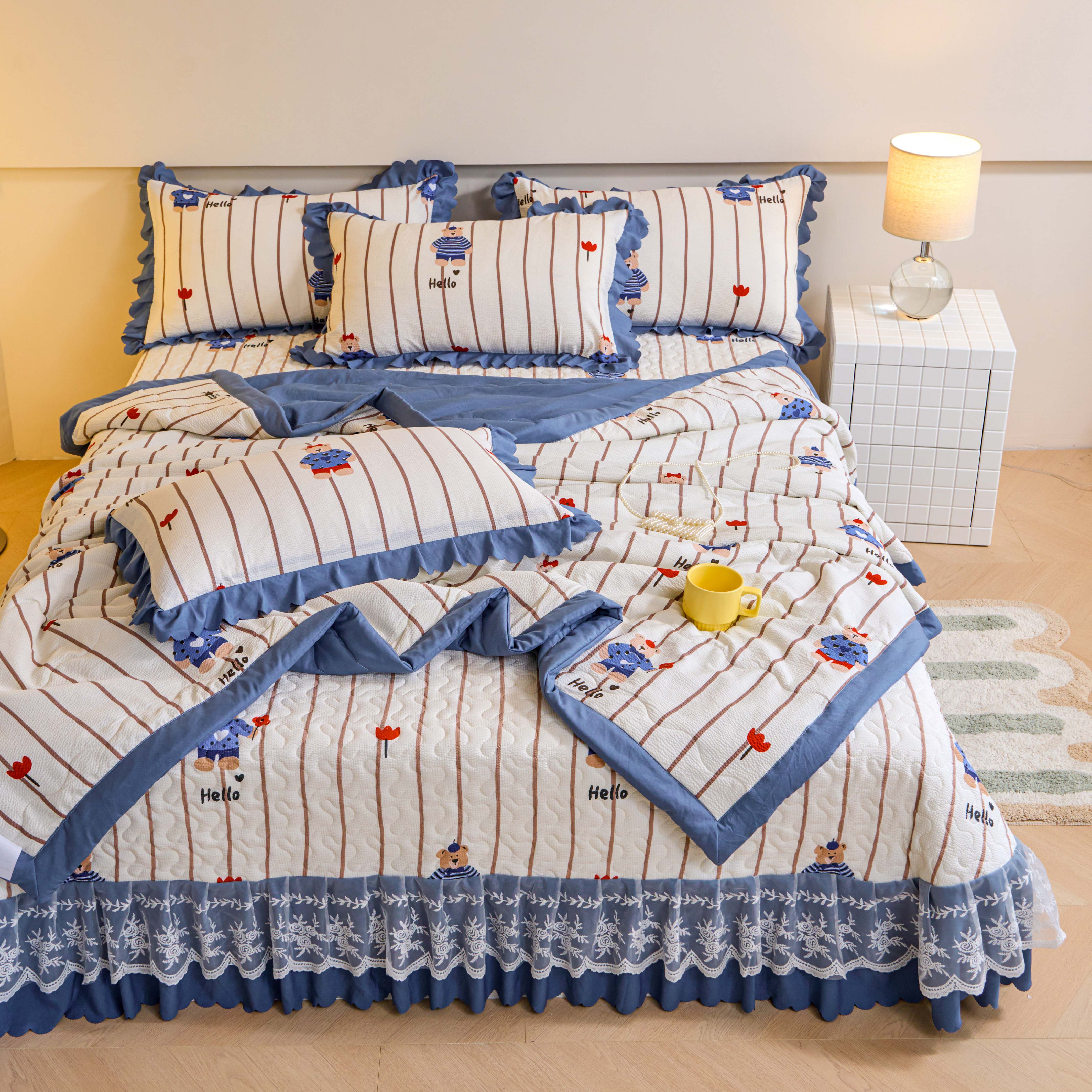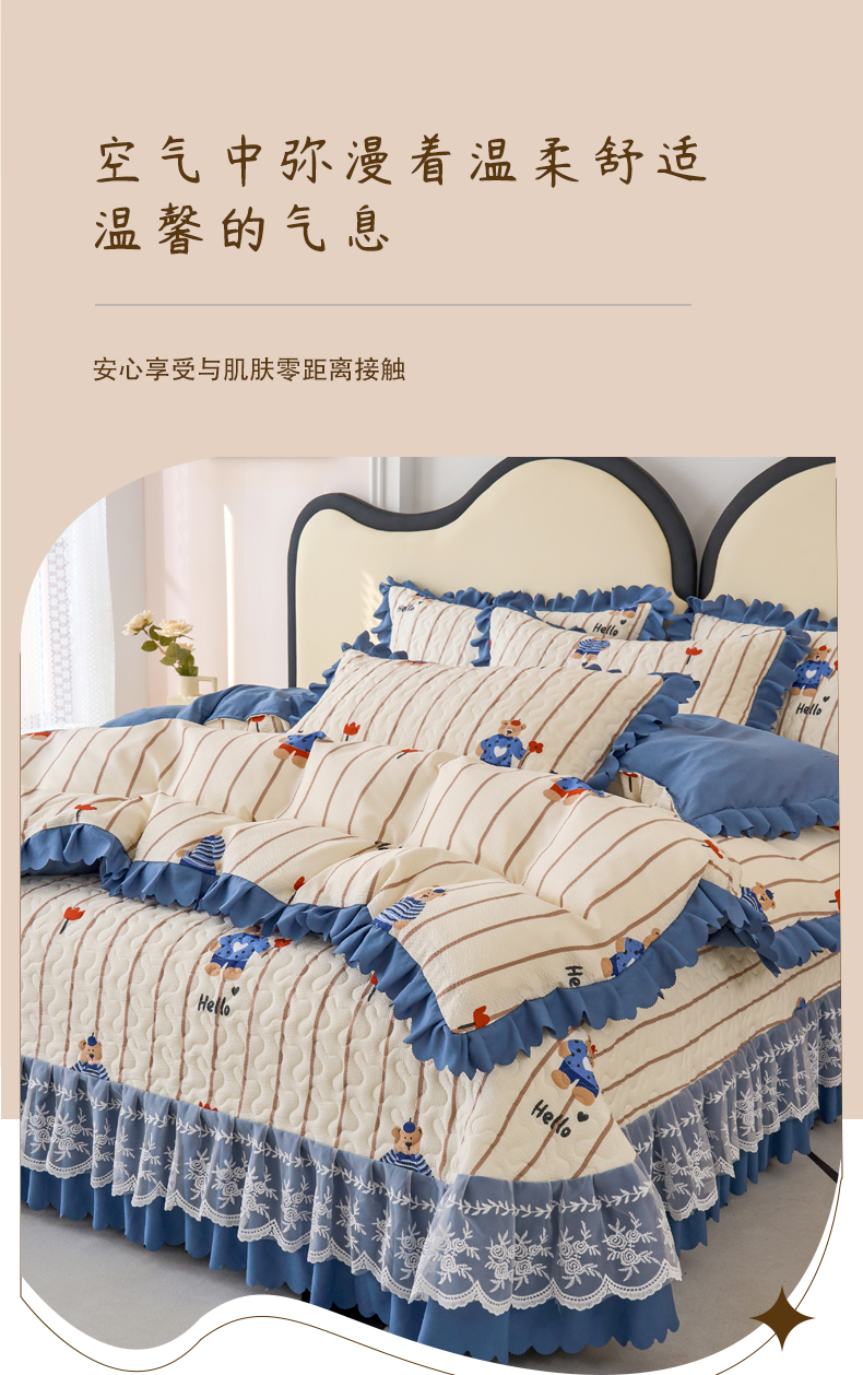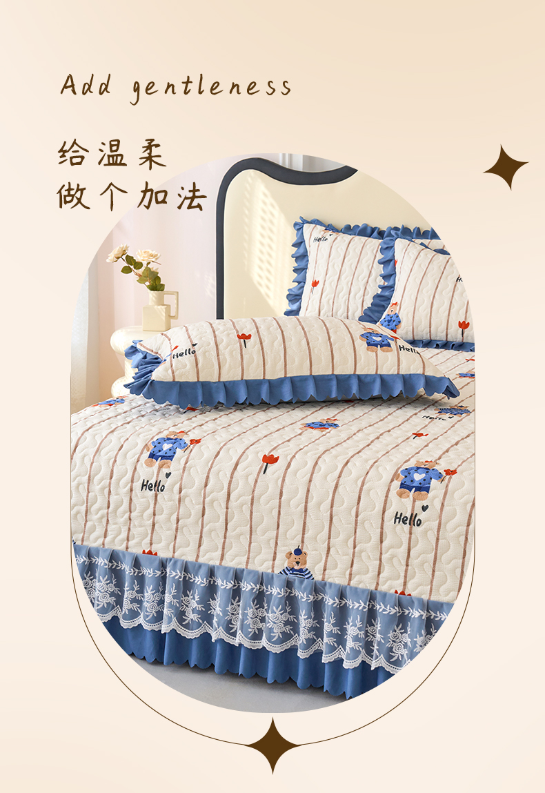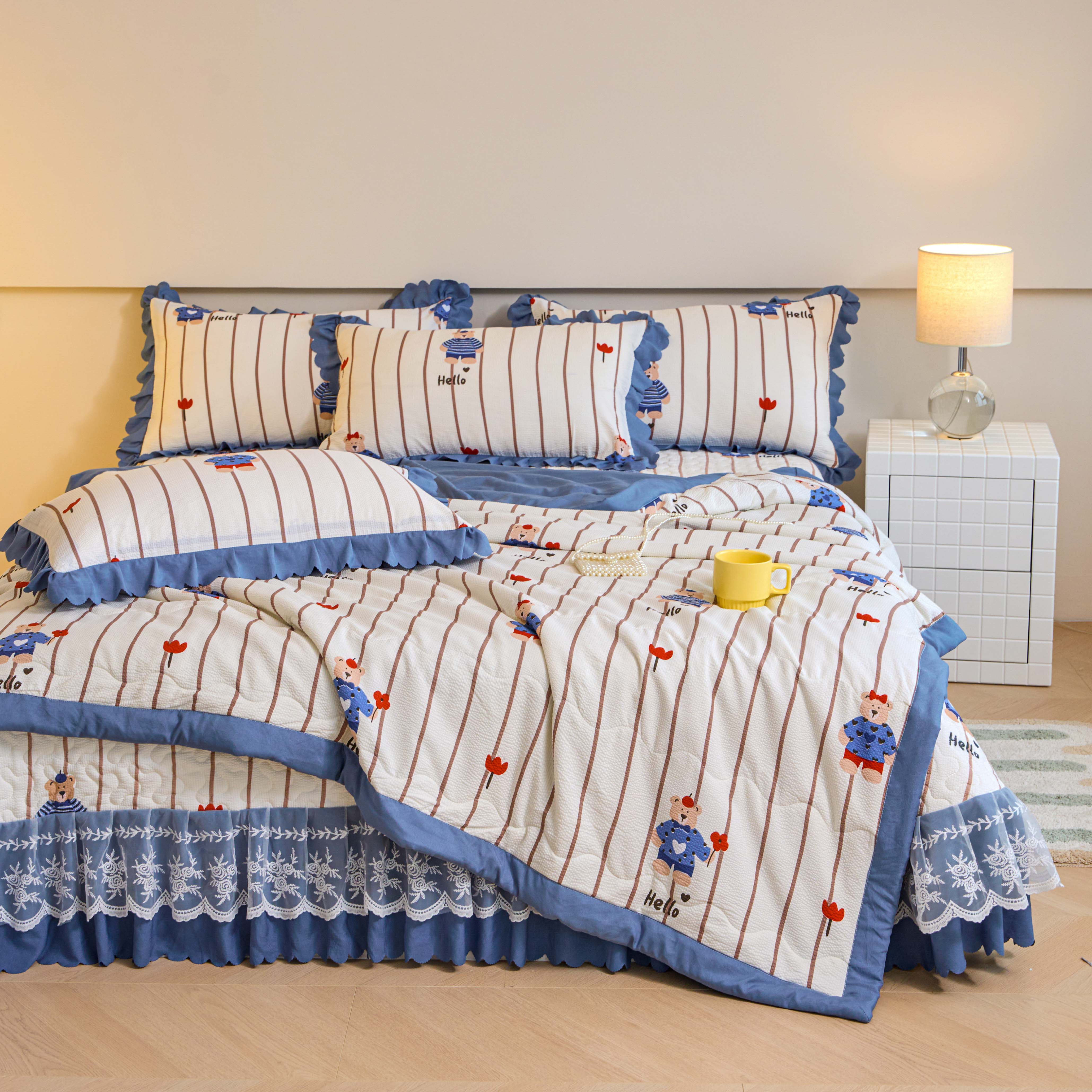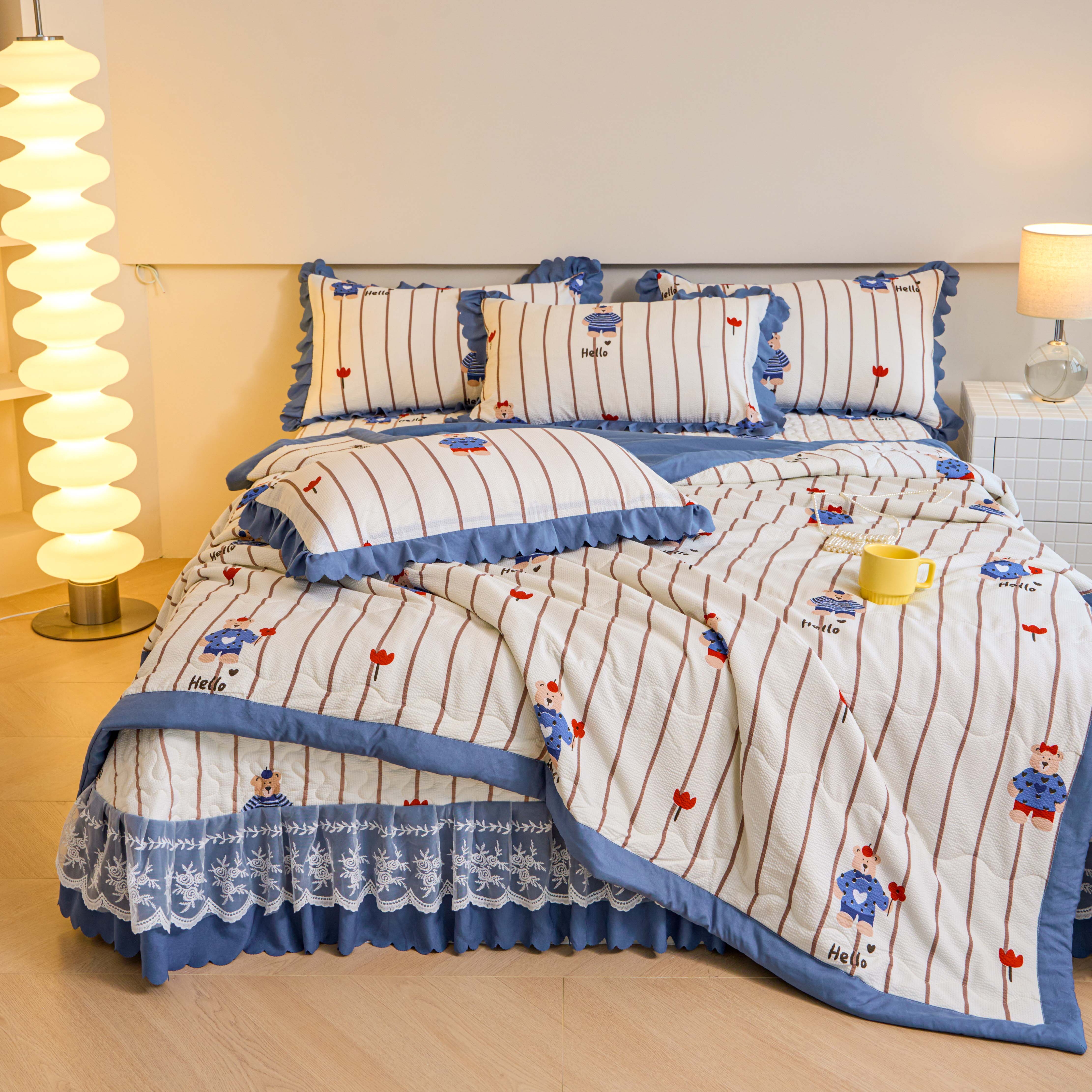 美莱家纺 2024新款软糯泡泡棉蕾丝床盖床盖四件套单品系列-床盖夏被四件套 小熊公仔
