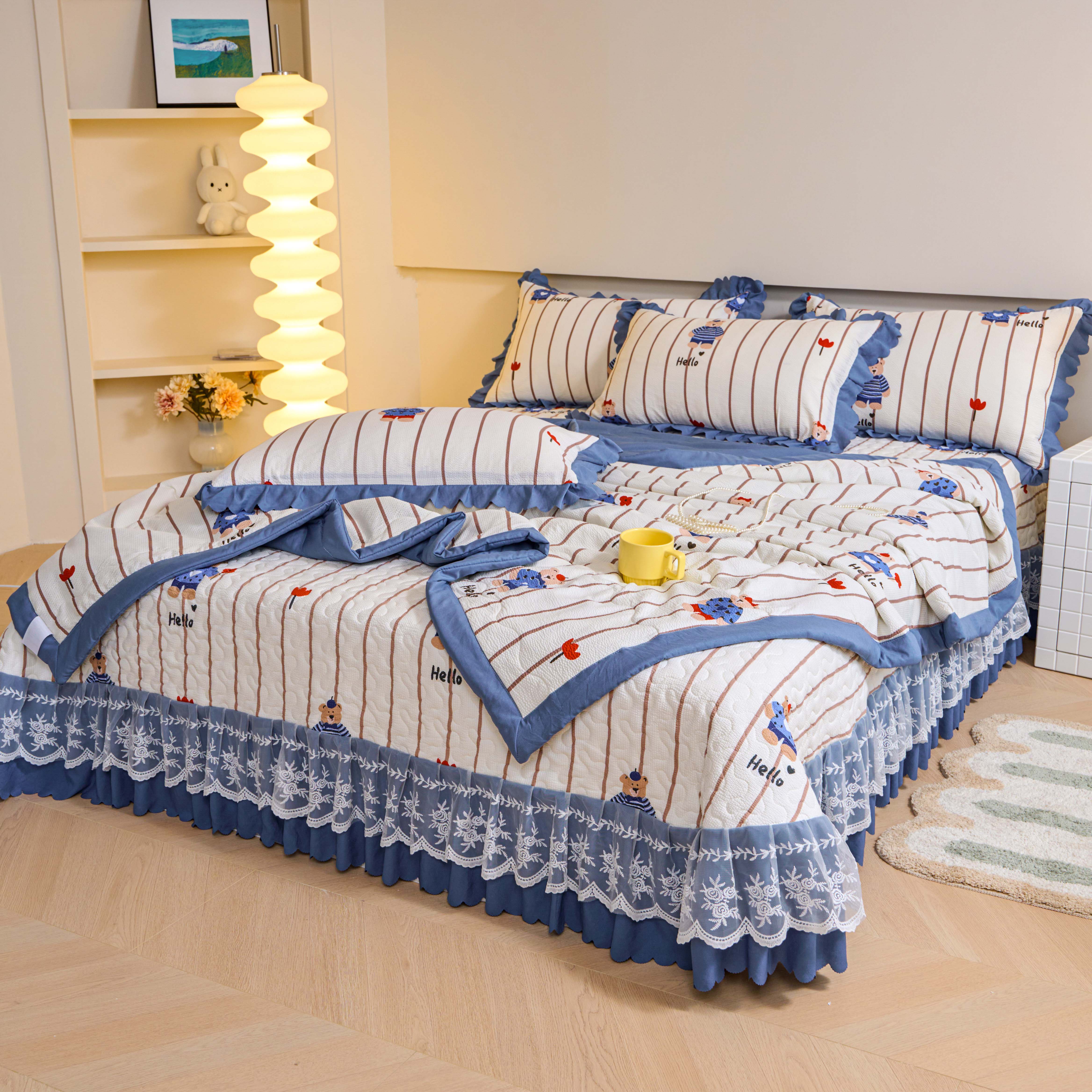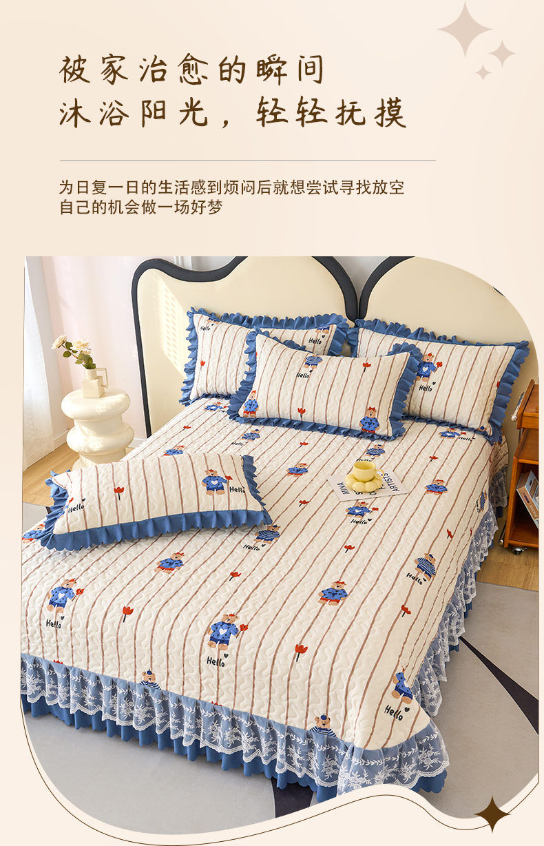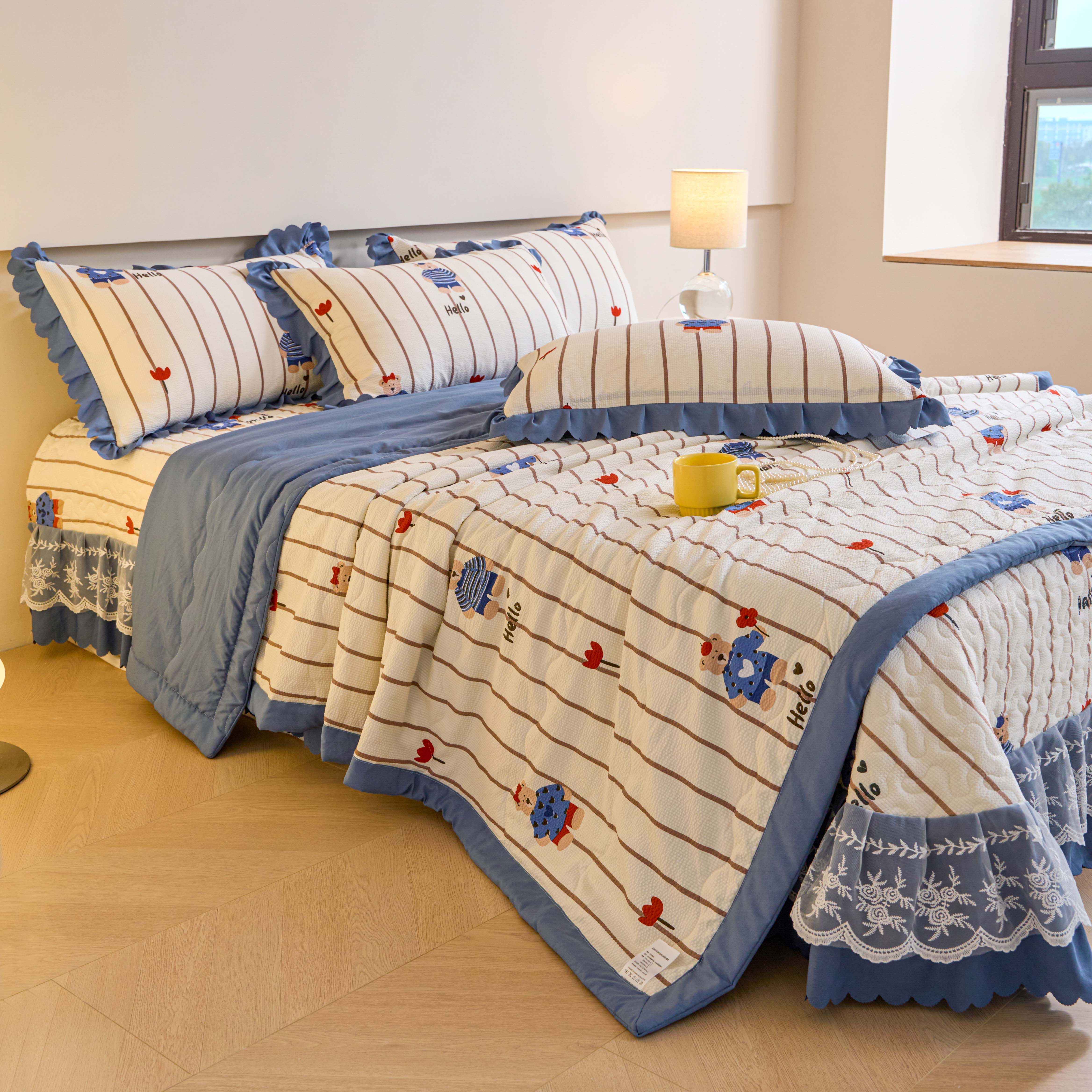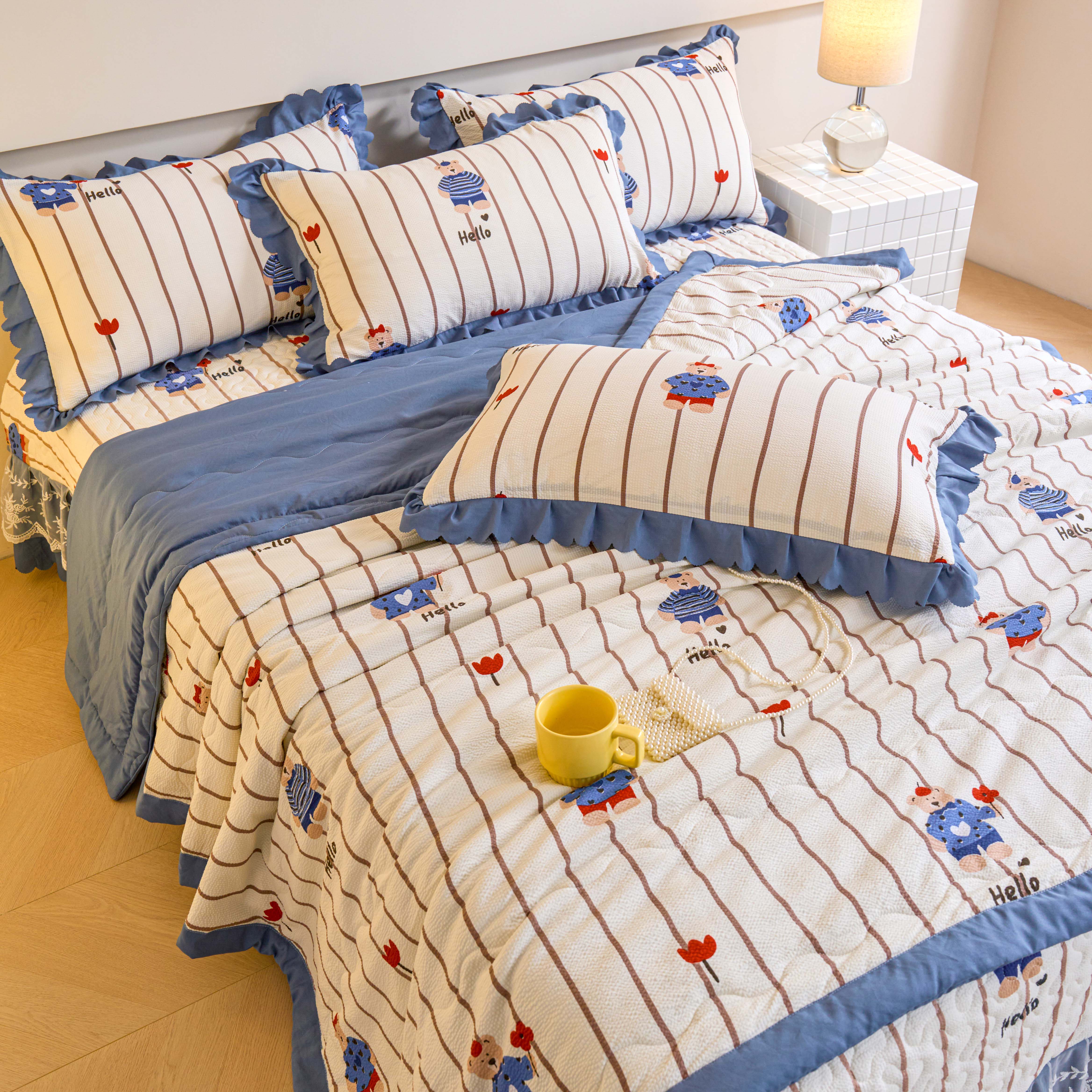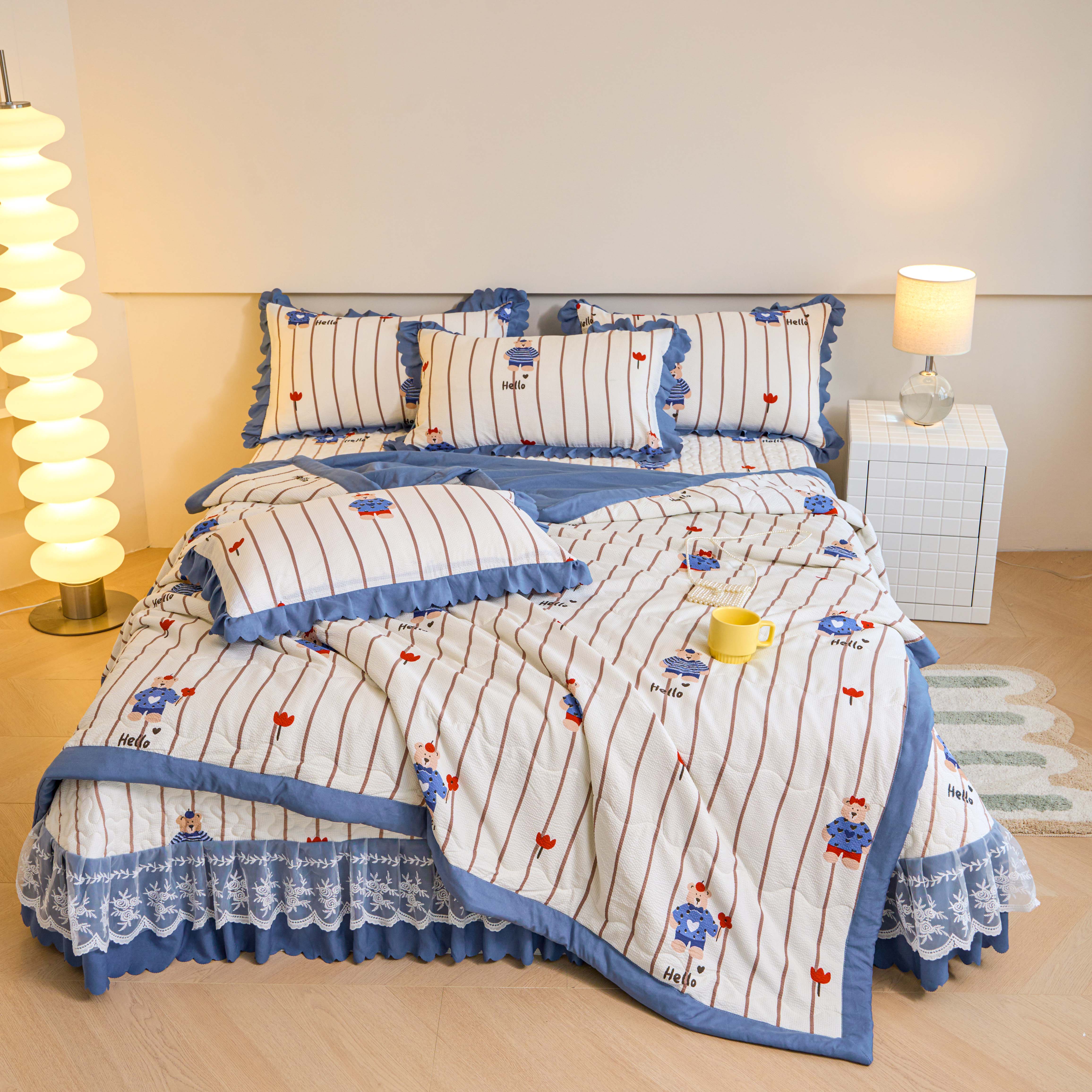 美莱家纺 2024新款软糯泡泡棉蕾丝床盖床盖四件套单品系列-床盖夏被四件套 小熊公仔