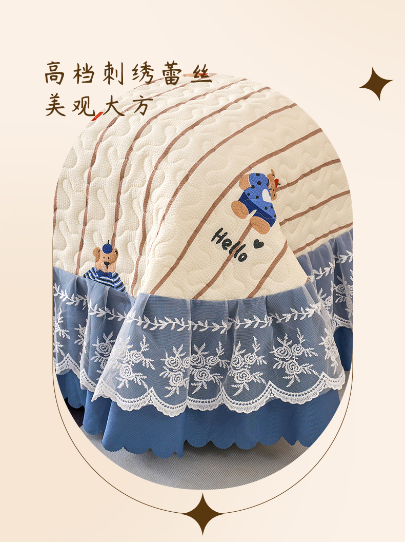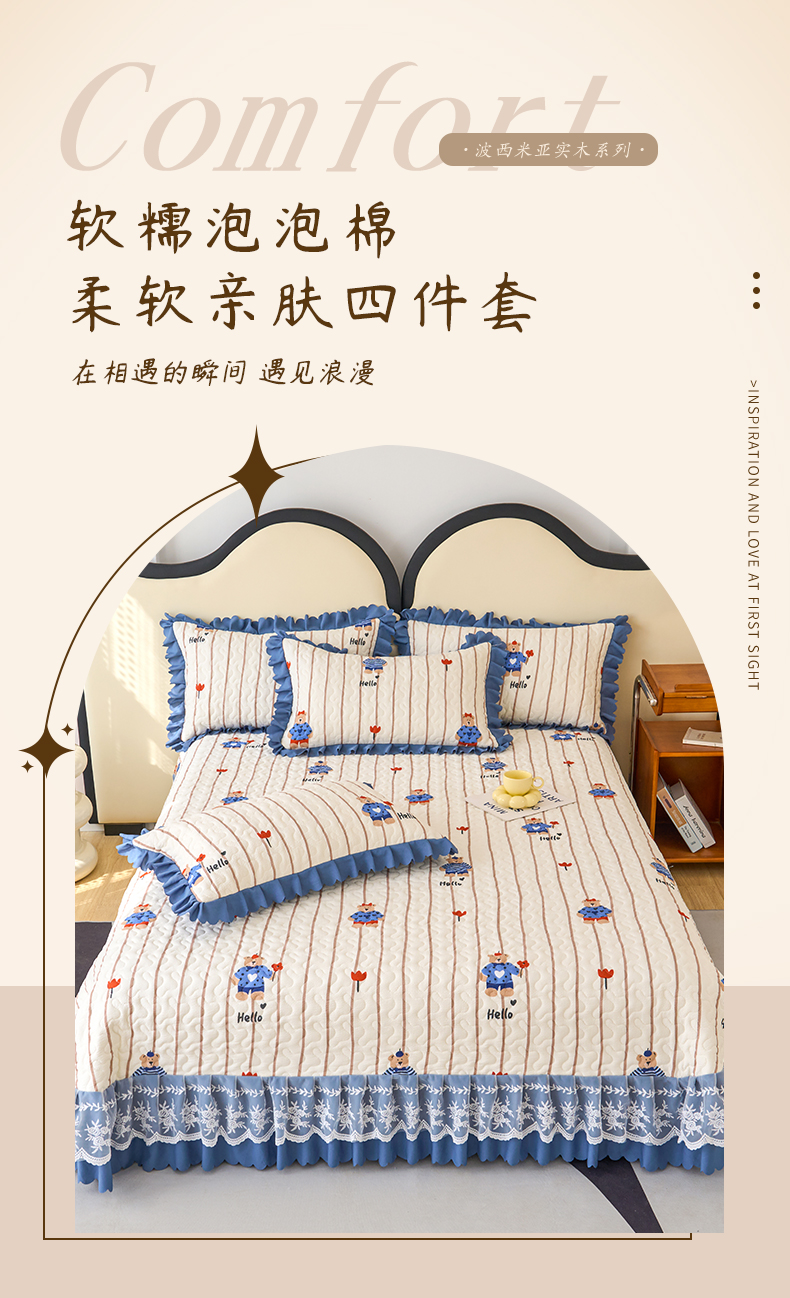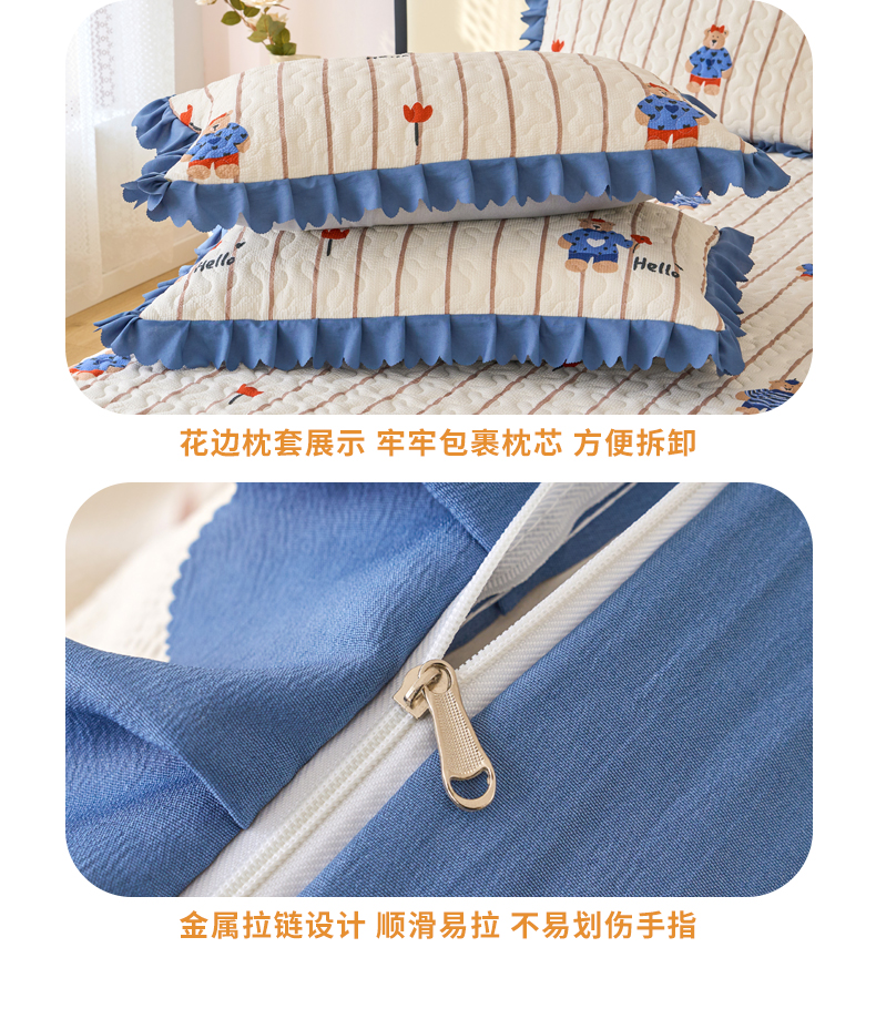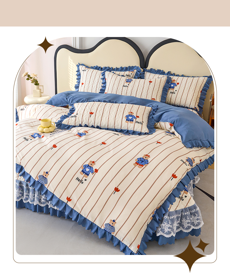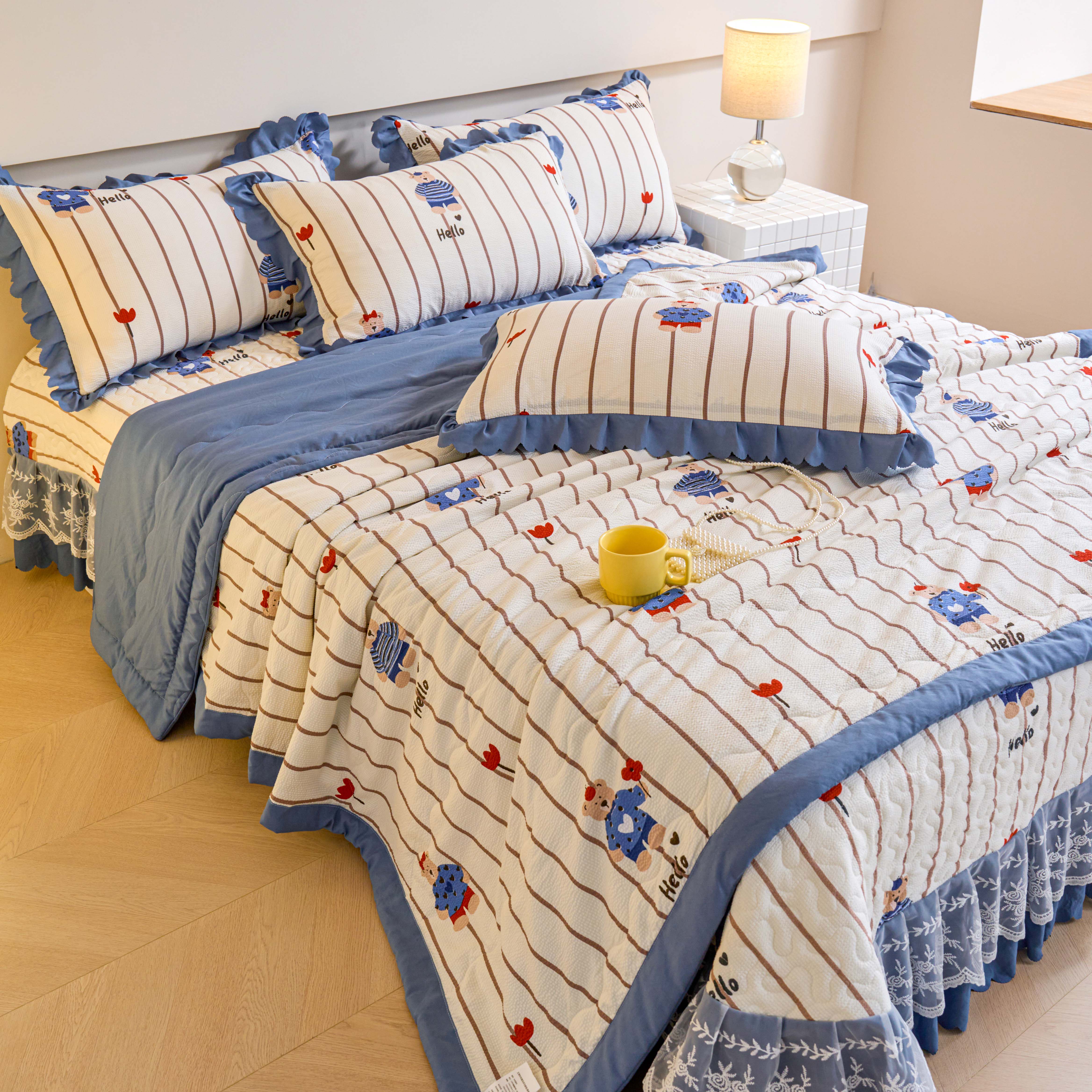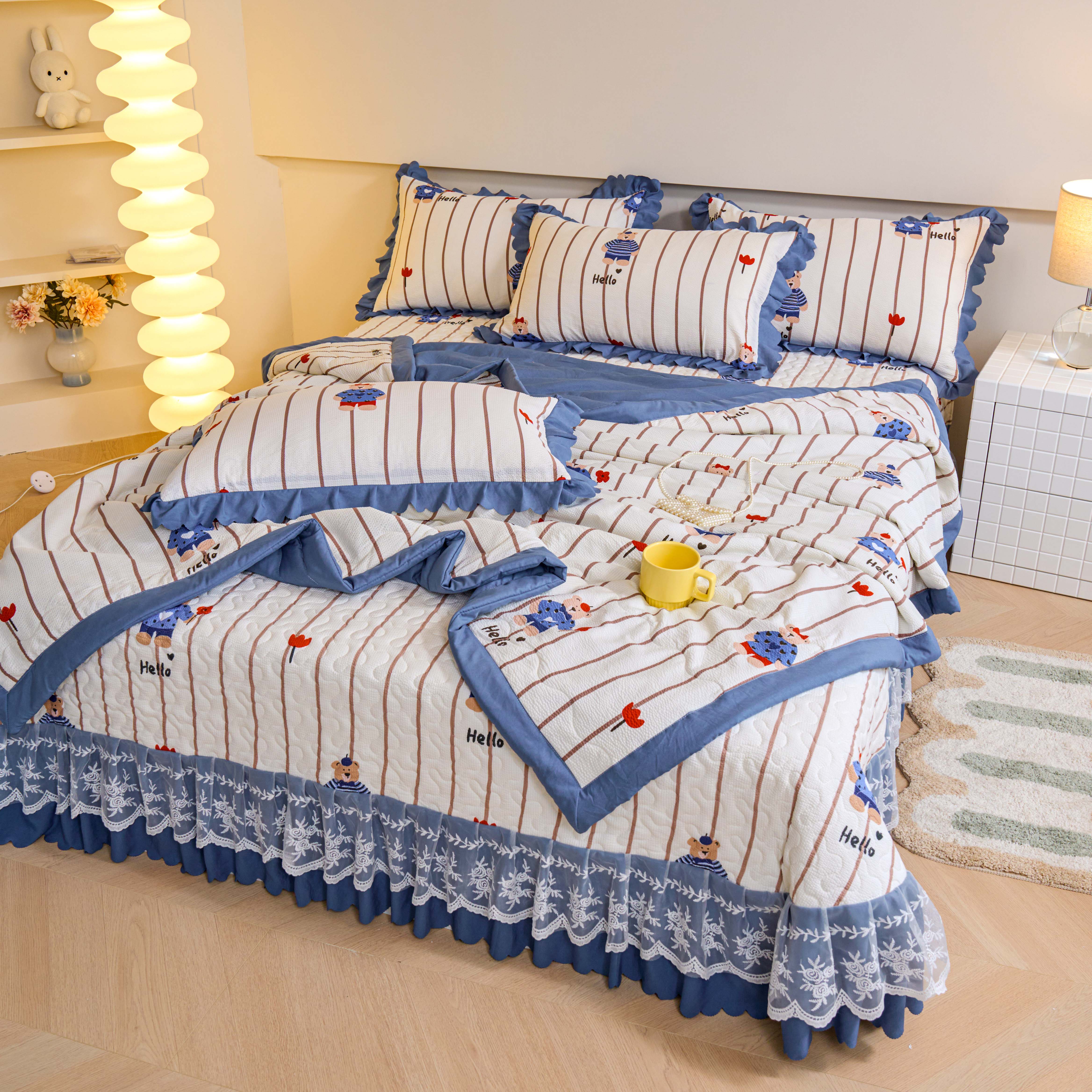 美莱家纺 2024新款软糯泡泡棉蕾丝床盖床盖四件套单品系列-床盖夏被四件套 小熊公仔