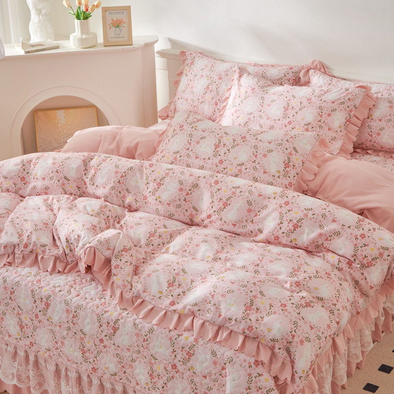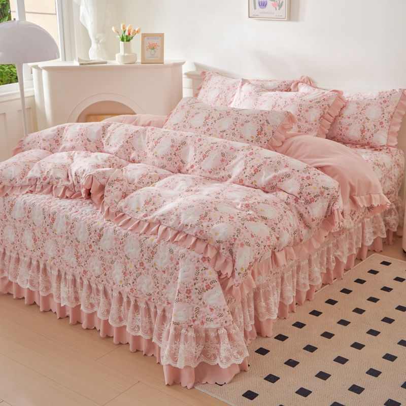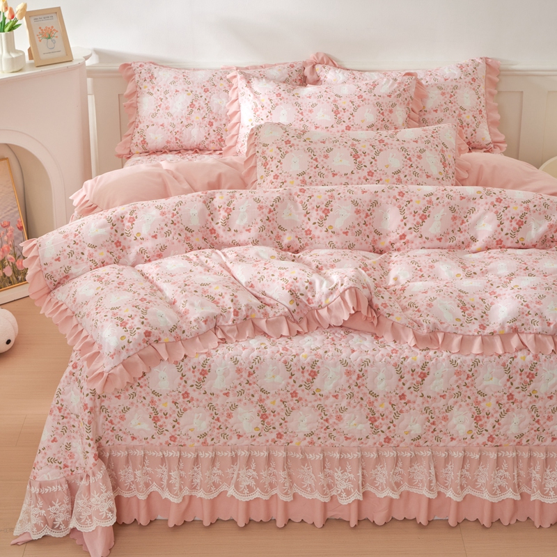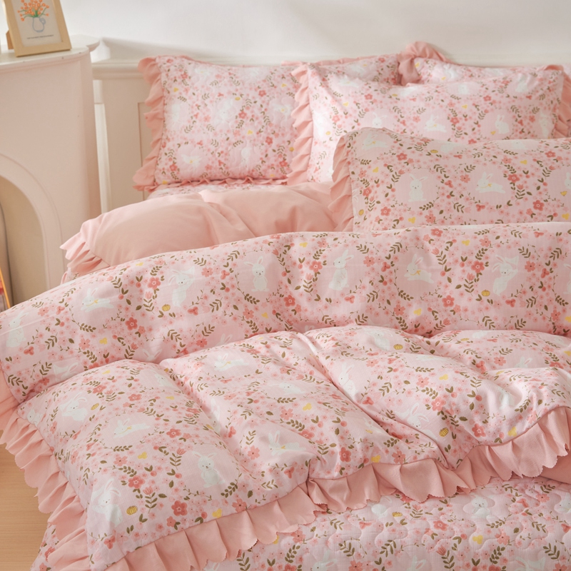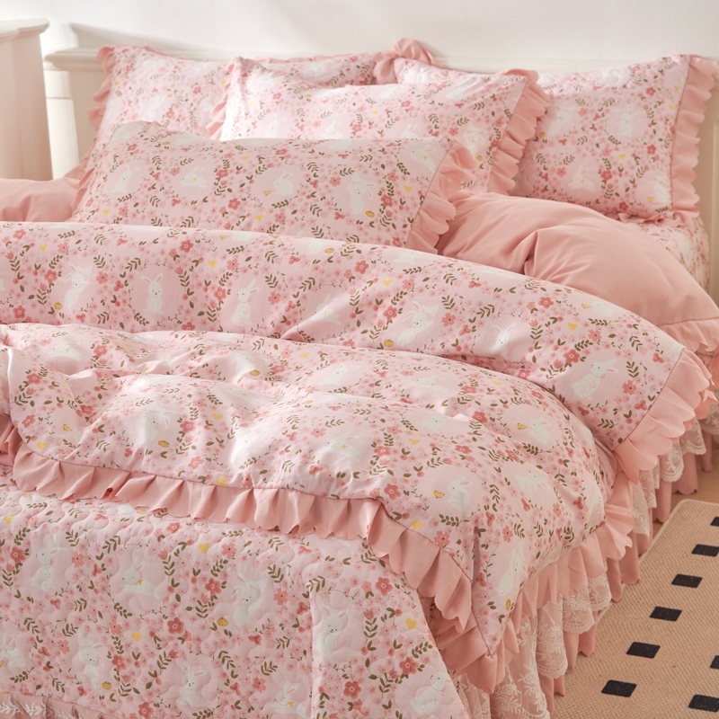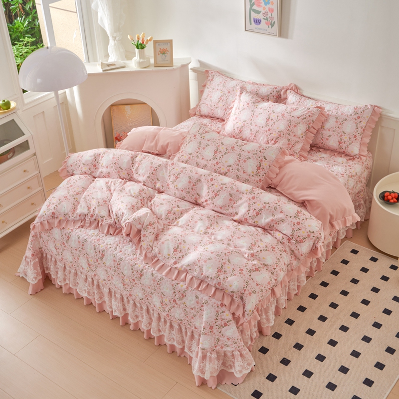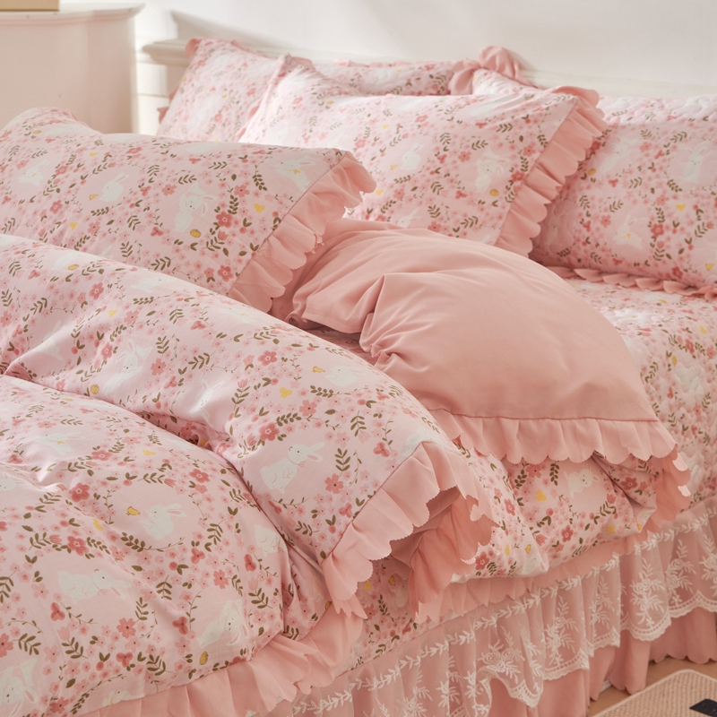 当前位置: 91家纺网 > 商品网购 > 床品套件 > 四件套 > 其它四件套 > 美莱家纺 2024爆款蕾丝床盖三件套四件套【被套款】 小桃兔兔