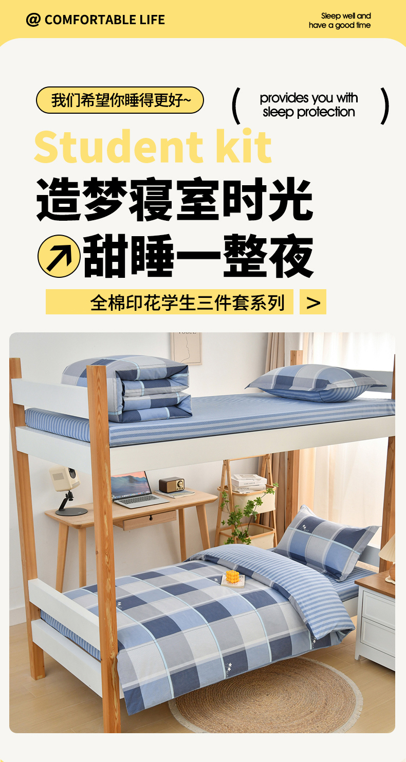 六件套:【三件套+4斤棉花被+3斤棉花褥垫(90*200)+枕芯】 | ¥148.00 |