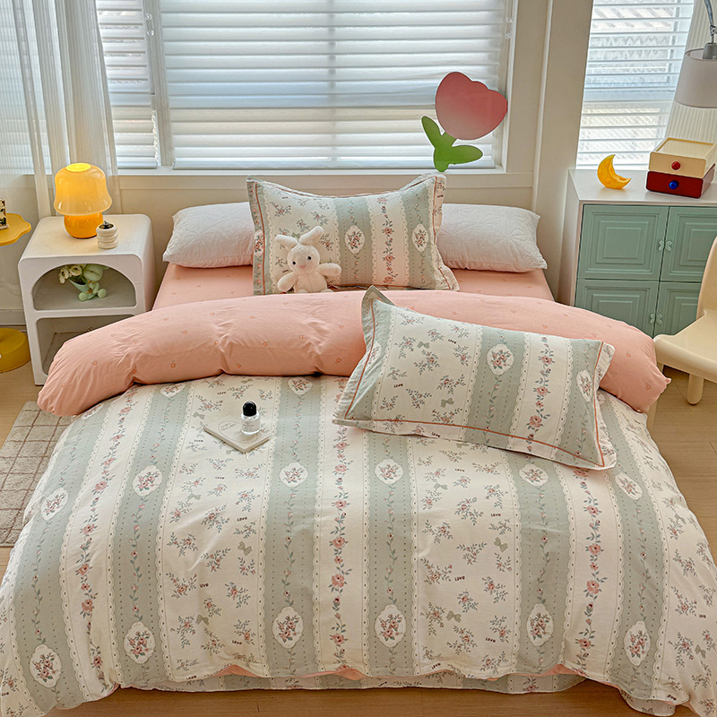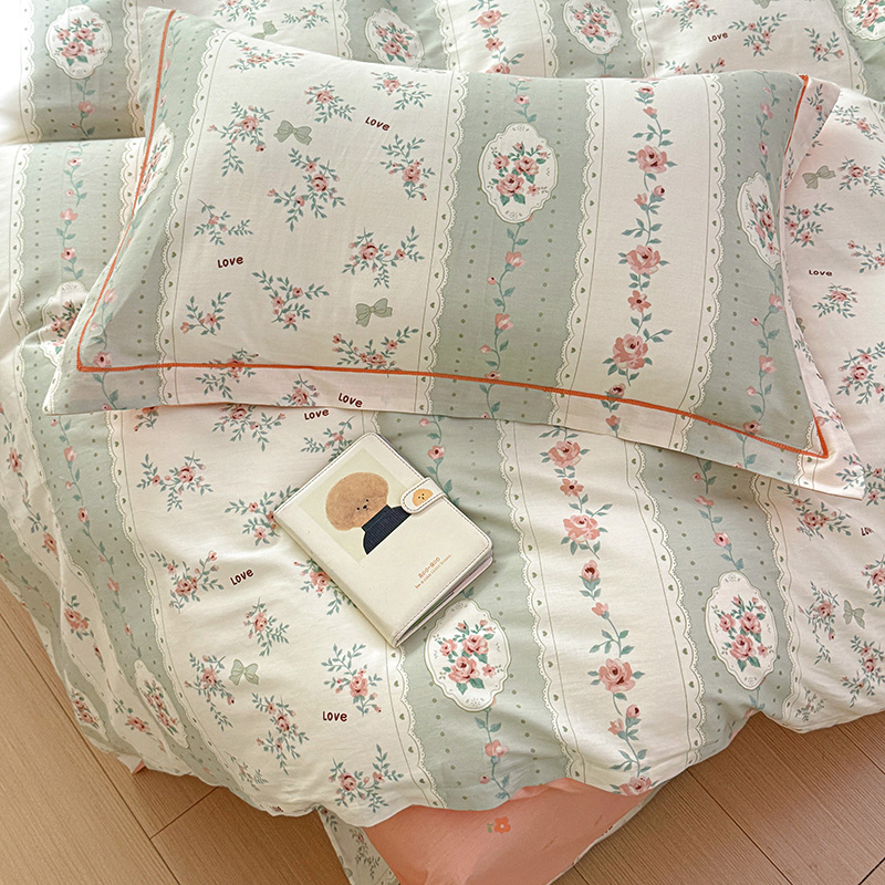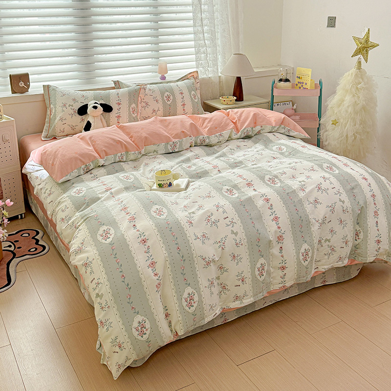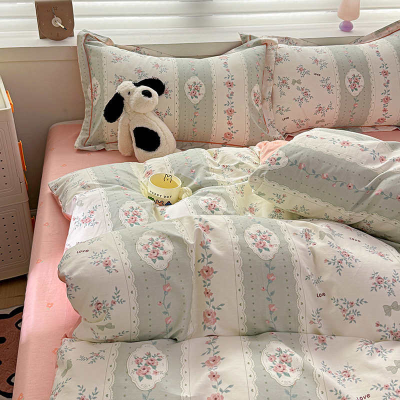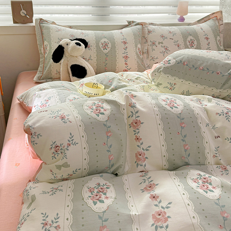 乐童 2024新款直播爆款13070纯棉印花吊边款一字绣四件套第八波娴静小花