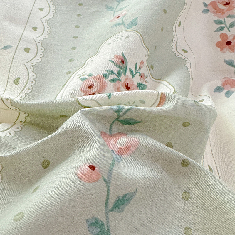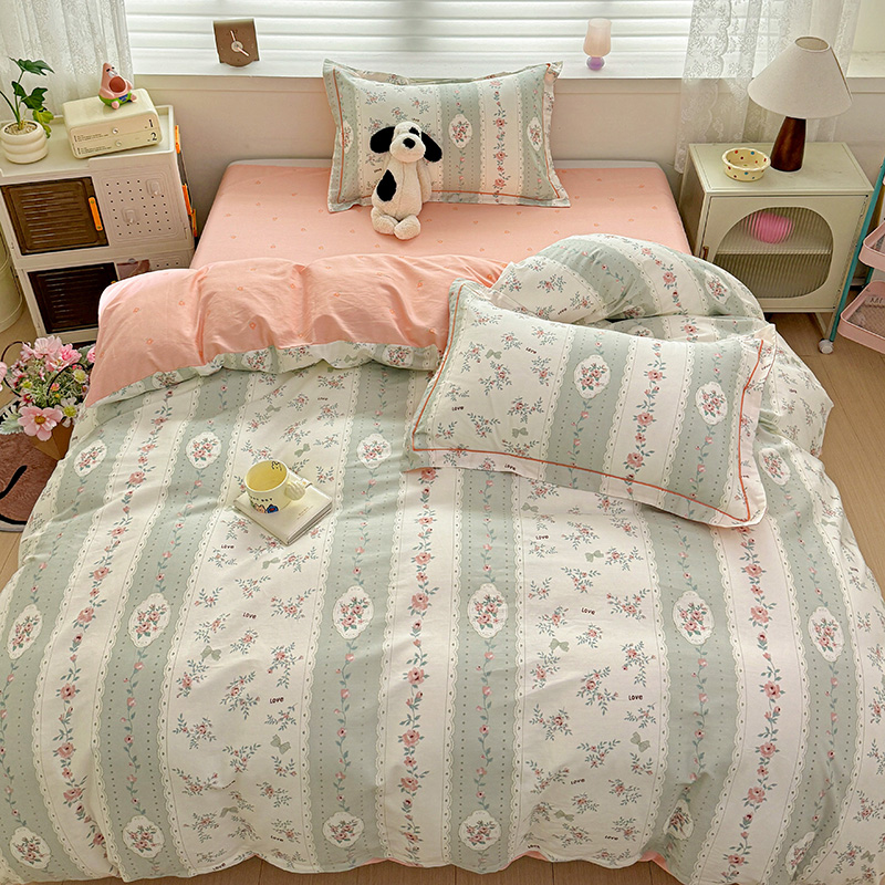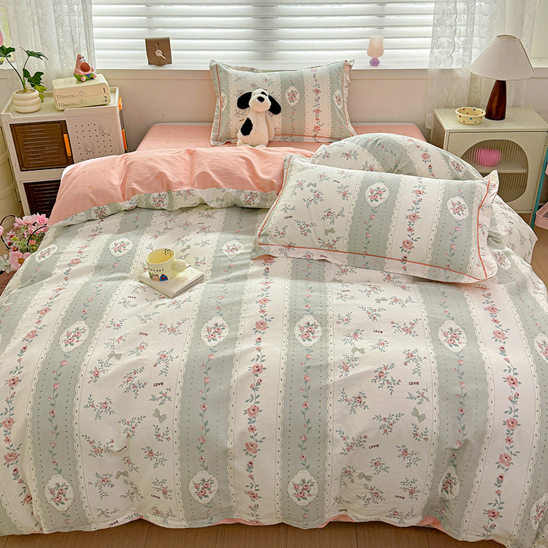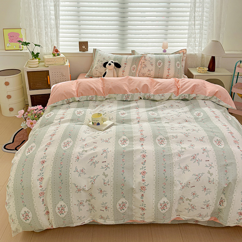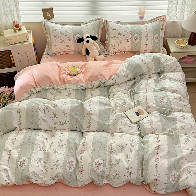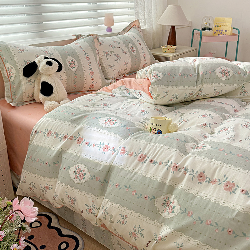 乐童 2024新款直播爆款13070纯棉印花吊边款一字绣四件套第八波娴静小花