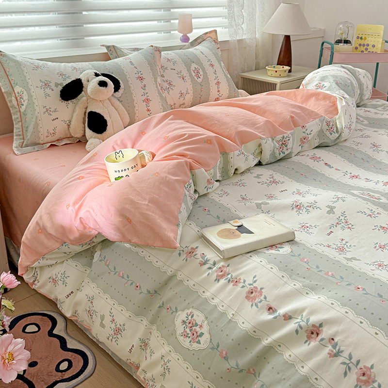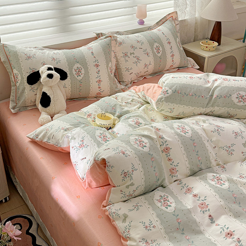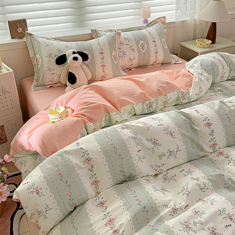 (总)乐童家纺 2026新款全棉纯棉拼接花边小清新工艺款四件套,彩虹木马,春日小兔,花田兔兔,凯莉梦境,口袋故事,浪花轻歌,毛线彩虹,梦境手账,千禧少女咖,少女日记,心跳瞬间