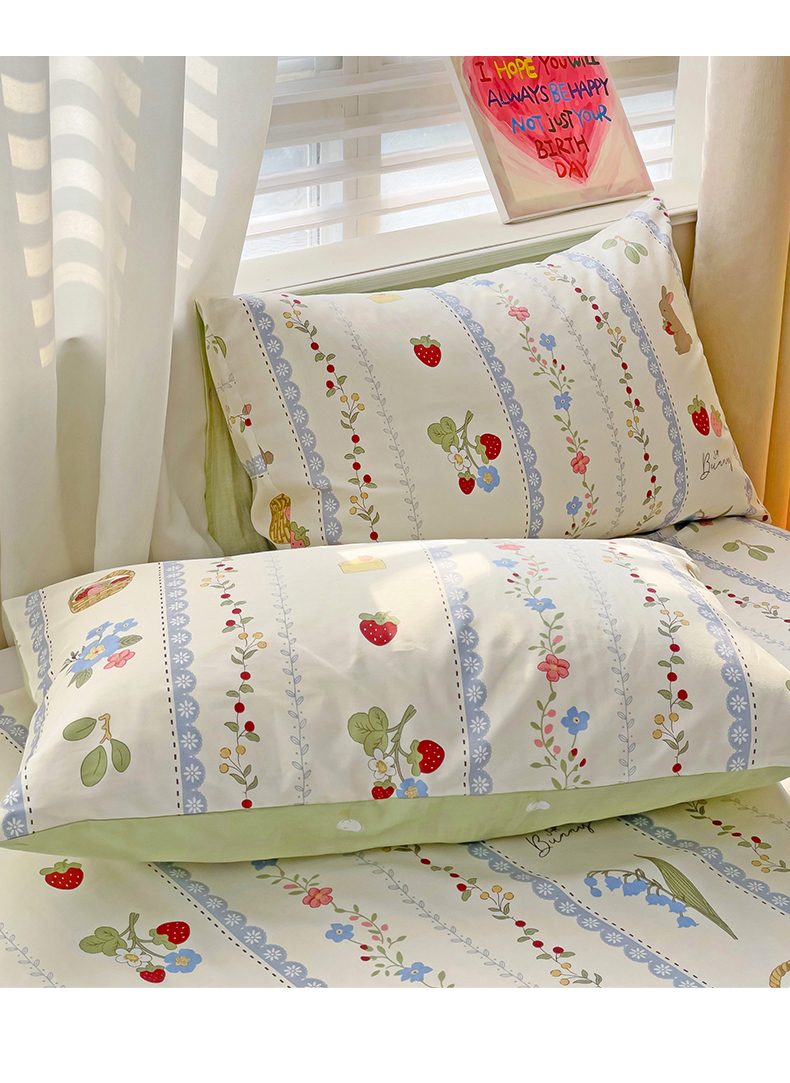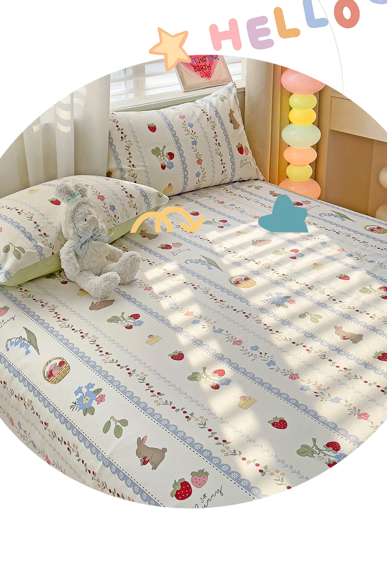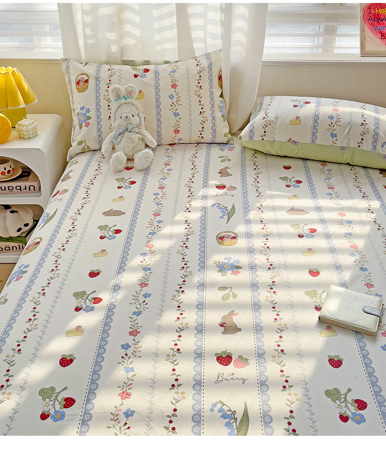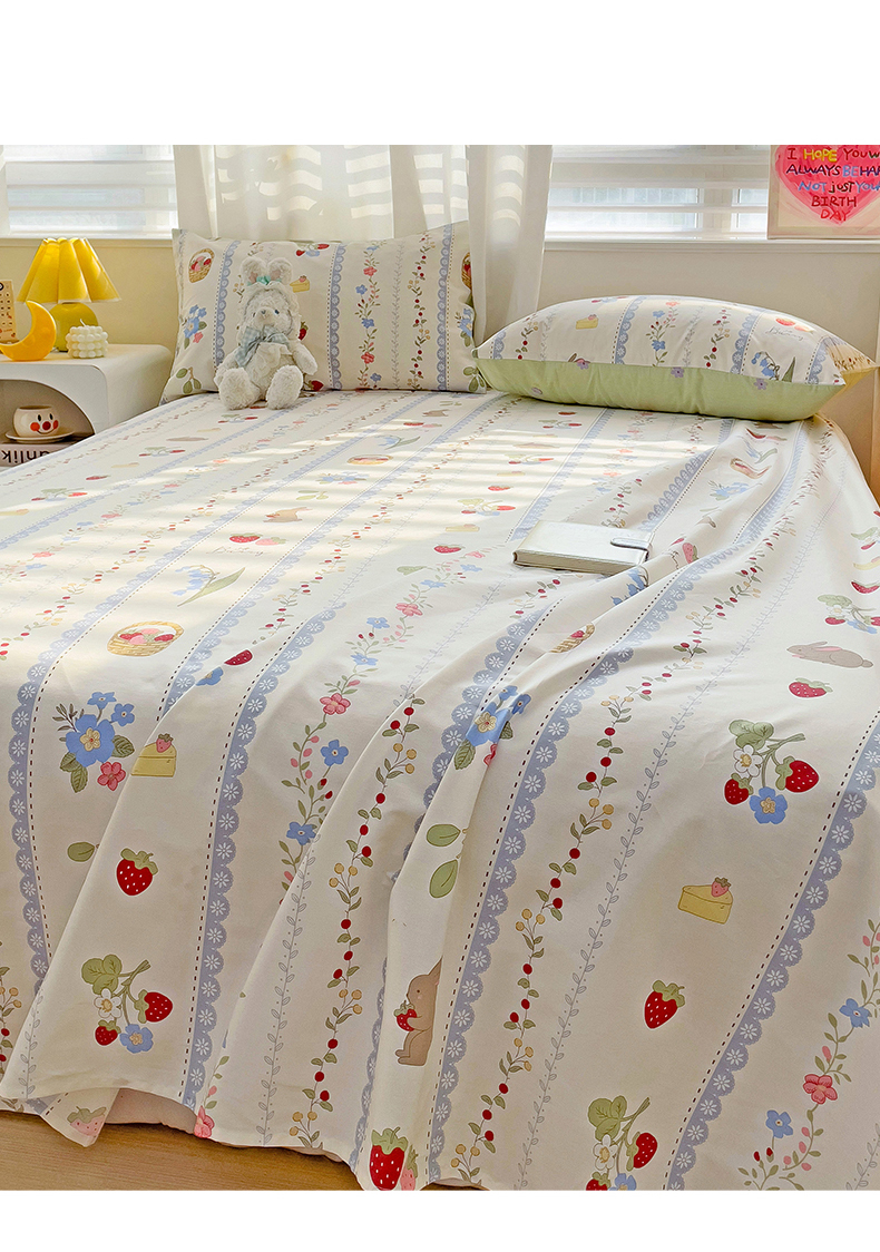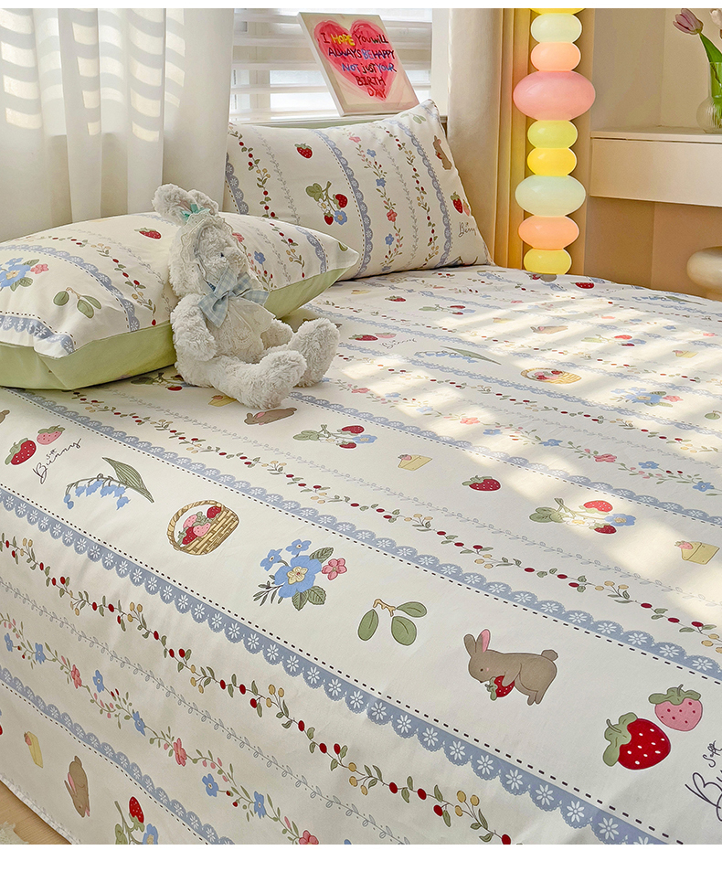 名兮家居 2024年新款全棉床单 草莓兔兔