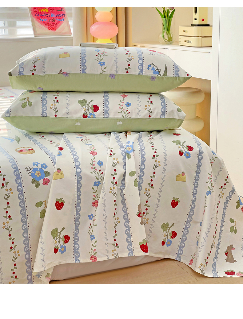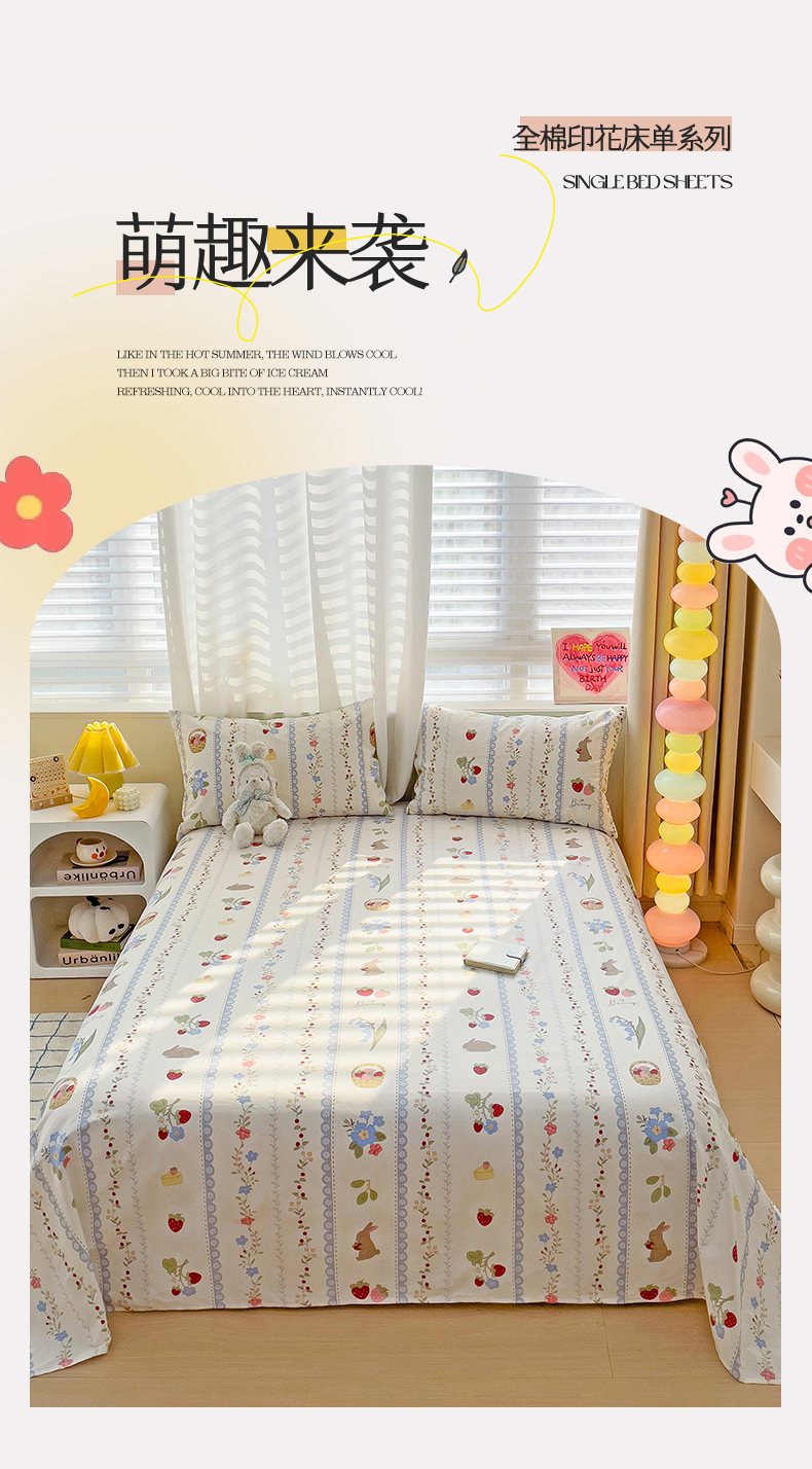• 91家纺网 家纺一手货源 找家纺 名兮家居 2024年新款全棉床单 草莓兔兔