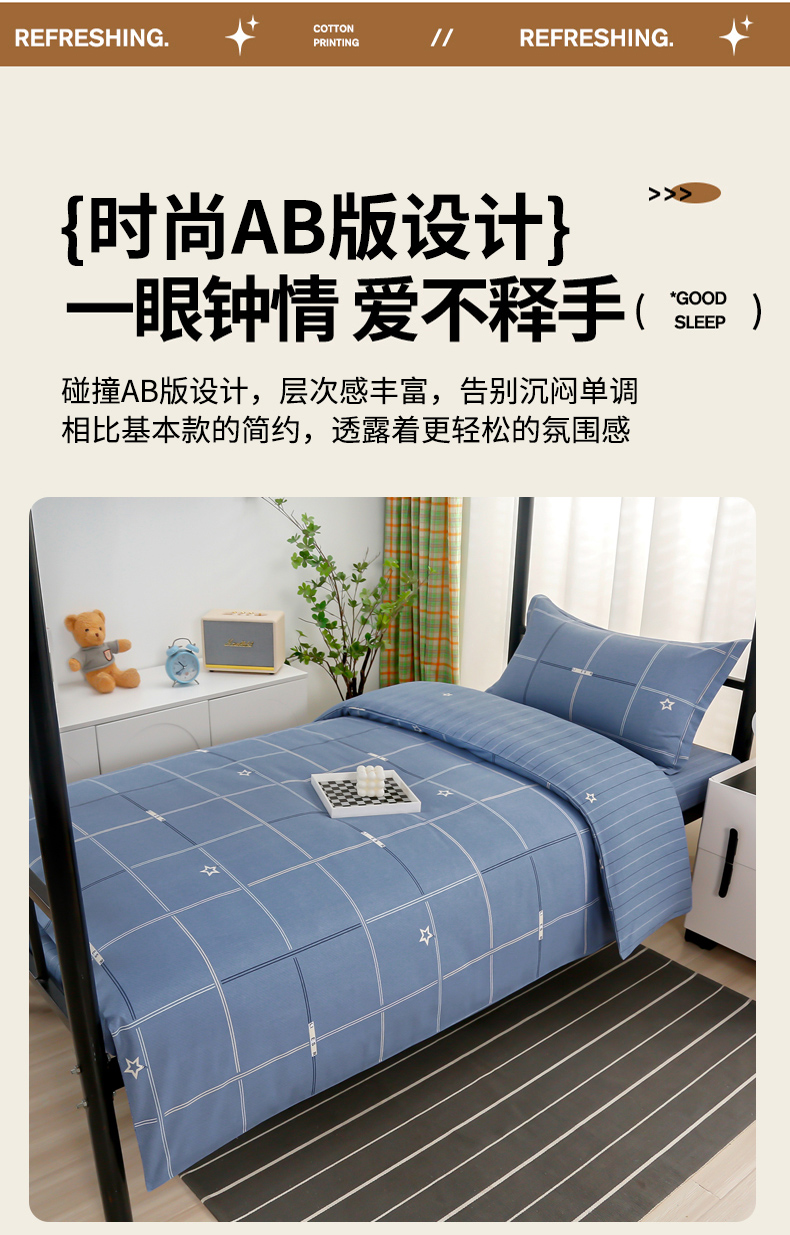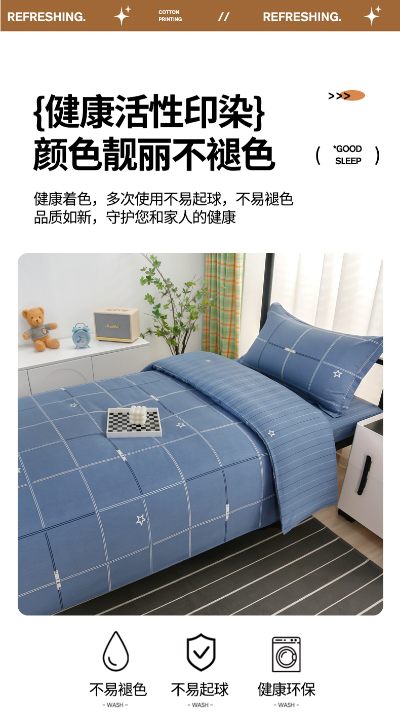 当前位置: 91家纺网 > 商品网购 > 床品套件 > 三件套 > 乐旗家纺 2024新款13372全棉床笠款环保学生套件 潮流前线
