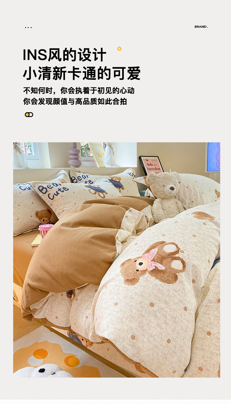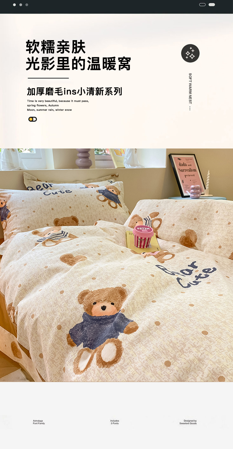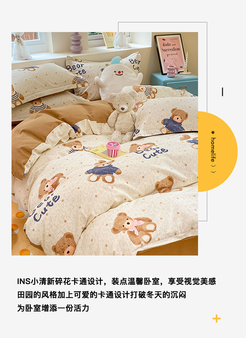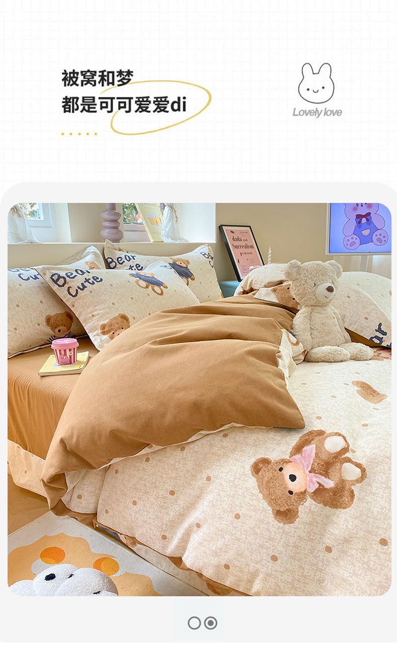 (总)卧趣家纺 2025秋冬新品美拉德卡通全棉纯棉磨毛四件套,薇薇安,奥汀小狗,告白熊,乐桃,时光,甜酷猫猫,甜心小狗,童趣,小萌狮,邂逅-粉,邂逅-紫