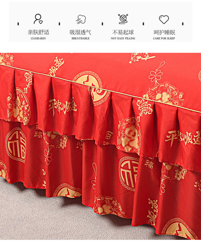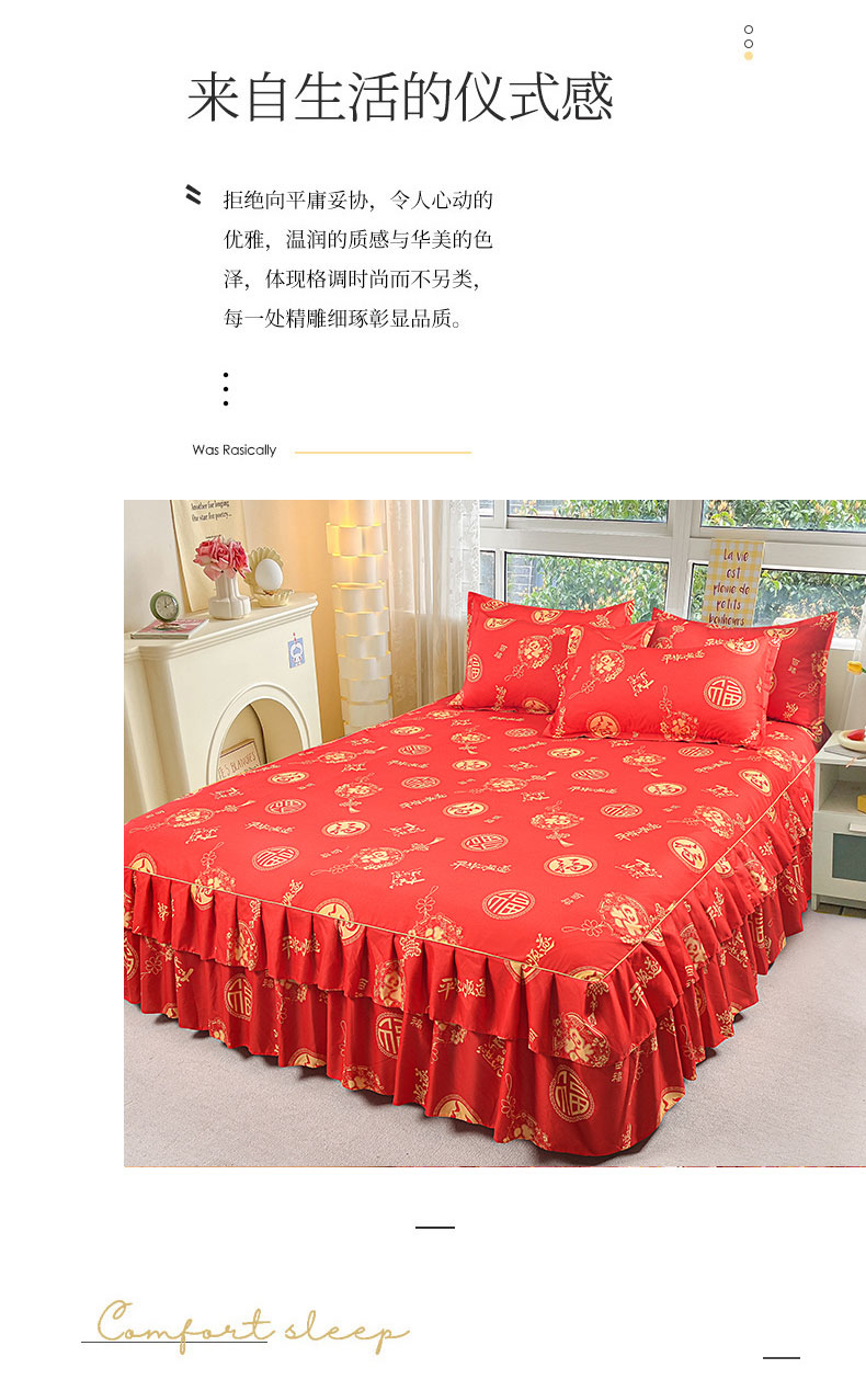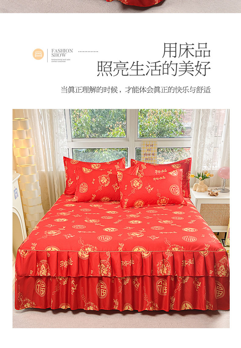 当前位置: 91家纺网 > 商品网购 > 床品套件 > 三件套 > 小雨家纺 2026新款芦荟棉床裙三件套 福寿绵绵
