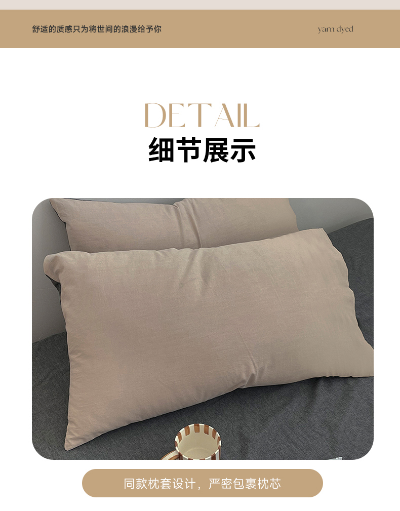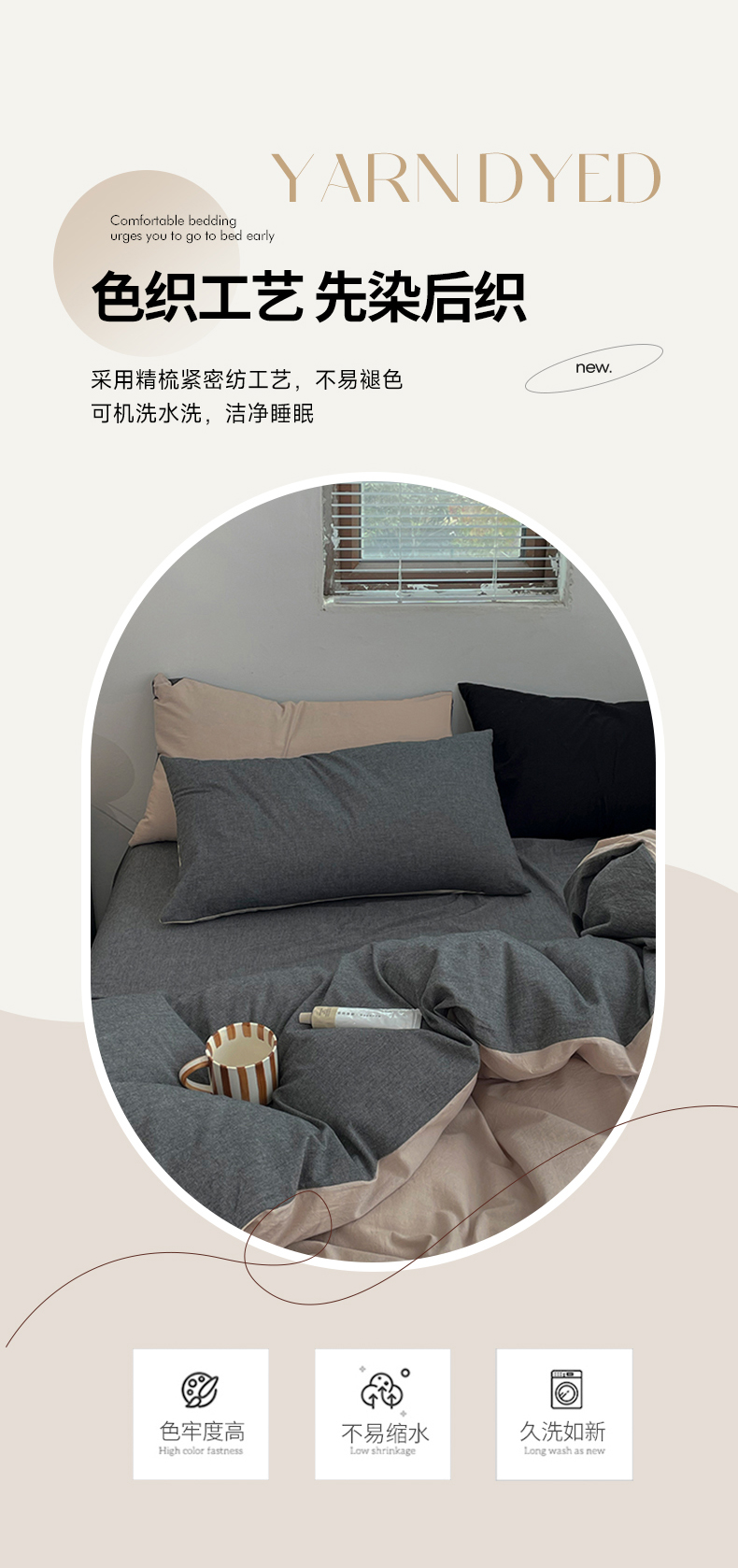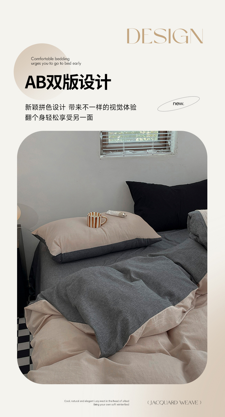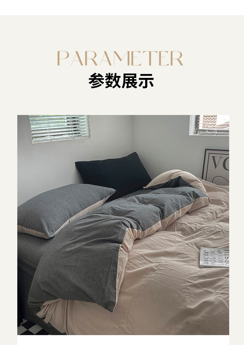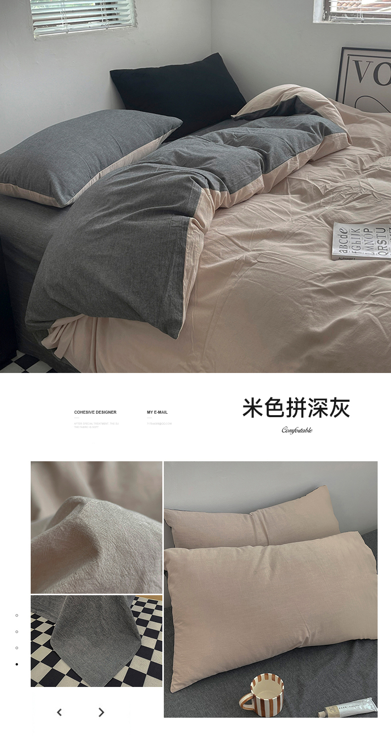 当前位置: 91家纺网 > 商品网购 > 床品套件 > 四件套 > 全棉普通四件套 > 2024新款A类全棉纯棉纯色双拼色织水洗棉四件套 米色拼深灰