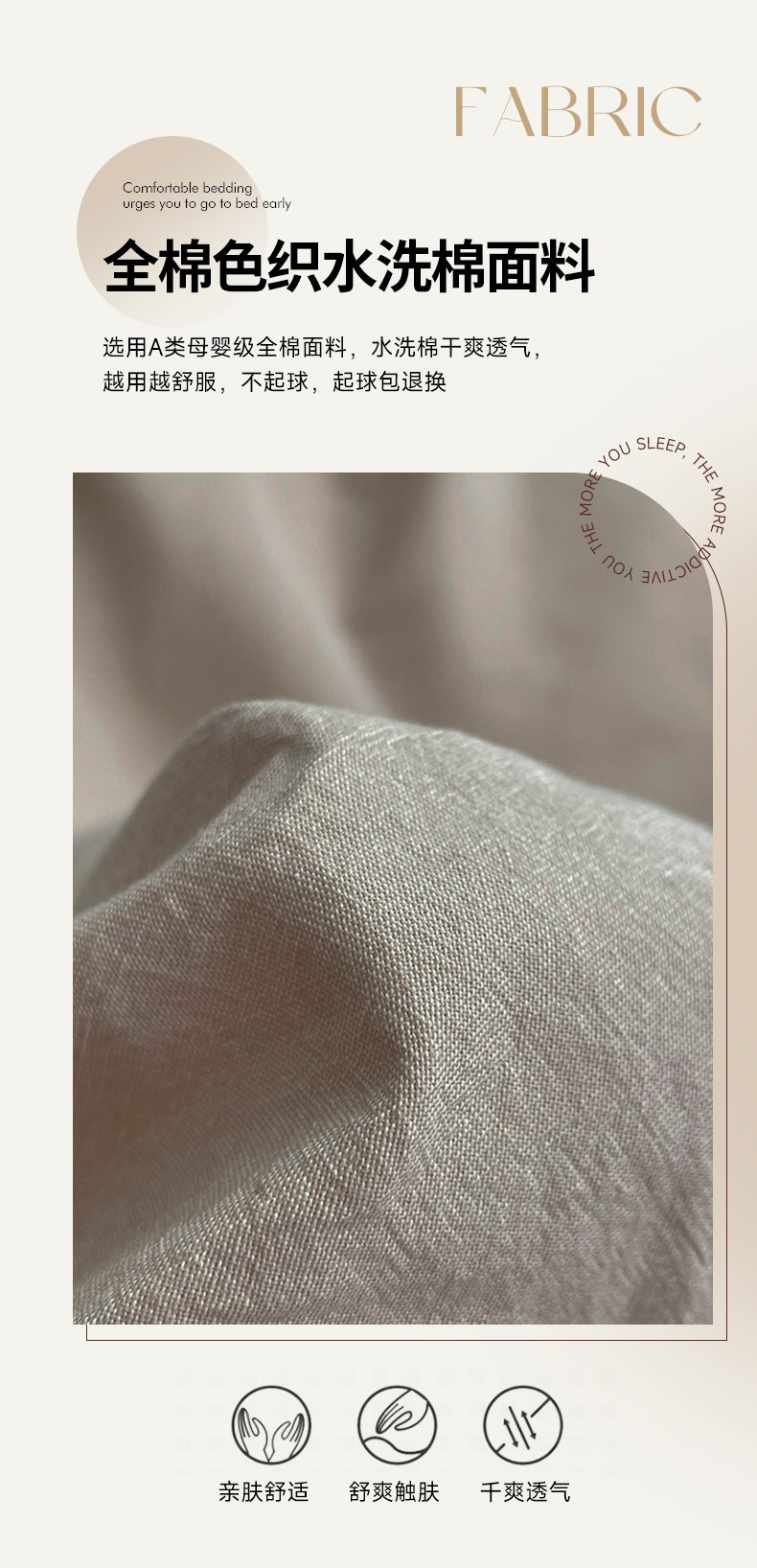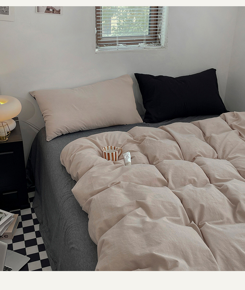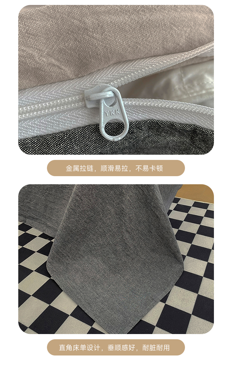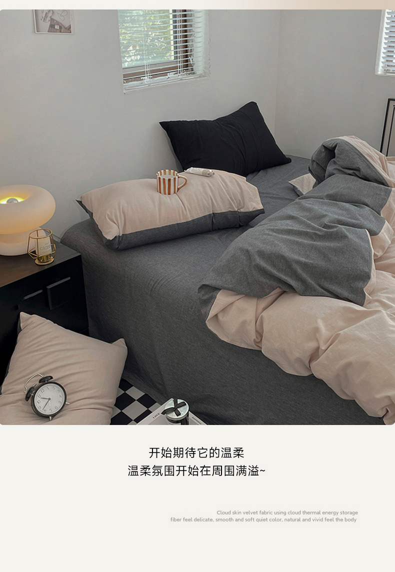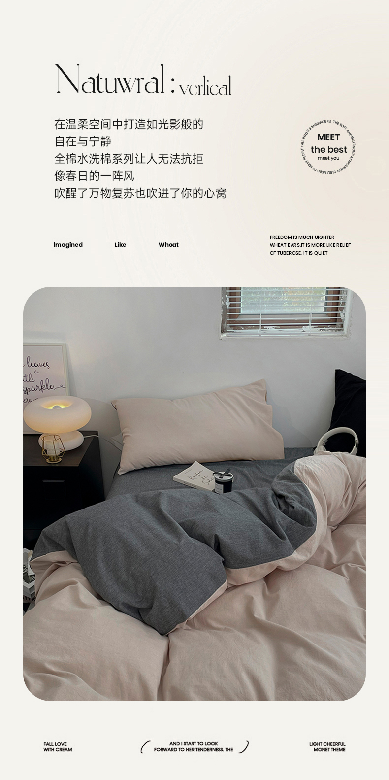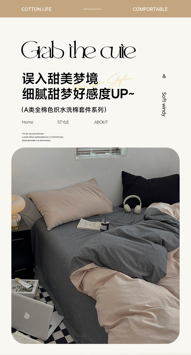 当前位置: 91家纺网 > 商品网购 > 床品套件 > 四件套 > 全棉普通四件套 > 2024新款A类全棉纯棉纯色双拼色织水洗棉四件套 米色拼深灰