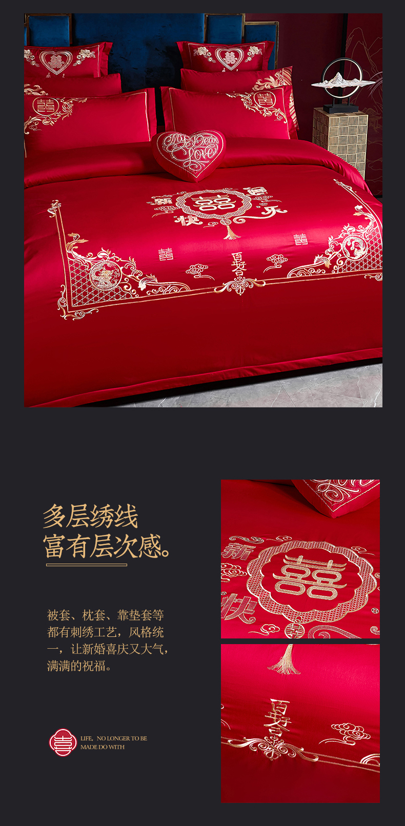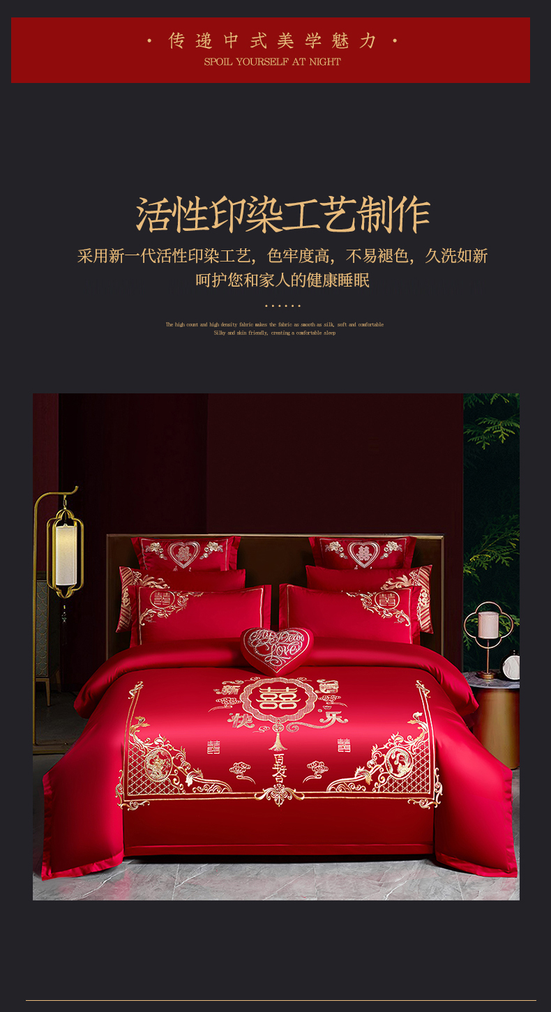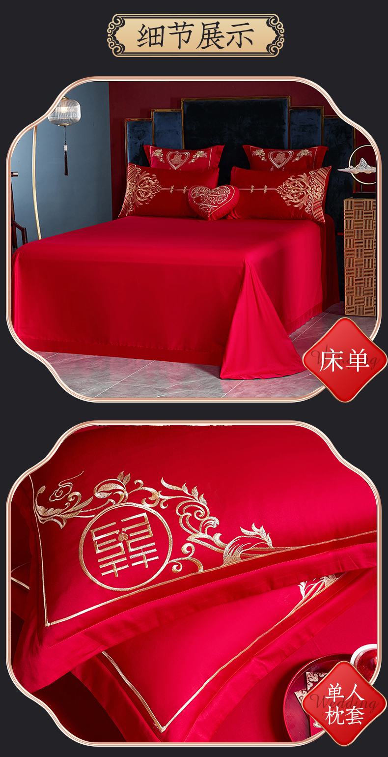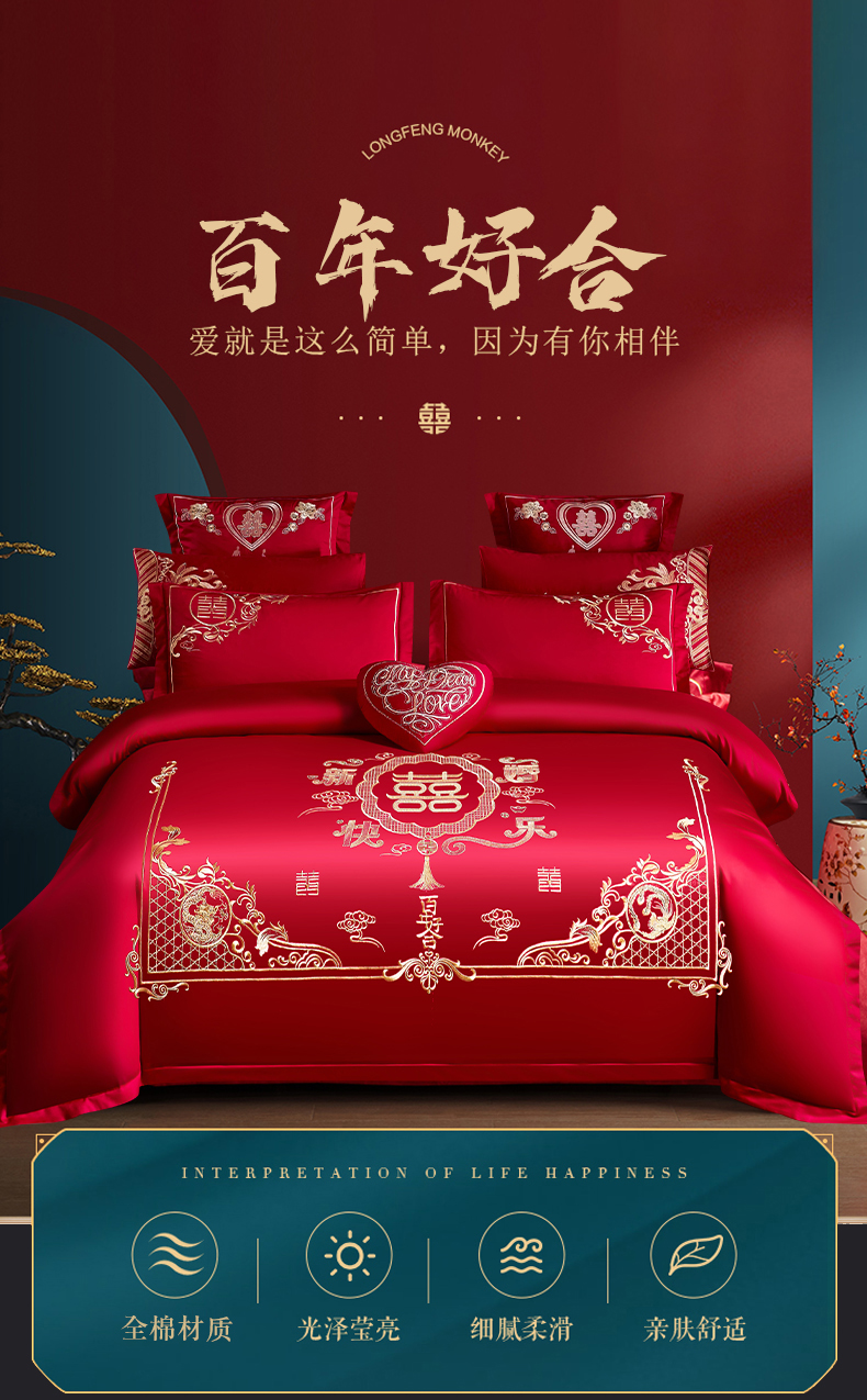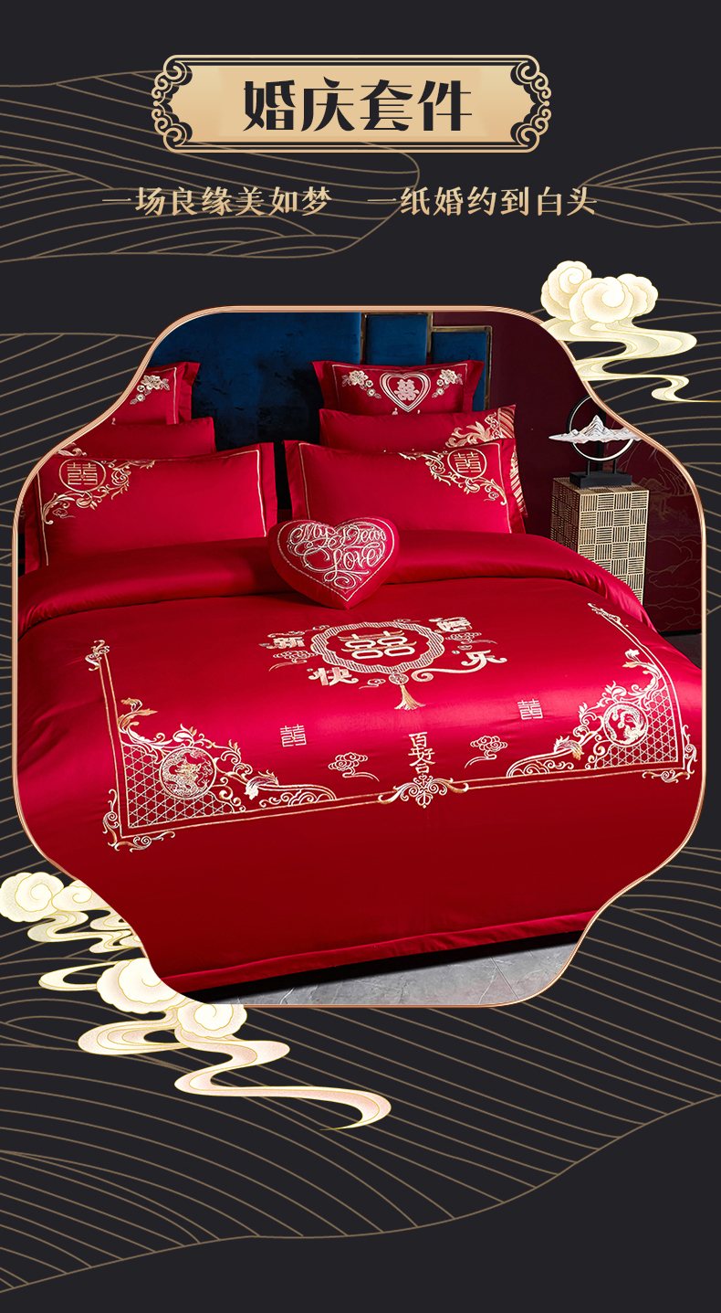 当前位置: 91家纺网 > 商品网购 > 床品套件 > 四件套 > 婚庆四件套 > 振翼 2025新款40s全棉丝光喷气婚庆四件套多件套1 百年好合