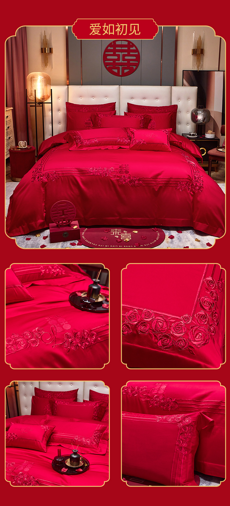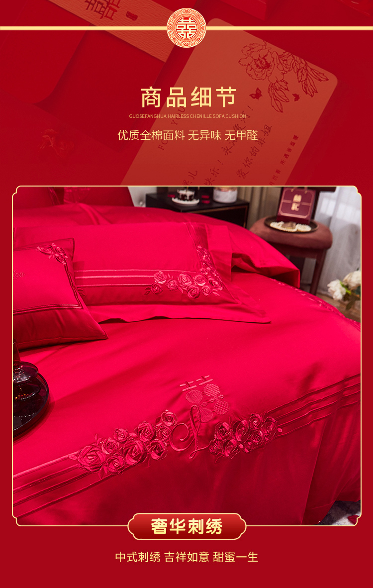 当前位置: 91家纺网 > 商品网购 > 床品套件 > 四件套 > 婚庆四件套 > 美娘阁 2025新款长绒棉贡缎新中式古典韵味精美刺绣婚庆四件套多件套系列 爱如初见