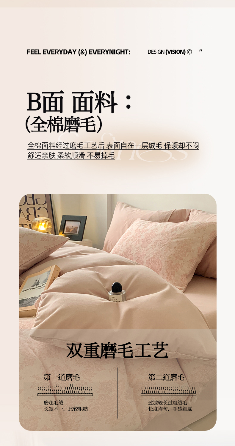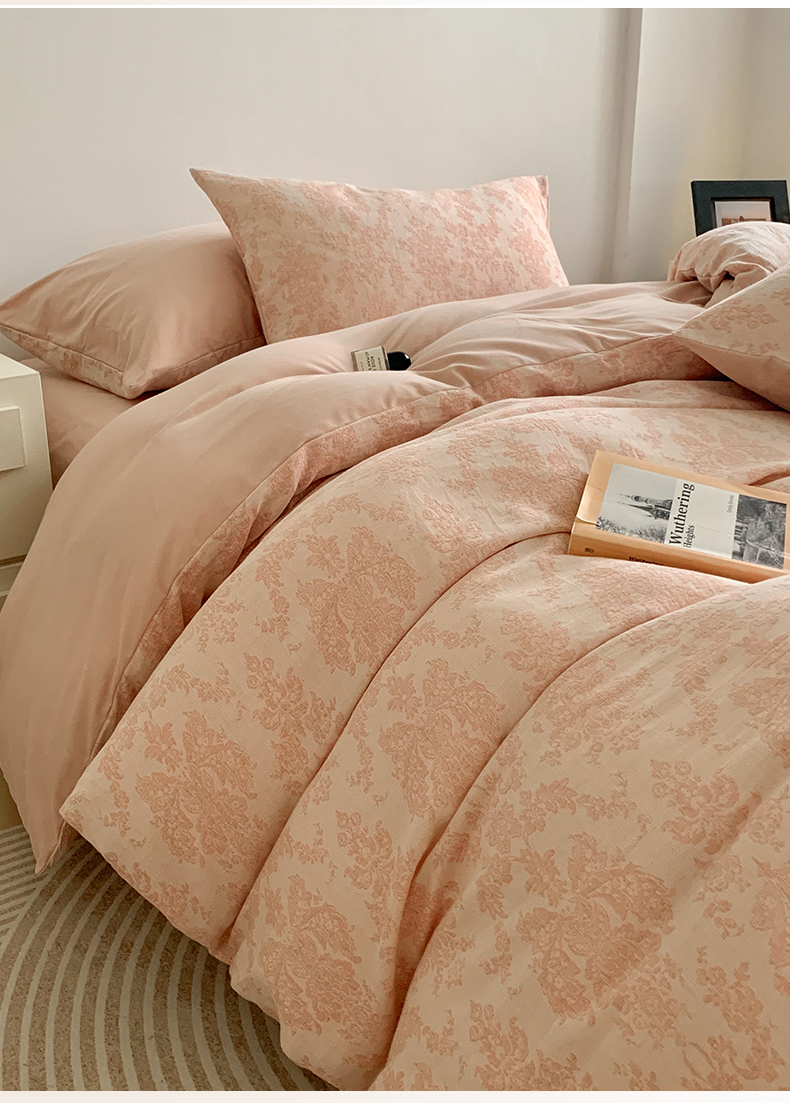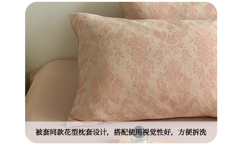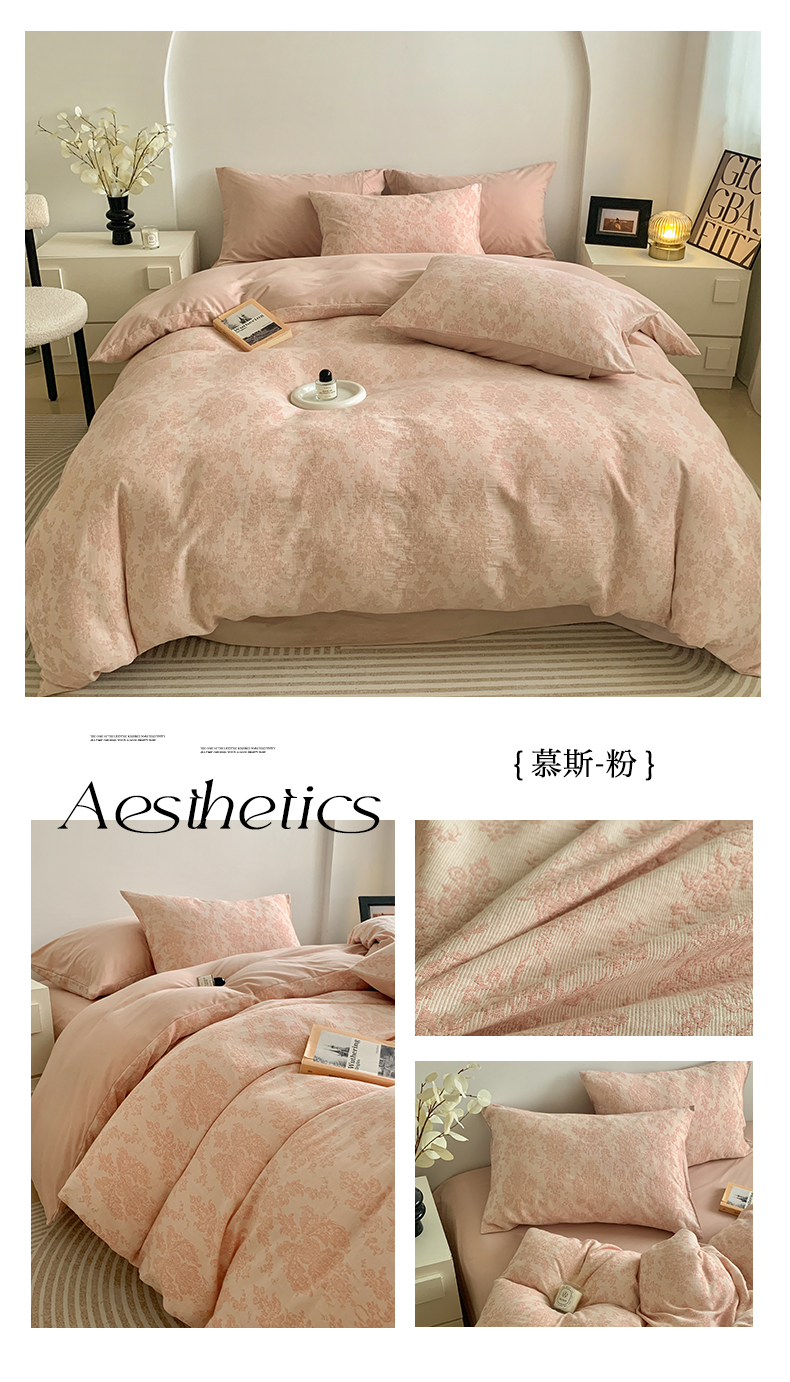 商品名称:莱茵家居 2024新款全棉磨毛A类色织提花四件套 慕斯-粉