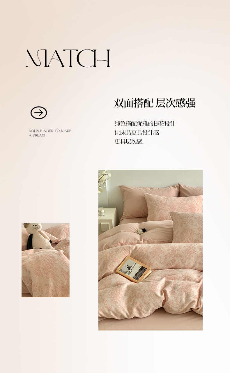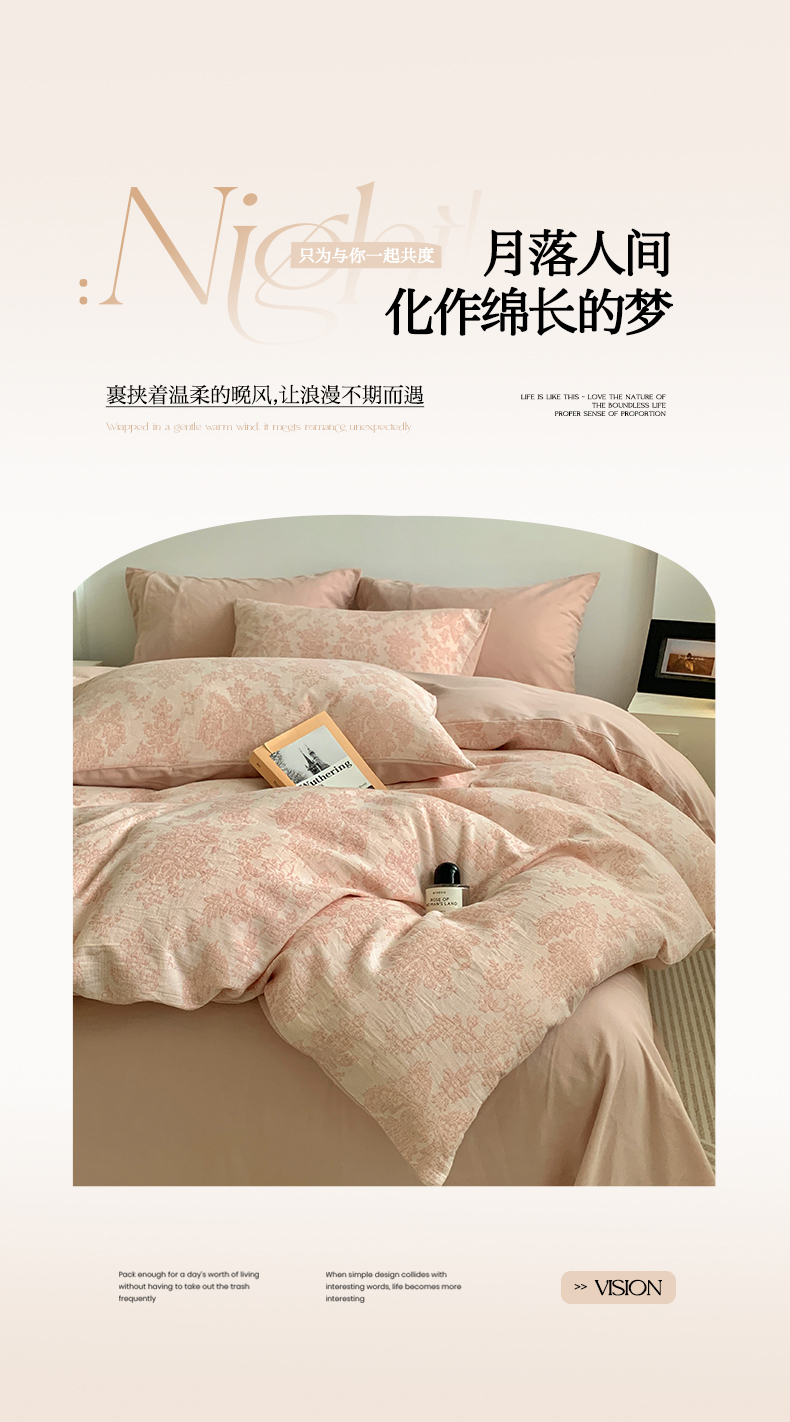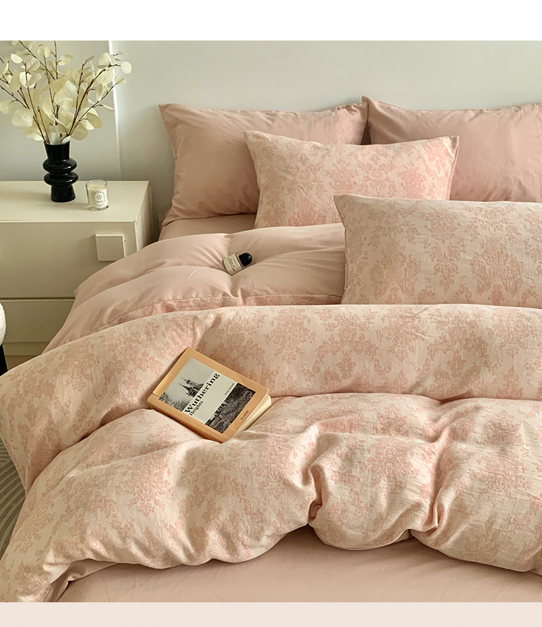 商品名称:莱茵家居 2024新款全棉磨毛A类色织提花四件套 慕斯-粉