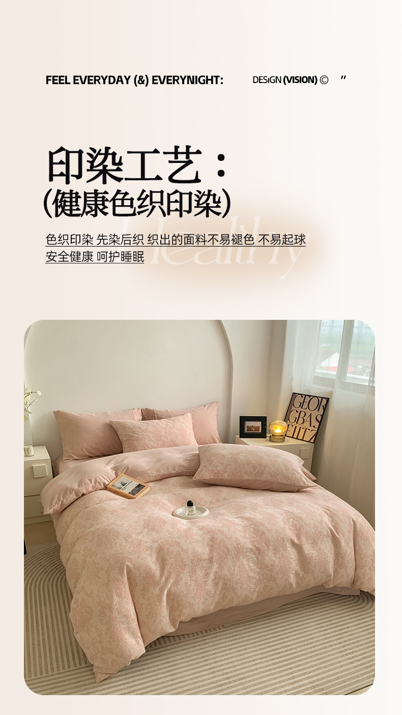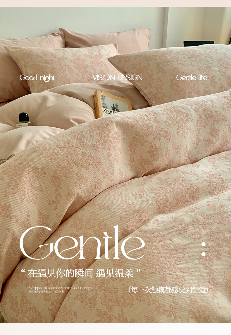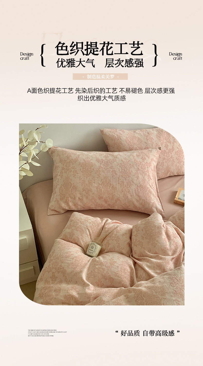 莱茵家居 2024新款全棉磨毛A类色织提花四件套 慕斯-粉