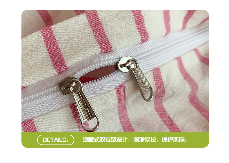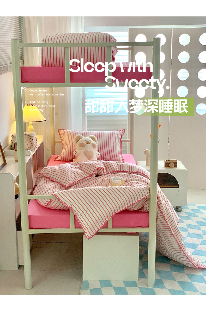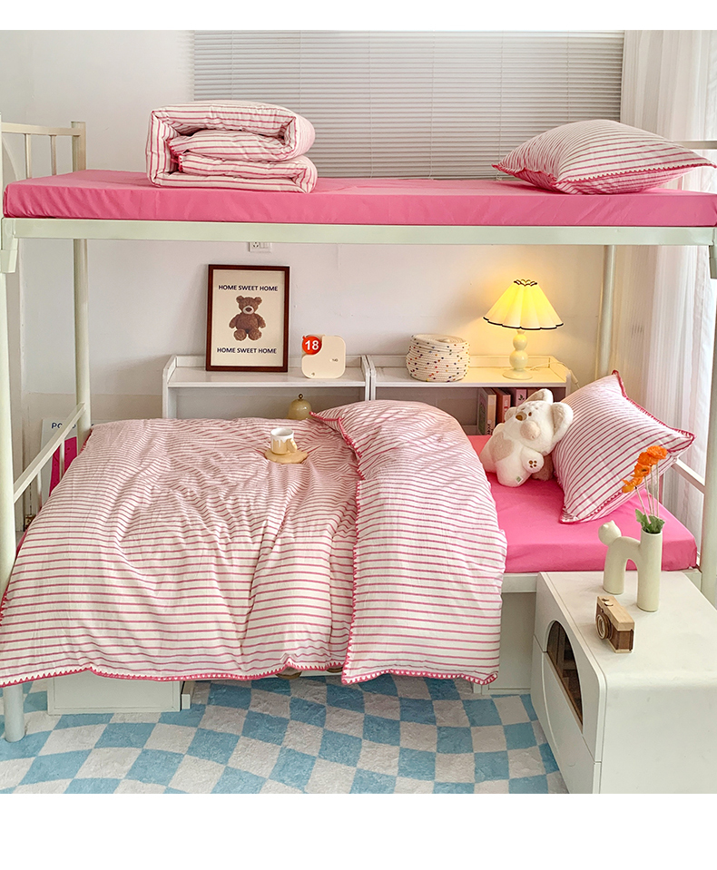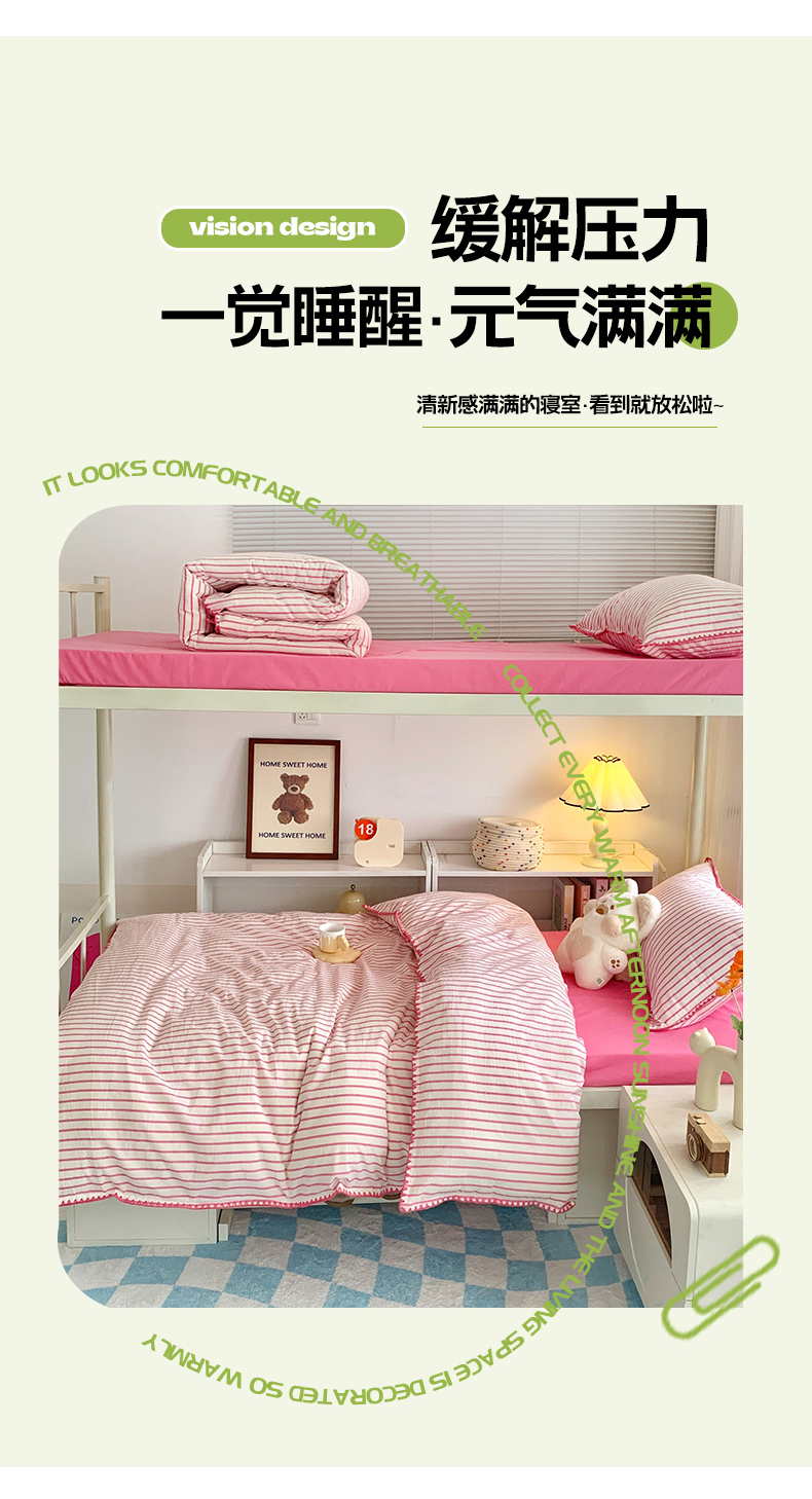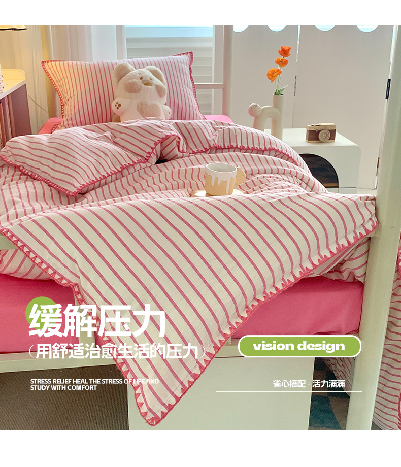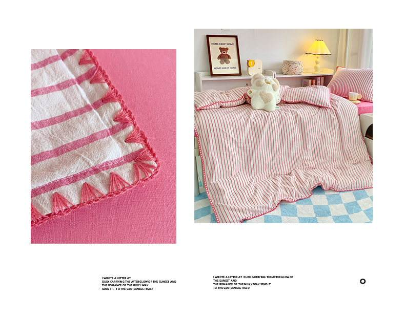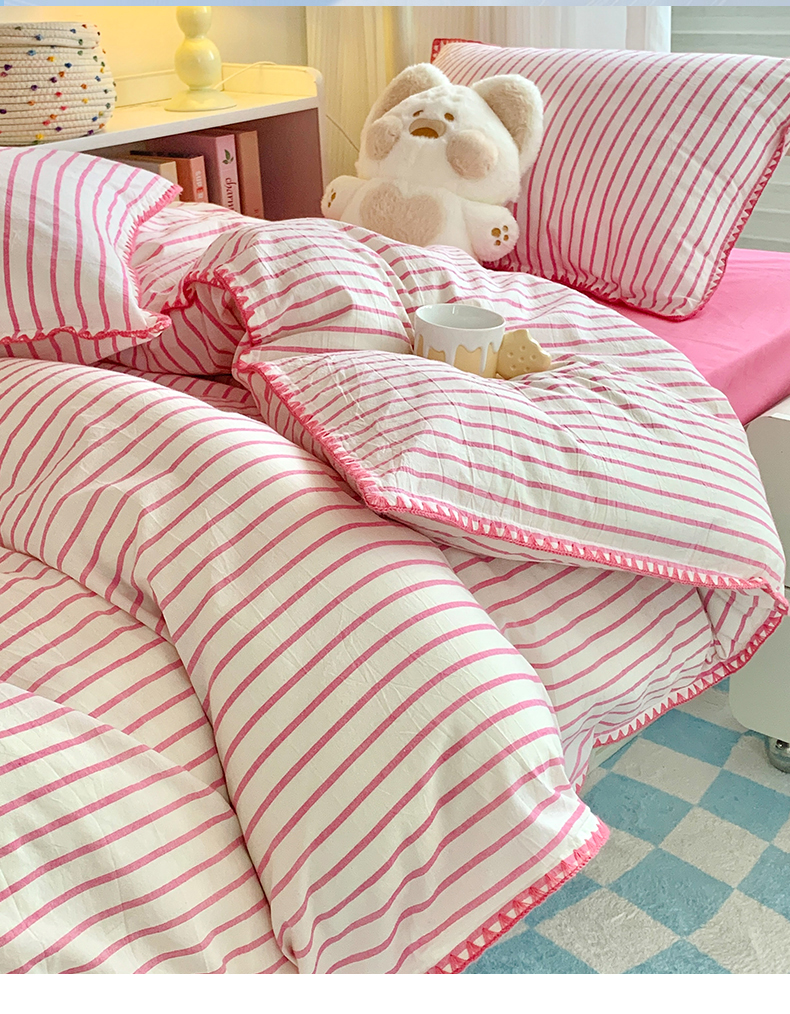 莱茵家居 2024新款A类全棉色织水洗棉贝壳边三件套 蜜桃粉细条