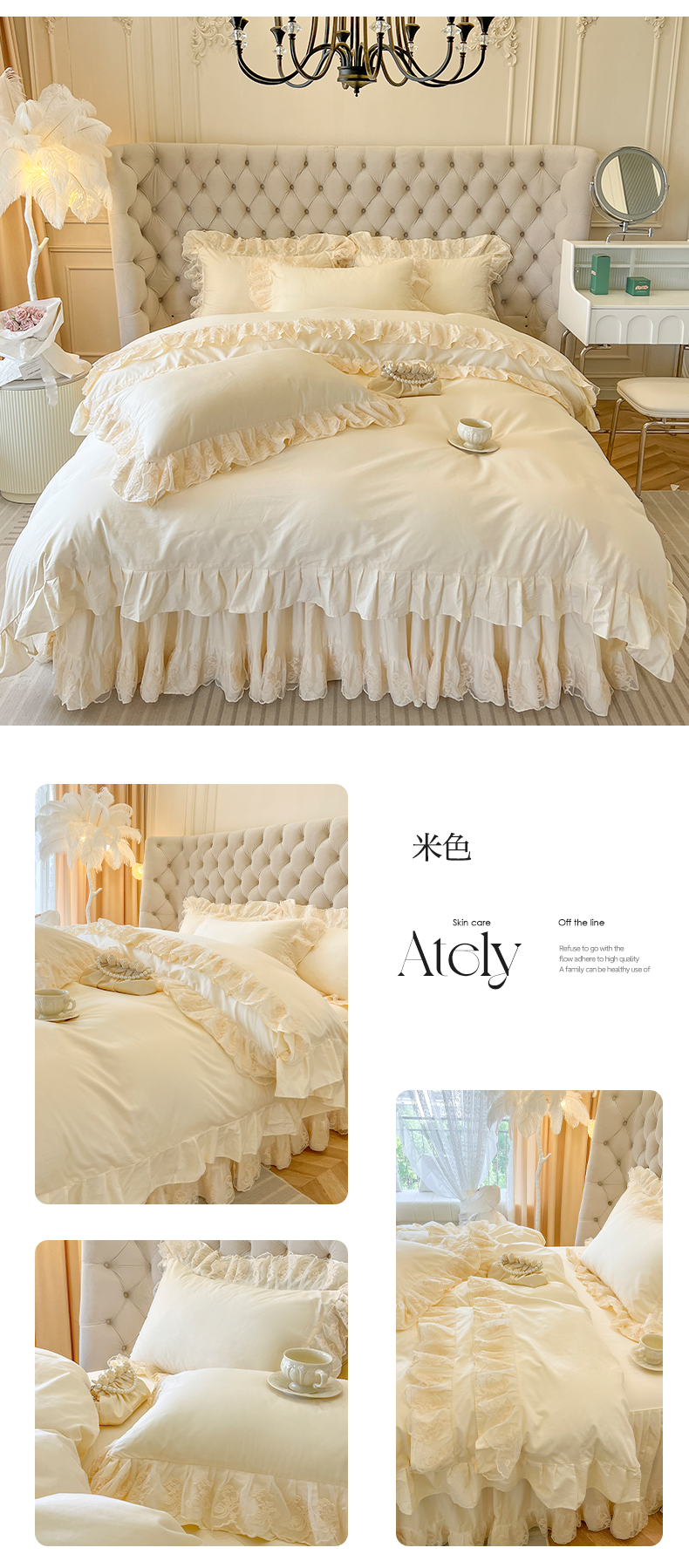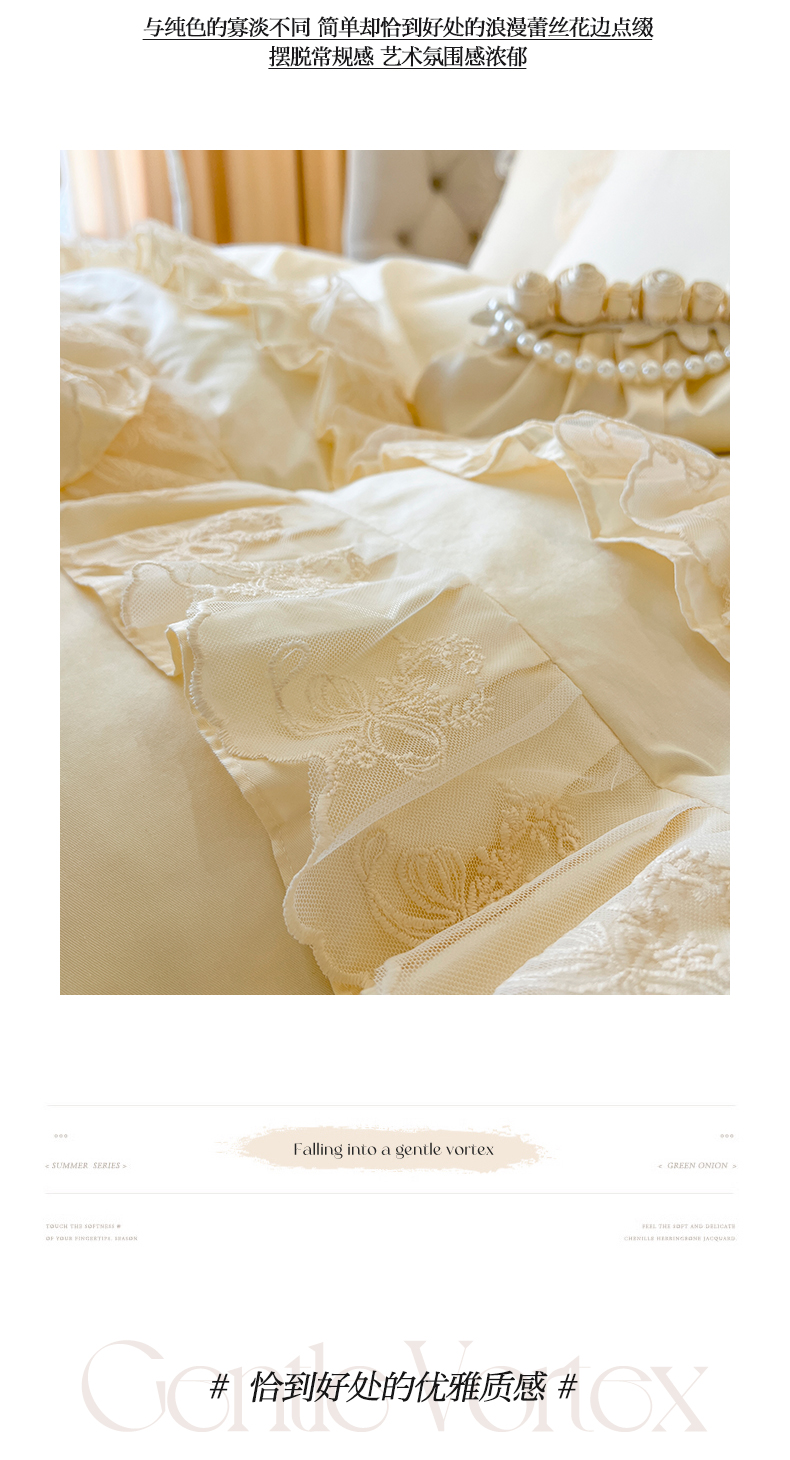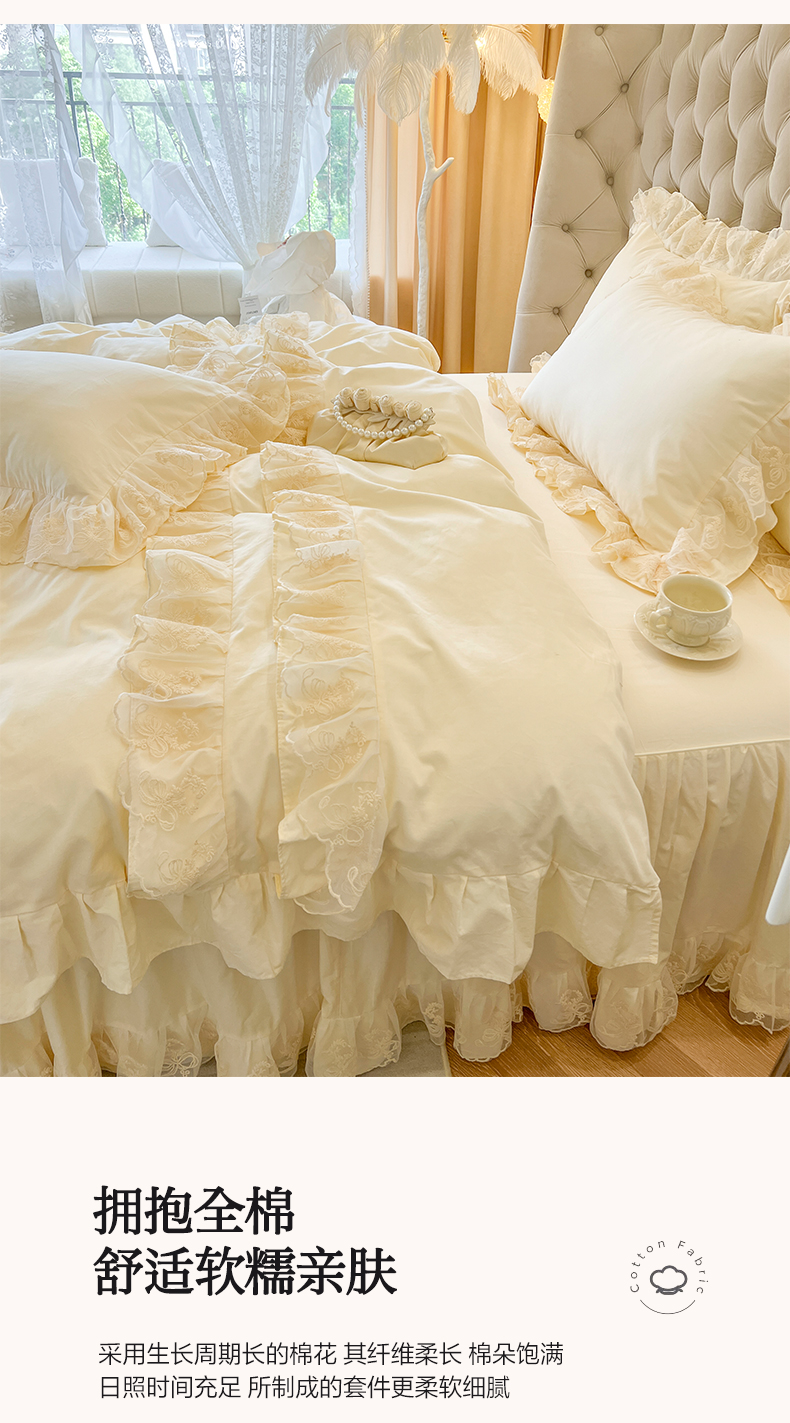 商品名称:网红馆(ck家纺) 2025新款花之茵系列13372全棉床裙四件套 花之茵-米色