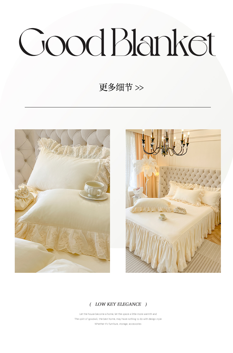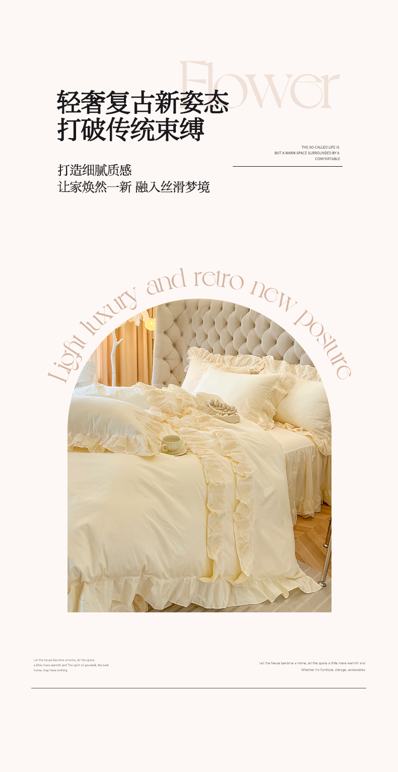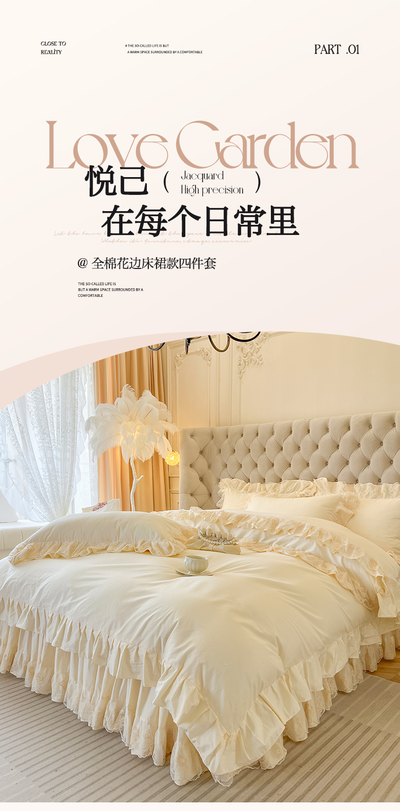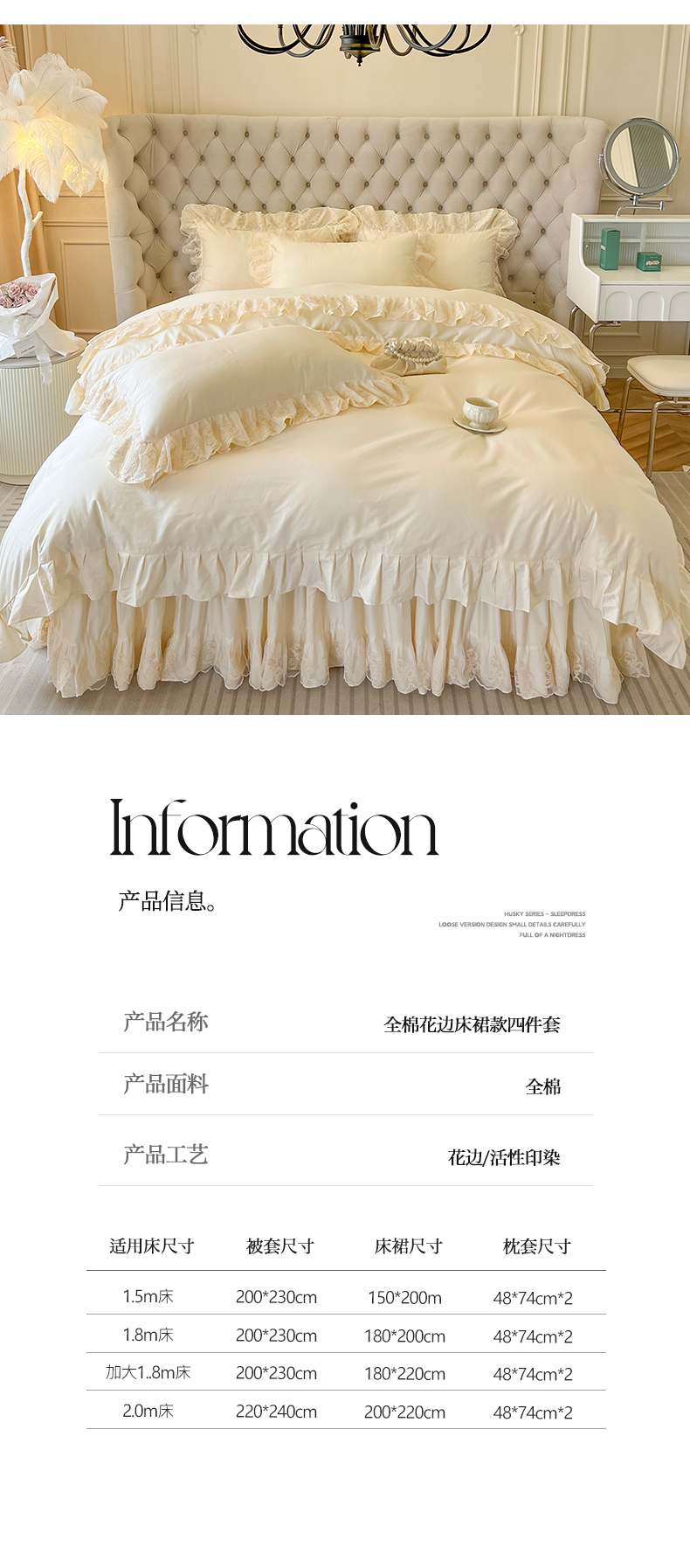 商品名称:网红馆(ck家纺) 2025新款花之茵系列13372全棉床裙四件套 花之茵-米色