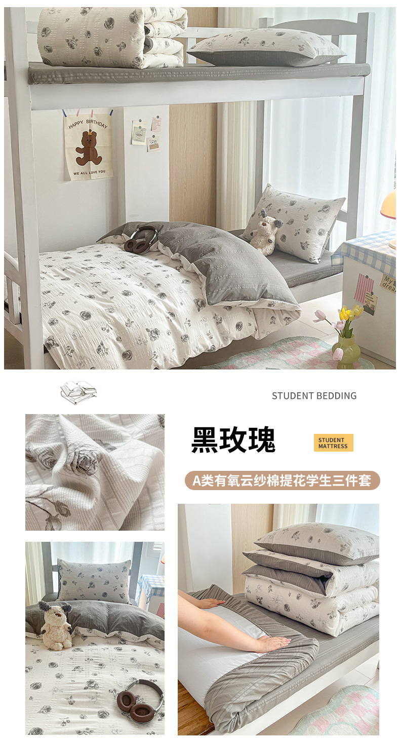 当前位置: 91家纺网 > 商品网购 > 床品套件 > 四件套 > 其它四件套 > 安哆啦家纺 2024新款A类有氧泡泡纱云纱棉学生季宿舍床三四件套 黑玫瑰