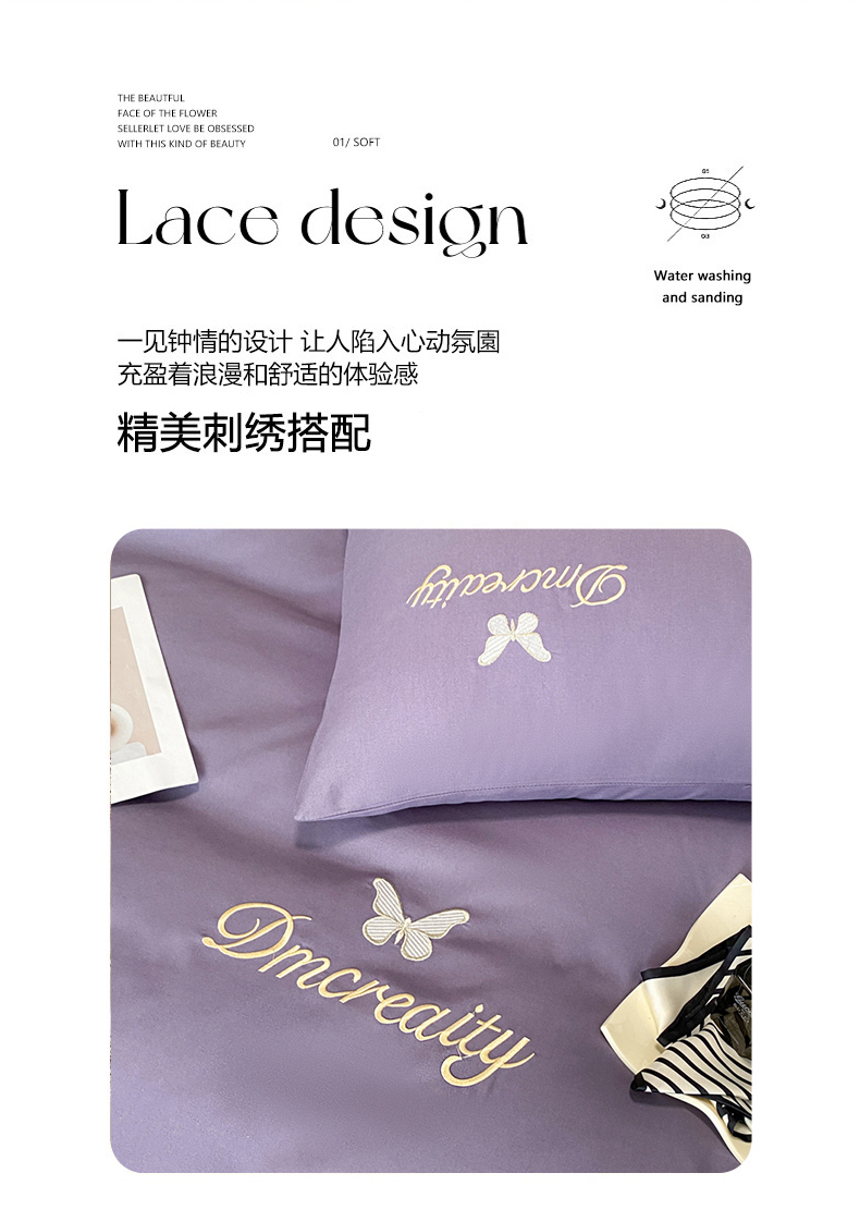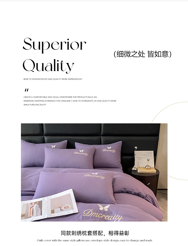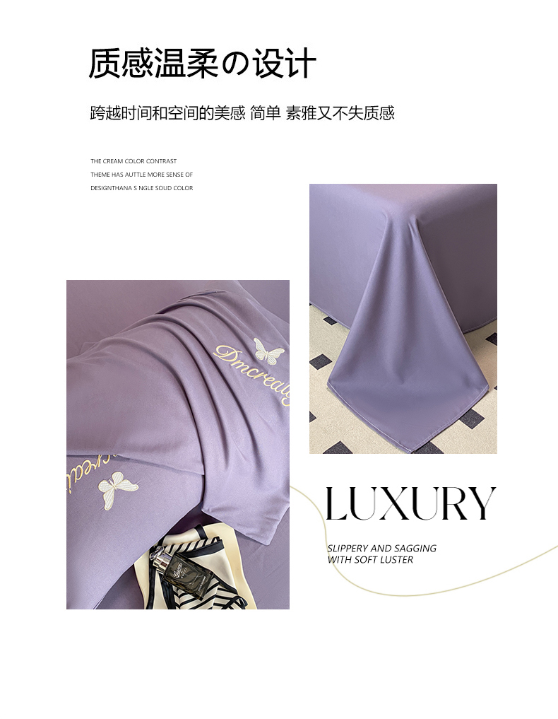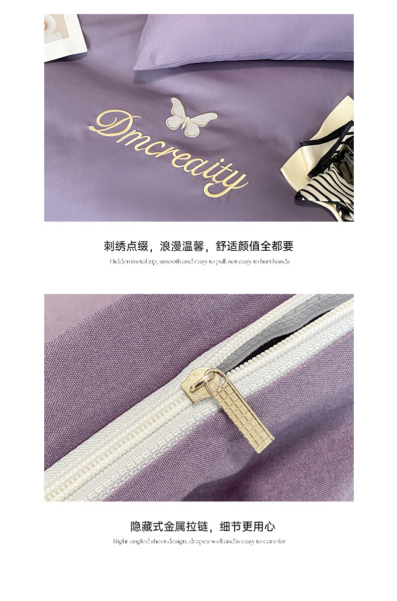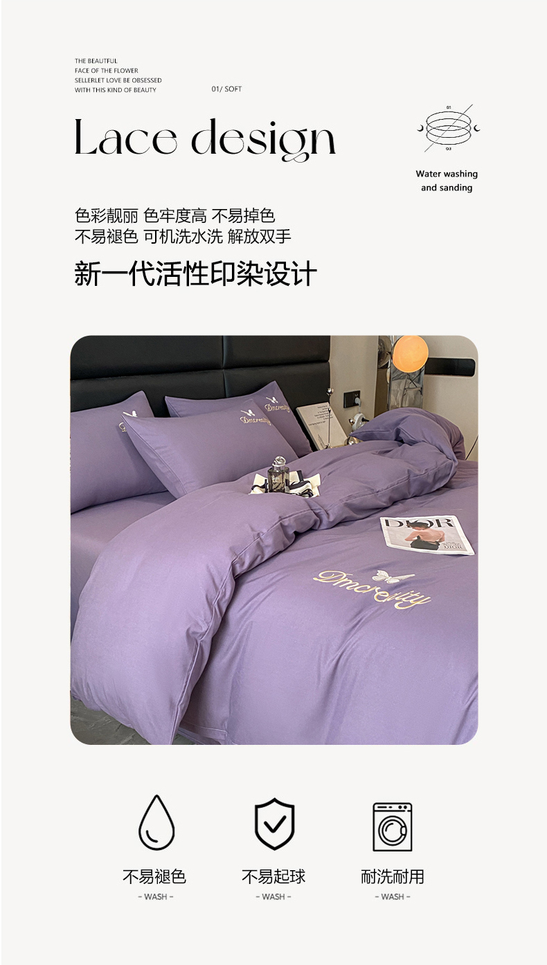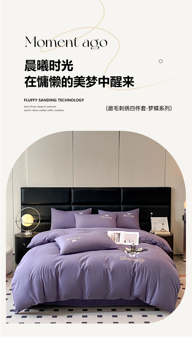 当前位置: 91家纺网 > 商品网购 > 床品套件 > 四件套 > 普通磨毛四件套 > 伊梵居 2025新款刺绣水洗棉磨毛四件套-梦蝶系列 梦蝶-极简紫
