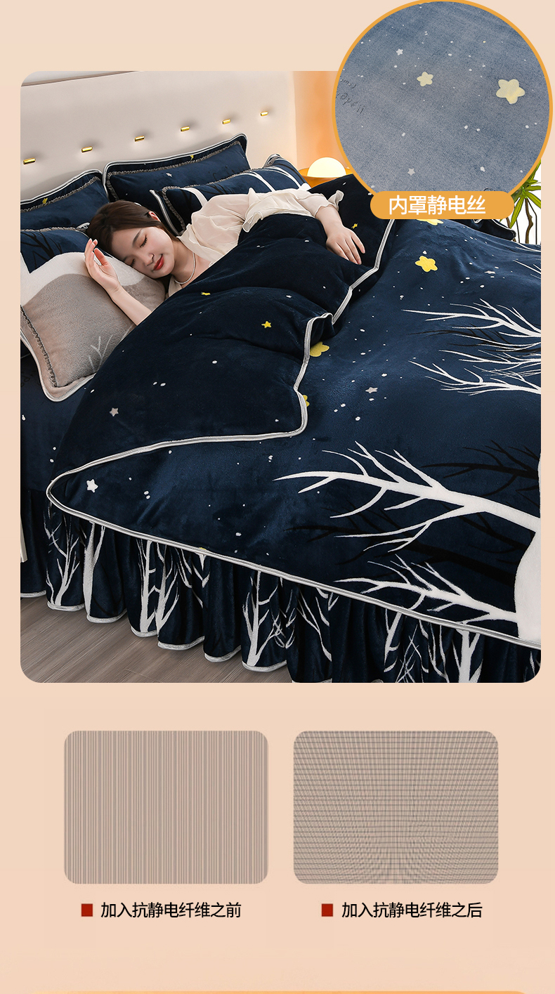 绒品壹家家纺 2024新款5斤加厚金貂绒四件套 星空森林