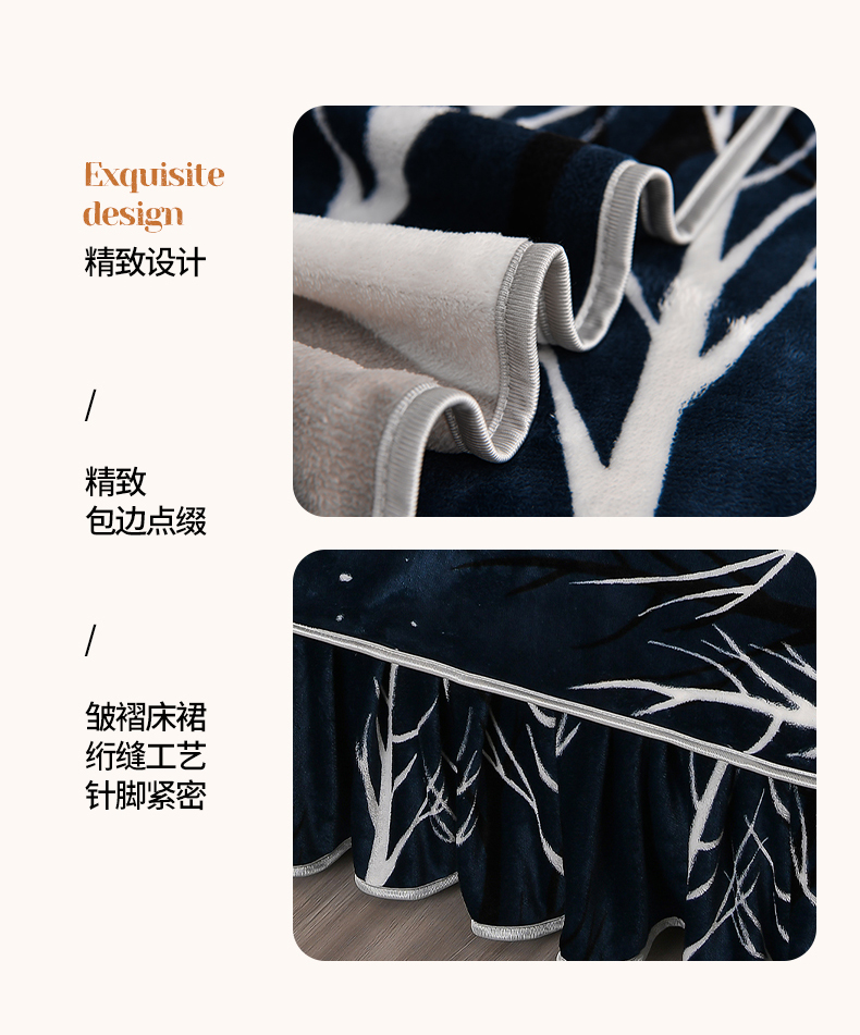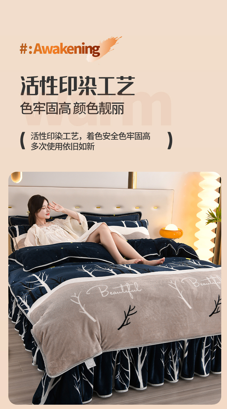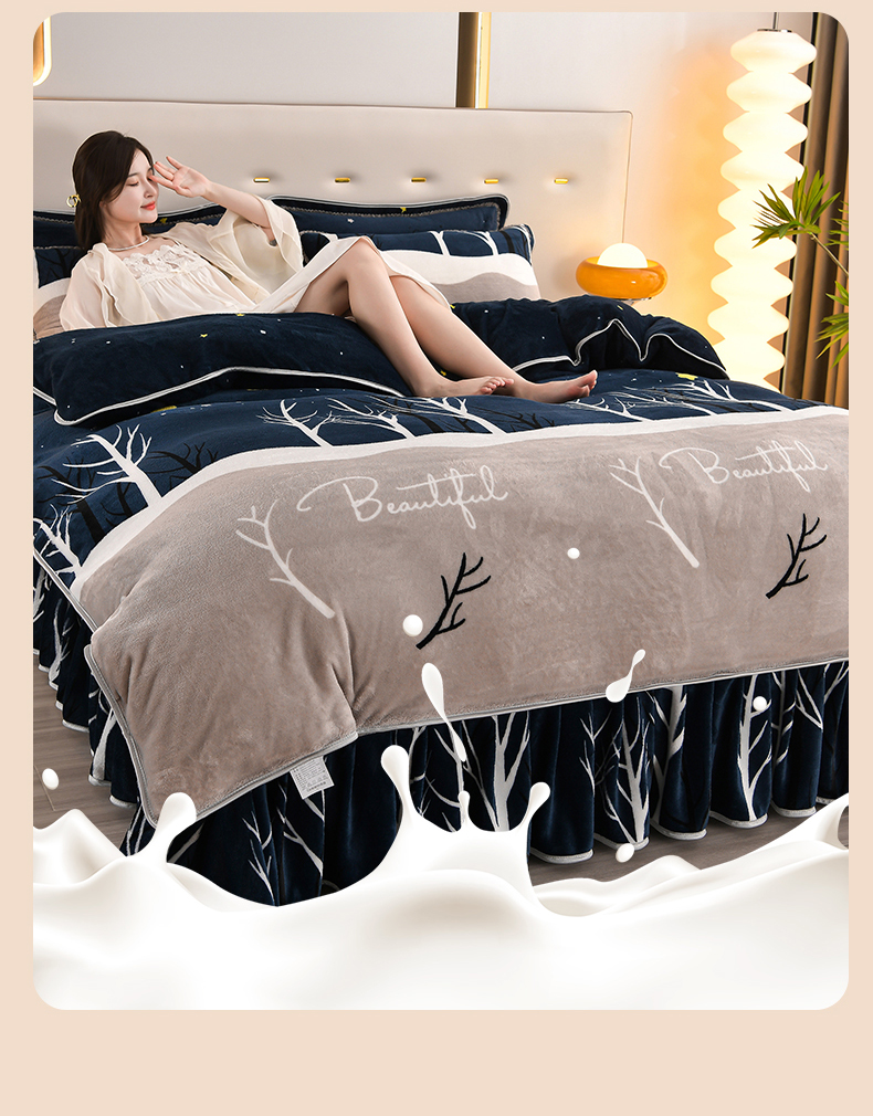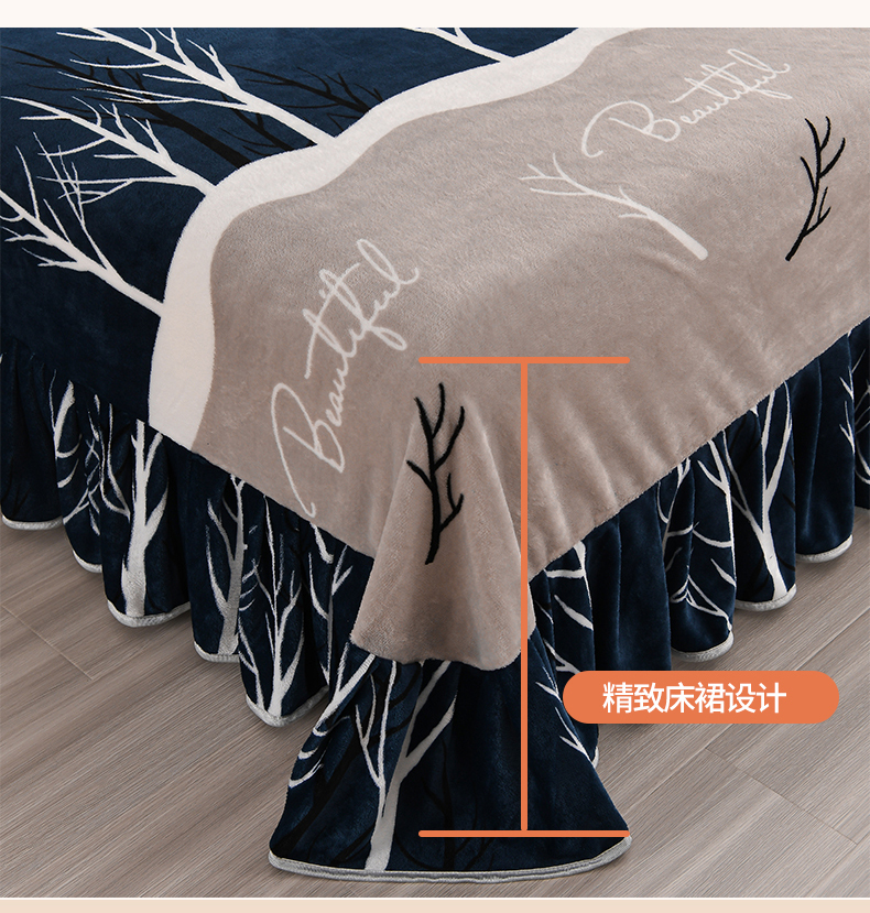 (总)绒品壹家 2025新款电商直播爆款高克重5斤牛奶绒金貂绒印花床裙款三件套四件套,发财树,花好月圆,花花绿绿,花开富贵,棋盘格,钱兔似锦,荣华富贵,时尚绽放,相伴一生,幸福满园,叶叶思语,一见倾心 蓝,郁金香,欢乐兔黄