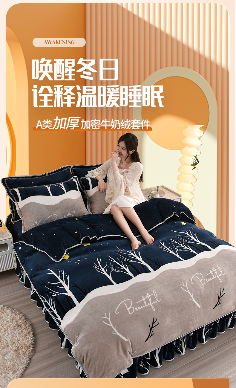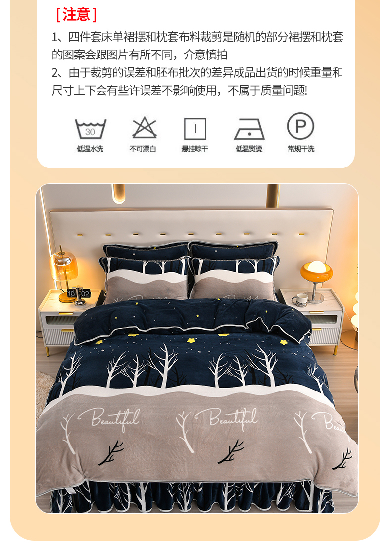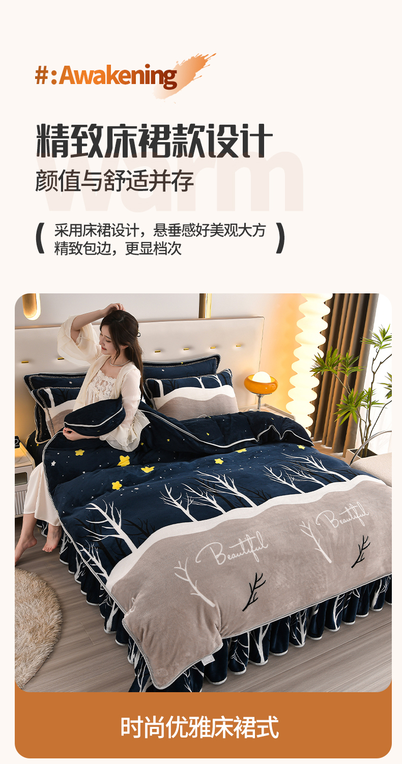 (总)绒品壹家 2025新款电商直播爆款高克重5斤牛奶绒金貂绒印花床裙款三件套四件套,发财树,花好月圆,花花绿绿,花开富贵,棋盘格,钱兔似锦,荣华富贵,时尚绽放,相伴一生,幸福满园,叶叶思语,一见倾心 蓝,郁金香,欢乐兔黄