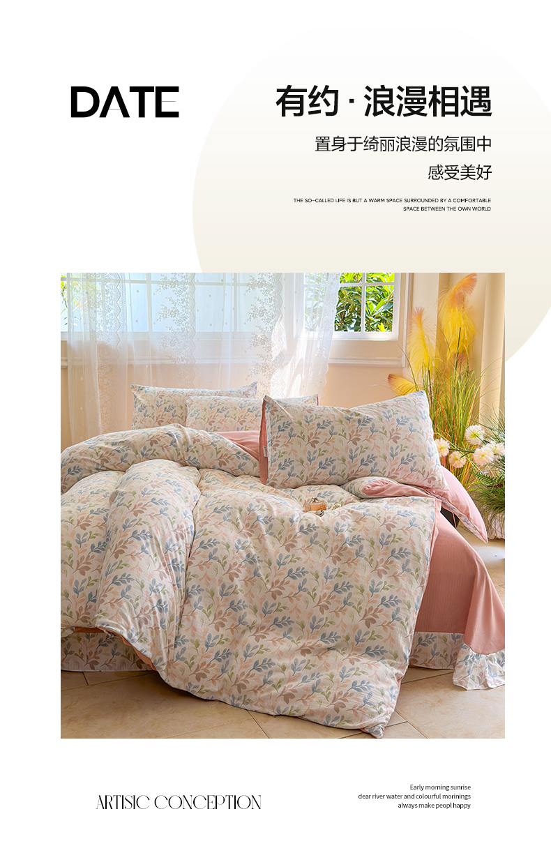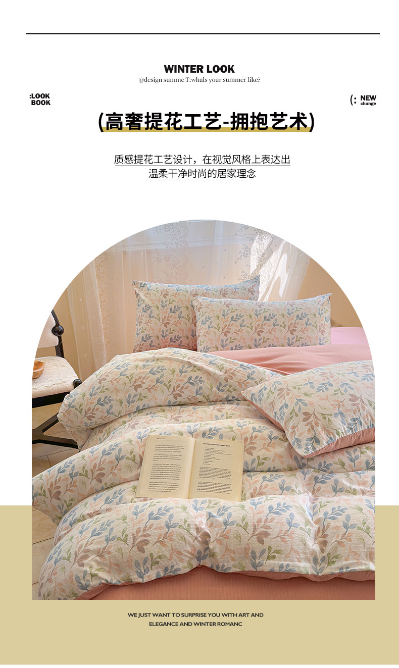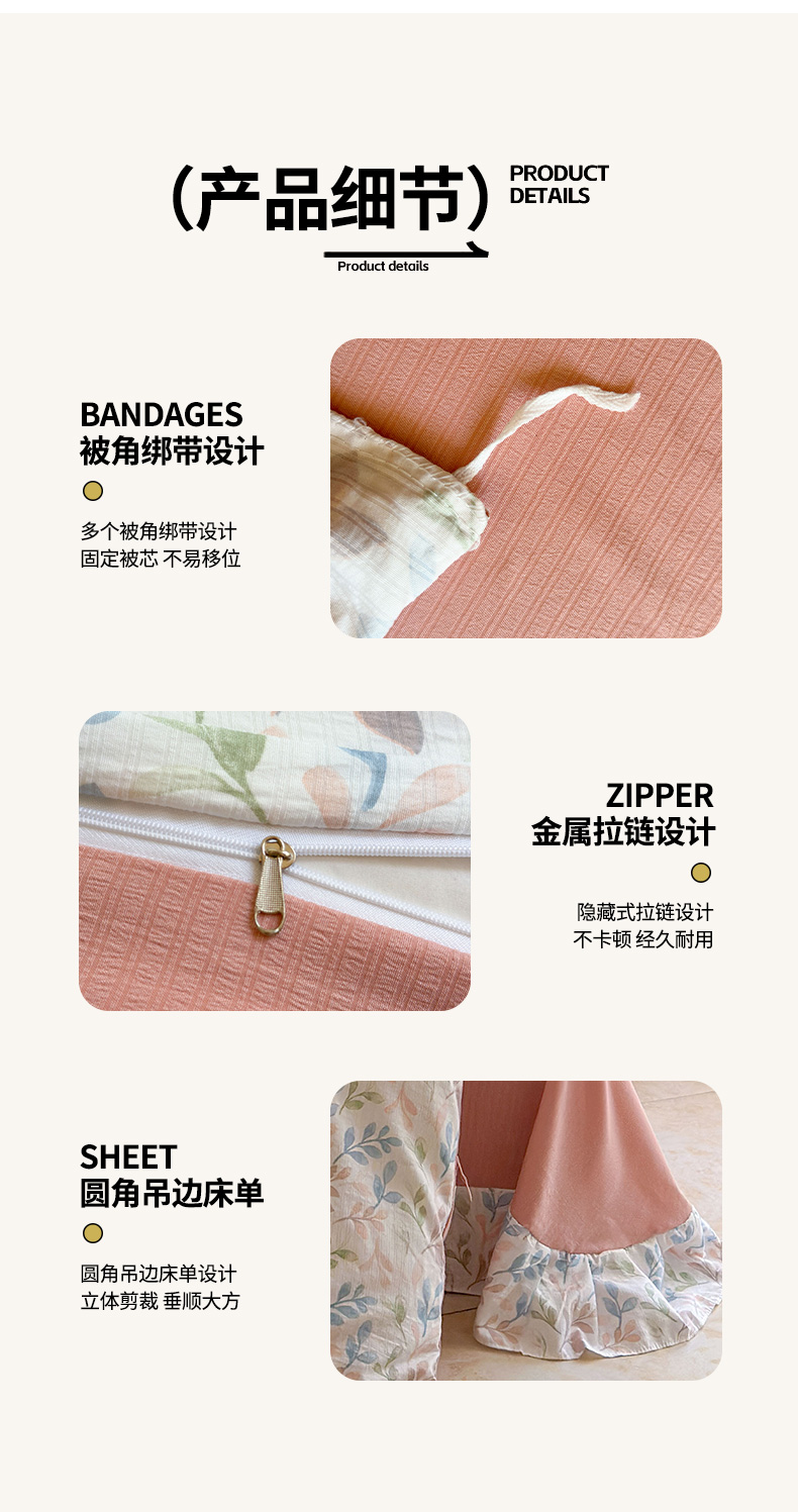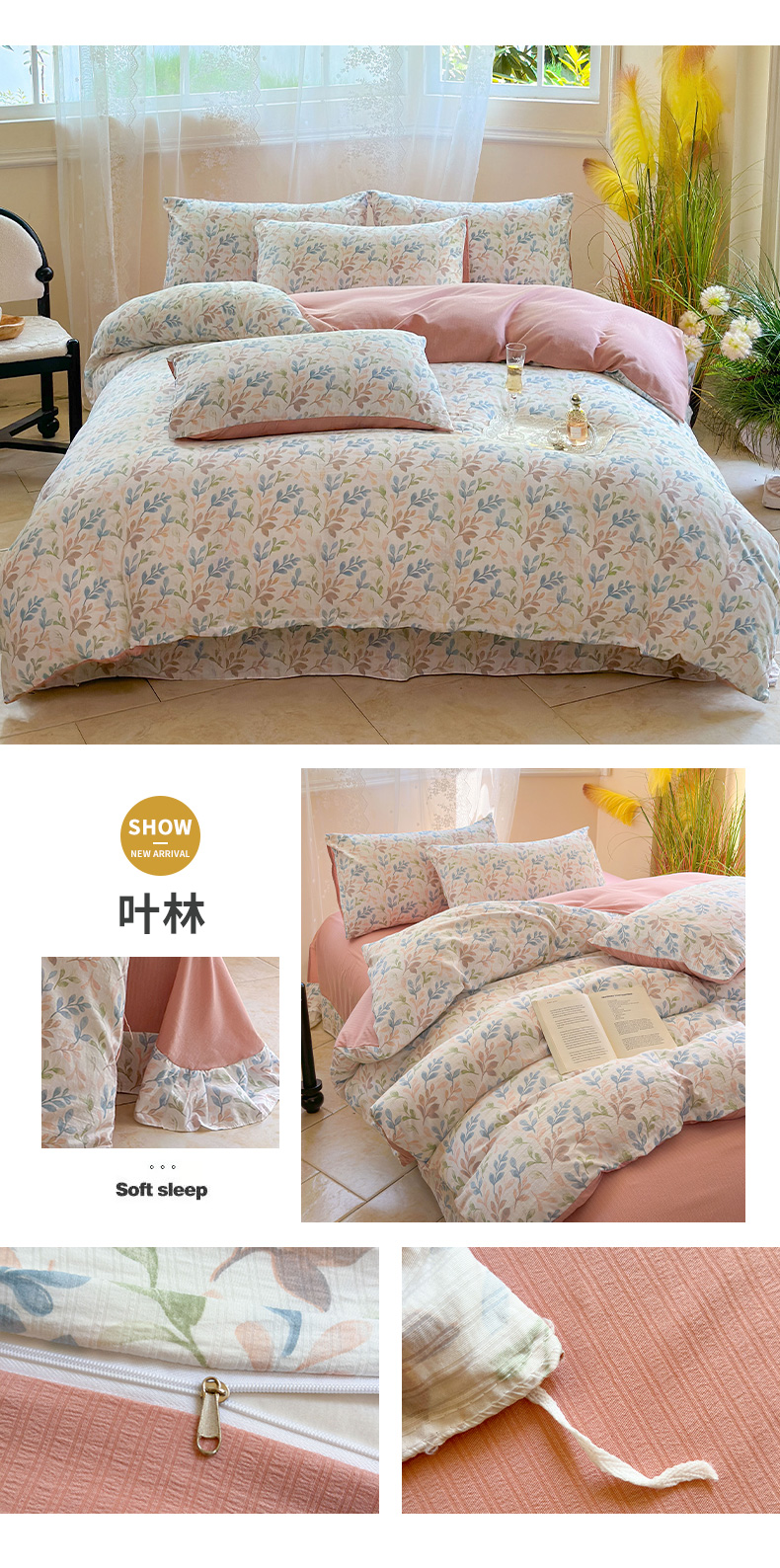 商品名称:卢赛尔 2024新款有氧提花针织圆角吊边床单四件套 叶林